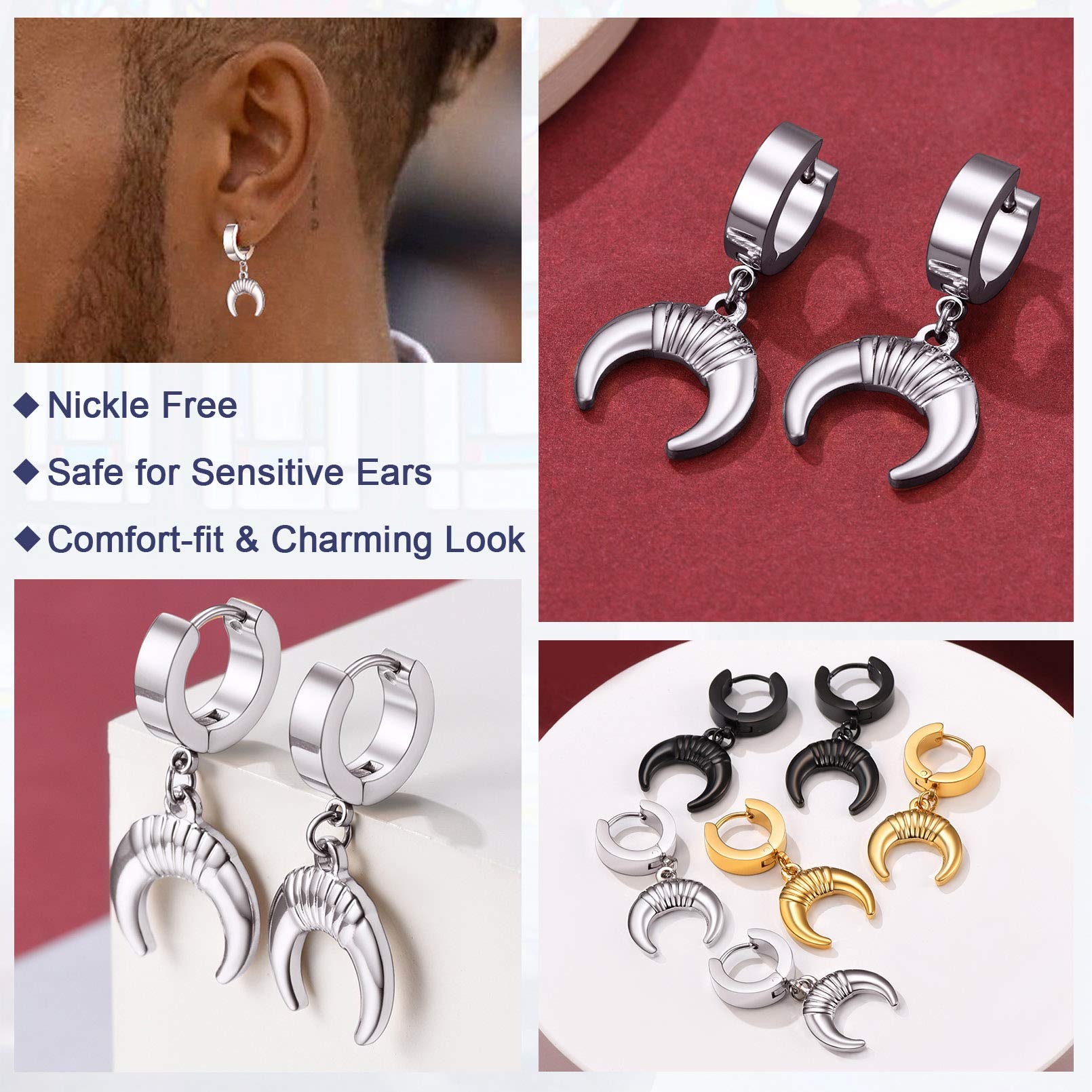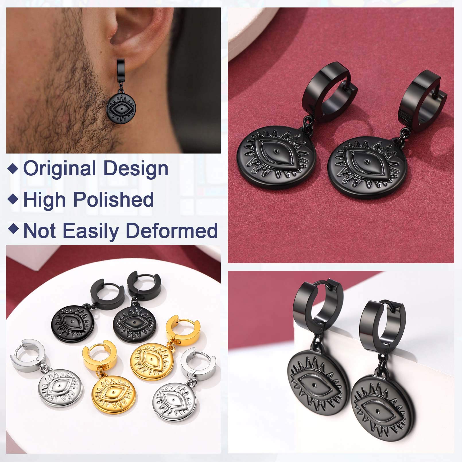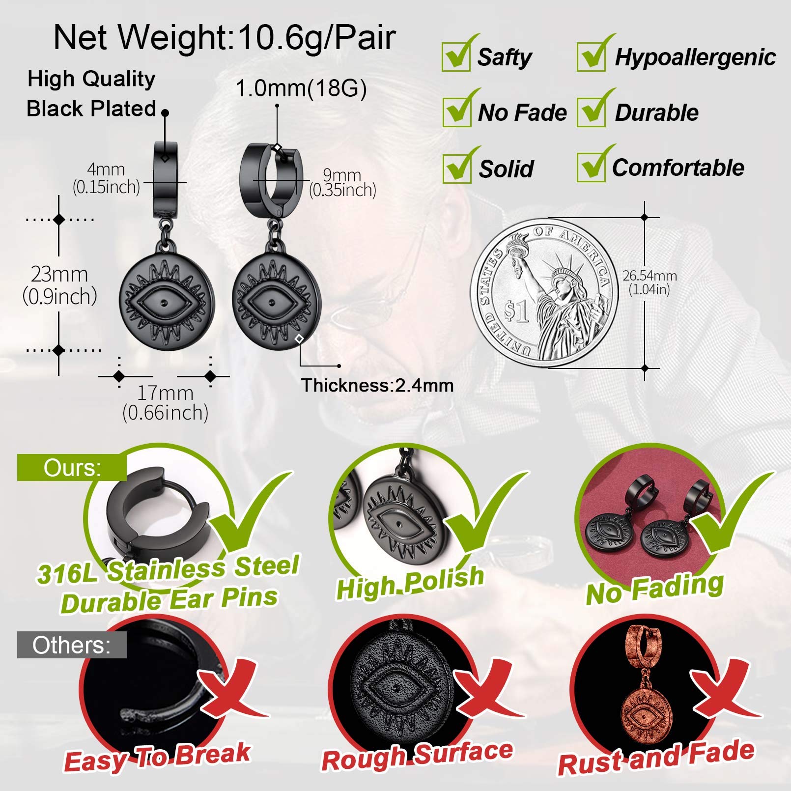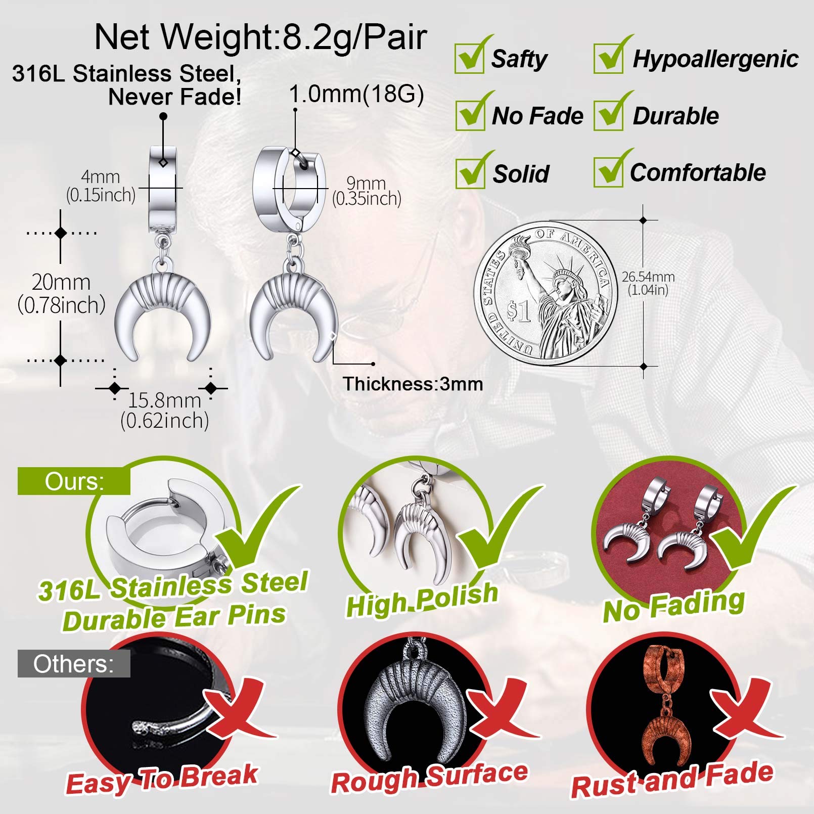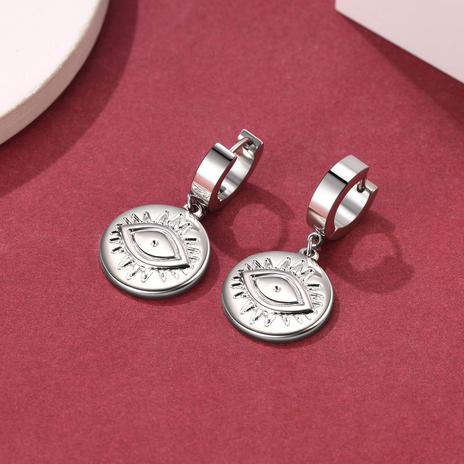 FaithHeart Huggie Hoop Earrings for Women-Stainless Steel/18K Gold Plated Dangling Drop Earring Ankh/Cross/Padlock/Italian Horn/Eye/Key Hoops Jewelry