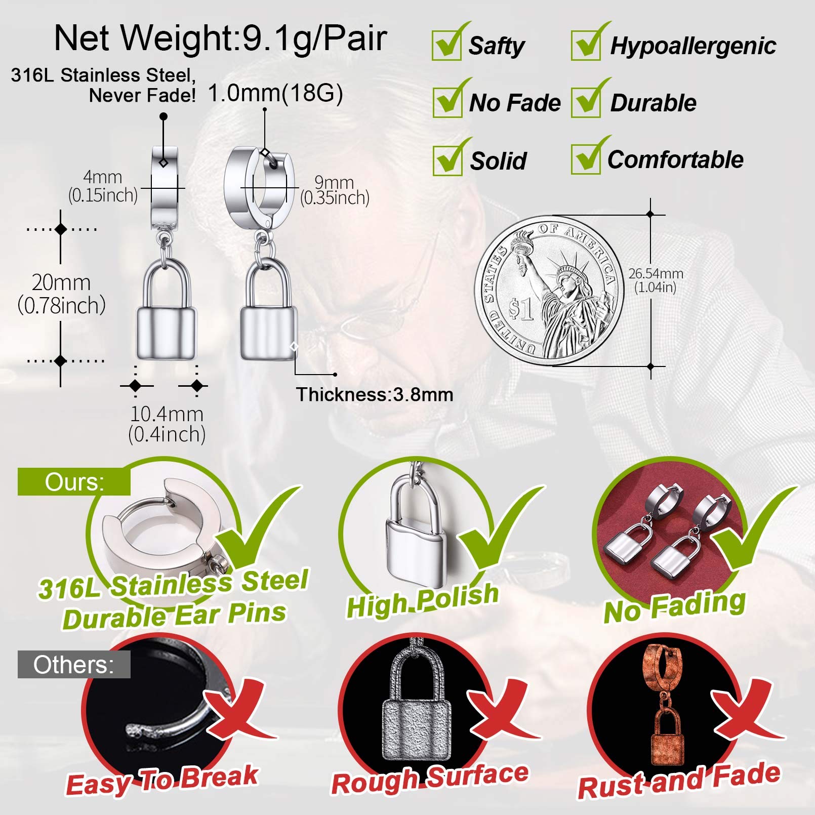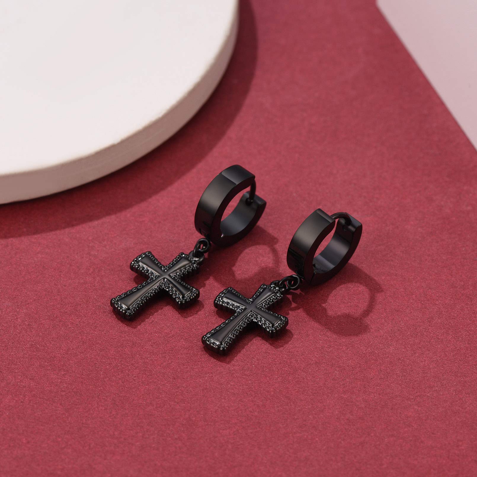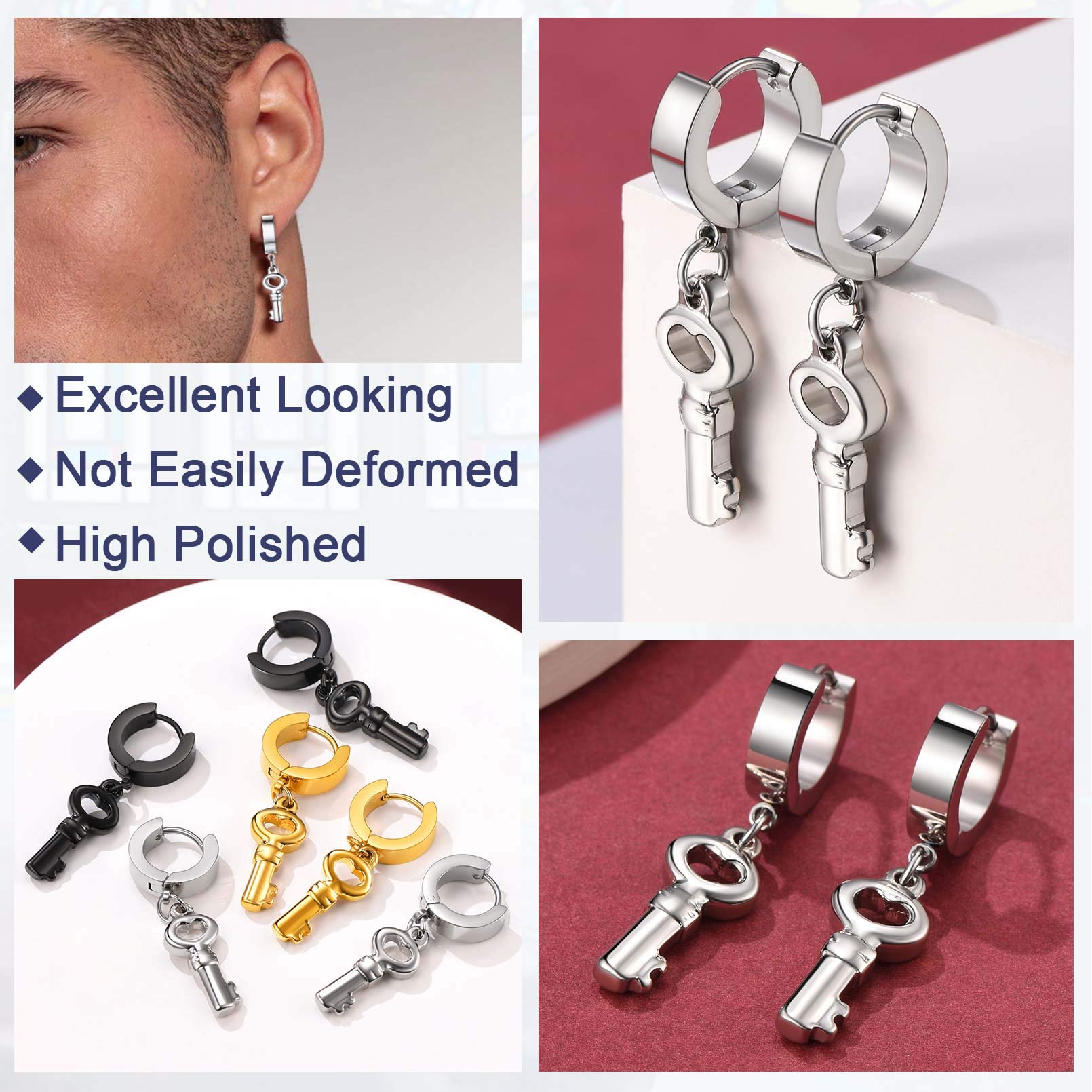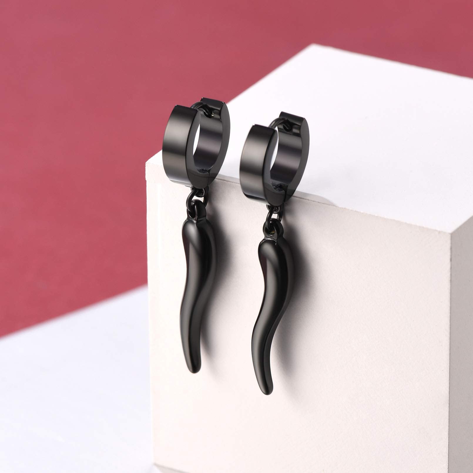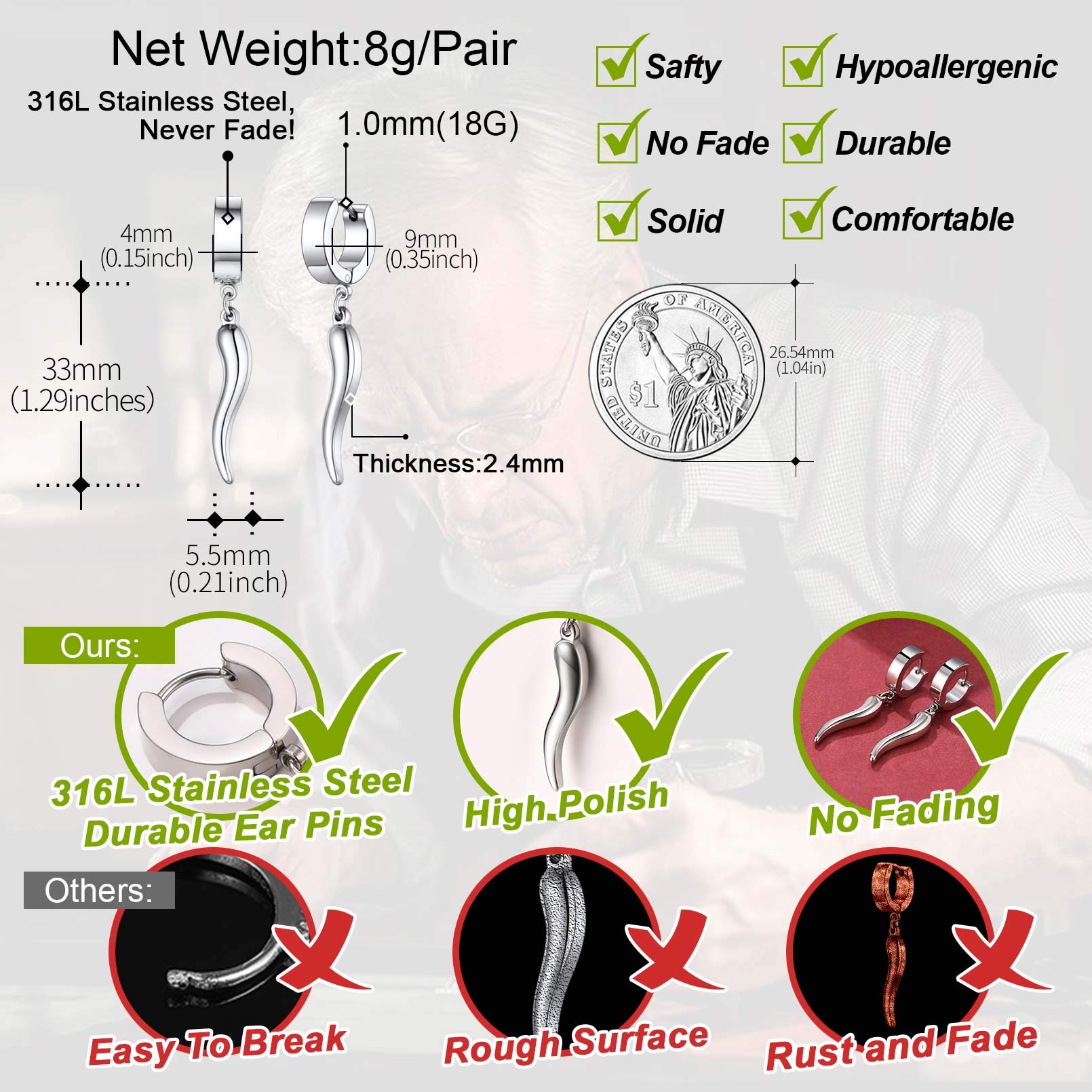 FaithHeart Huggie Hoop Earrings for Women-Stainless Steel/18K Gold Plated Dangling Drop Earring Ankh/Cross/Padlock/Italian Horn/Eye/Key Hoops Jewelry