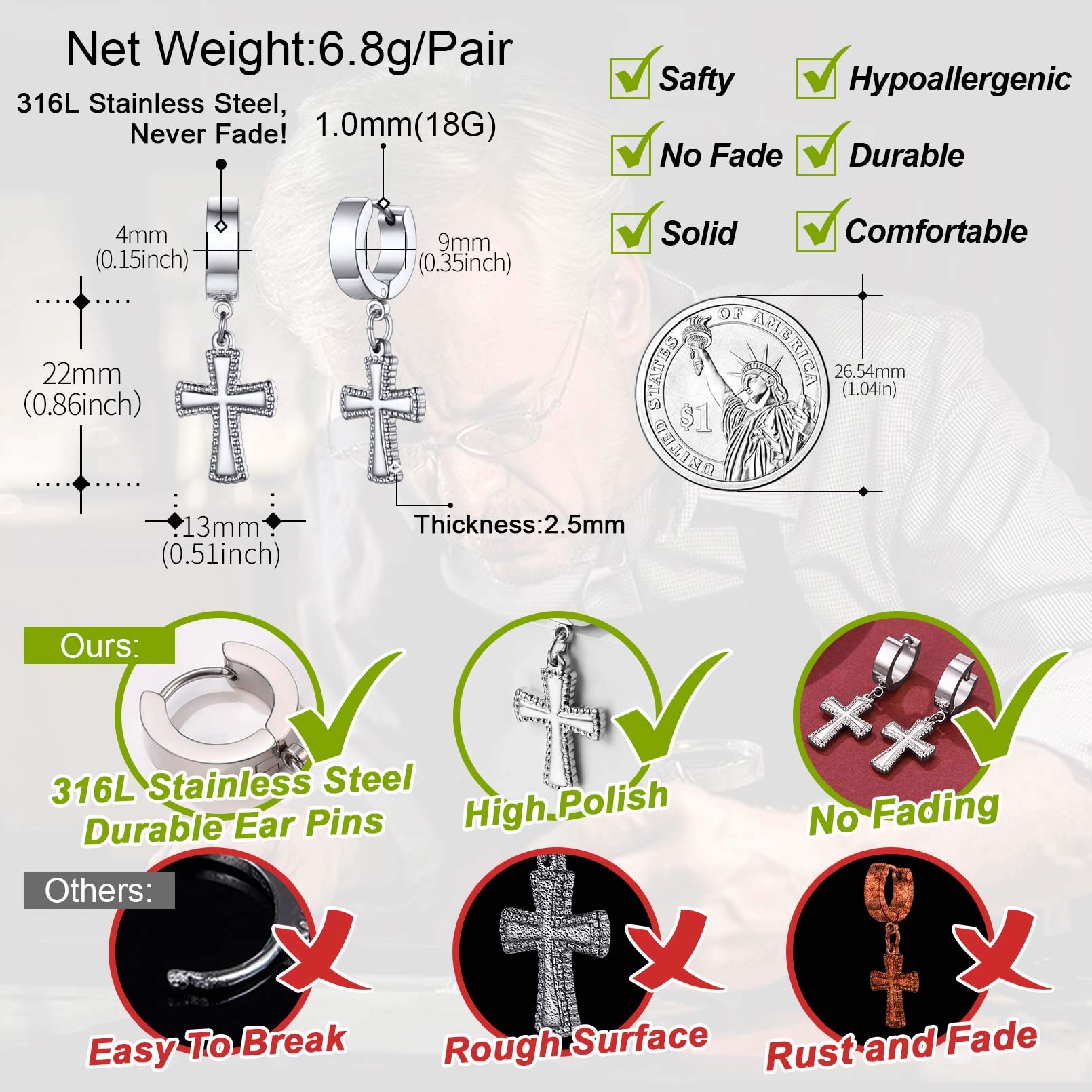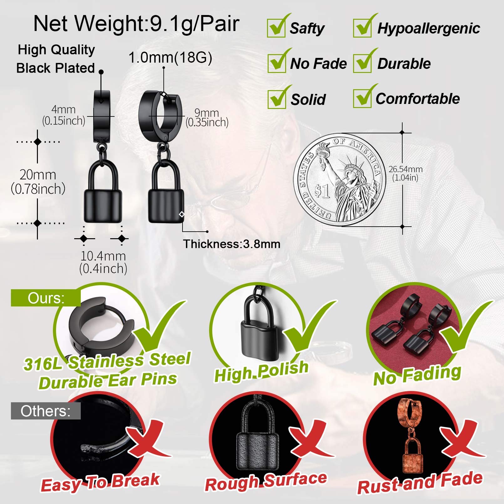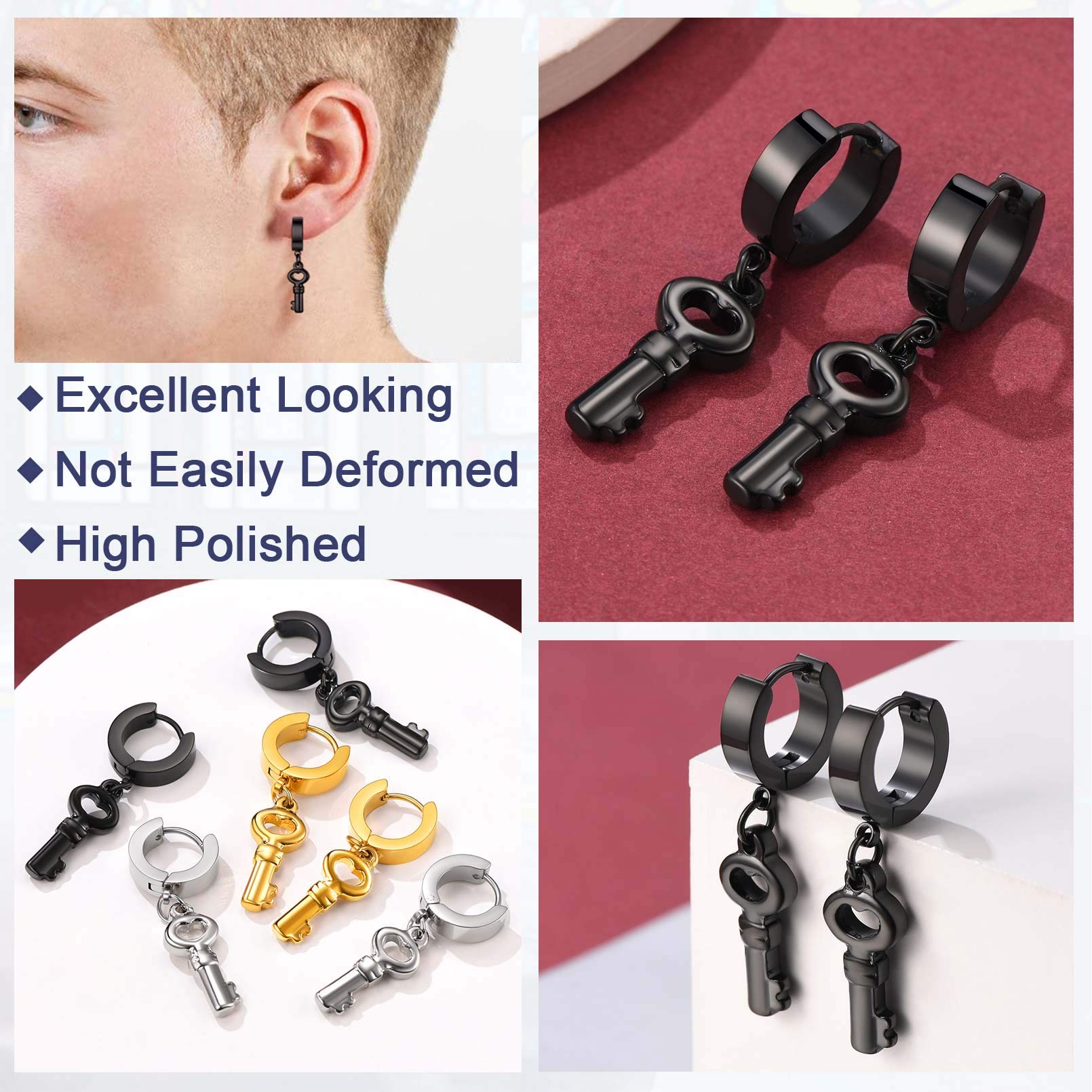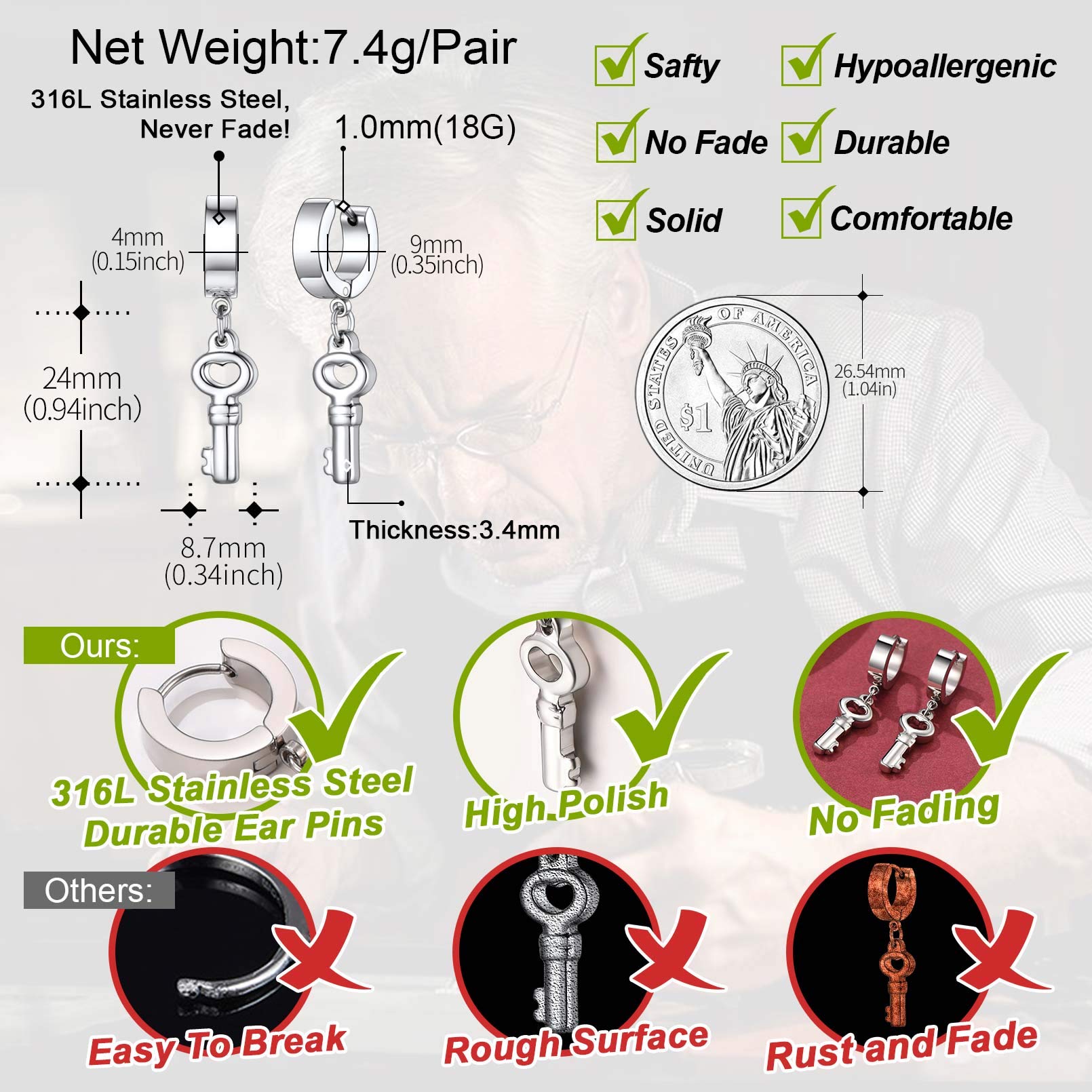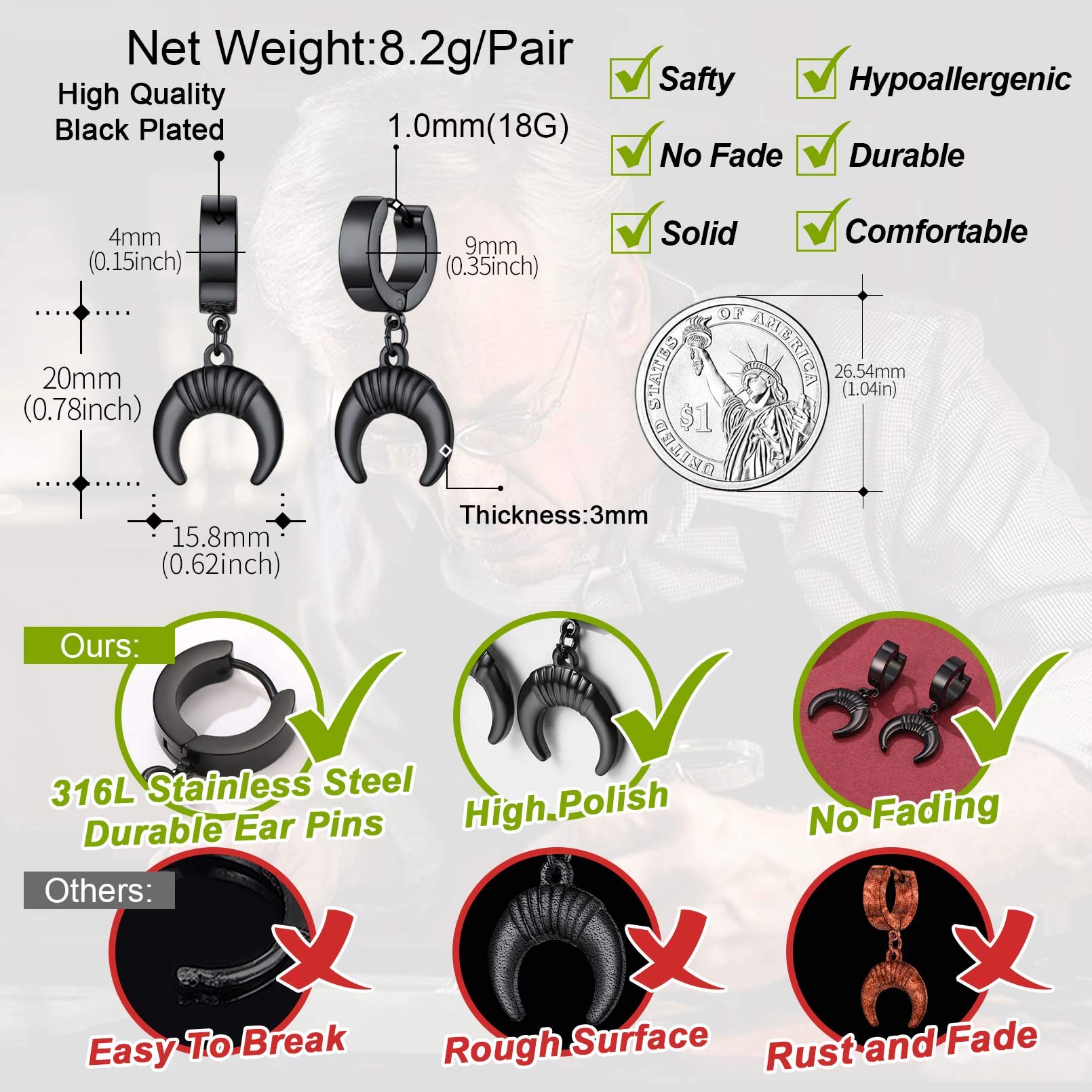 FaithHeart Huggie Hoop Earrings for Women-Stainless Steel/18K Gold Plated Dangling Drop Earring Ankh/Cross/Padlock/Italian Horn/Eye/Key Hoops Jewelry