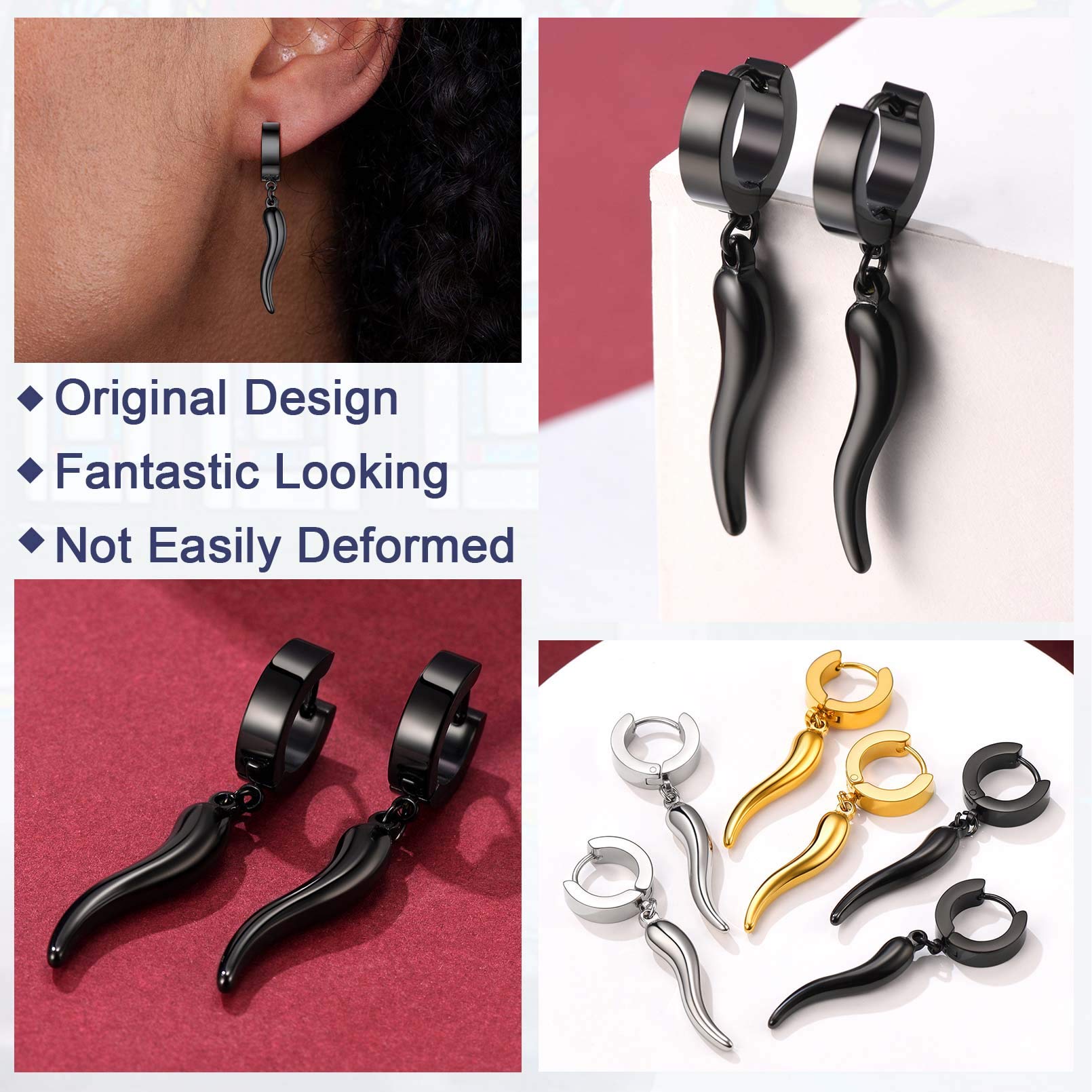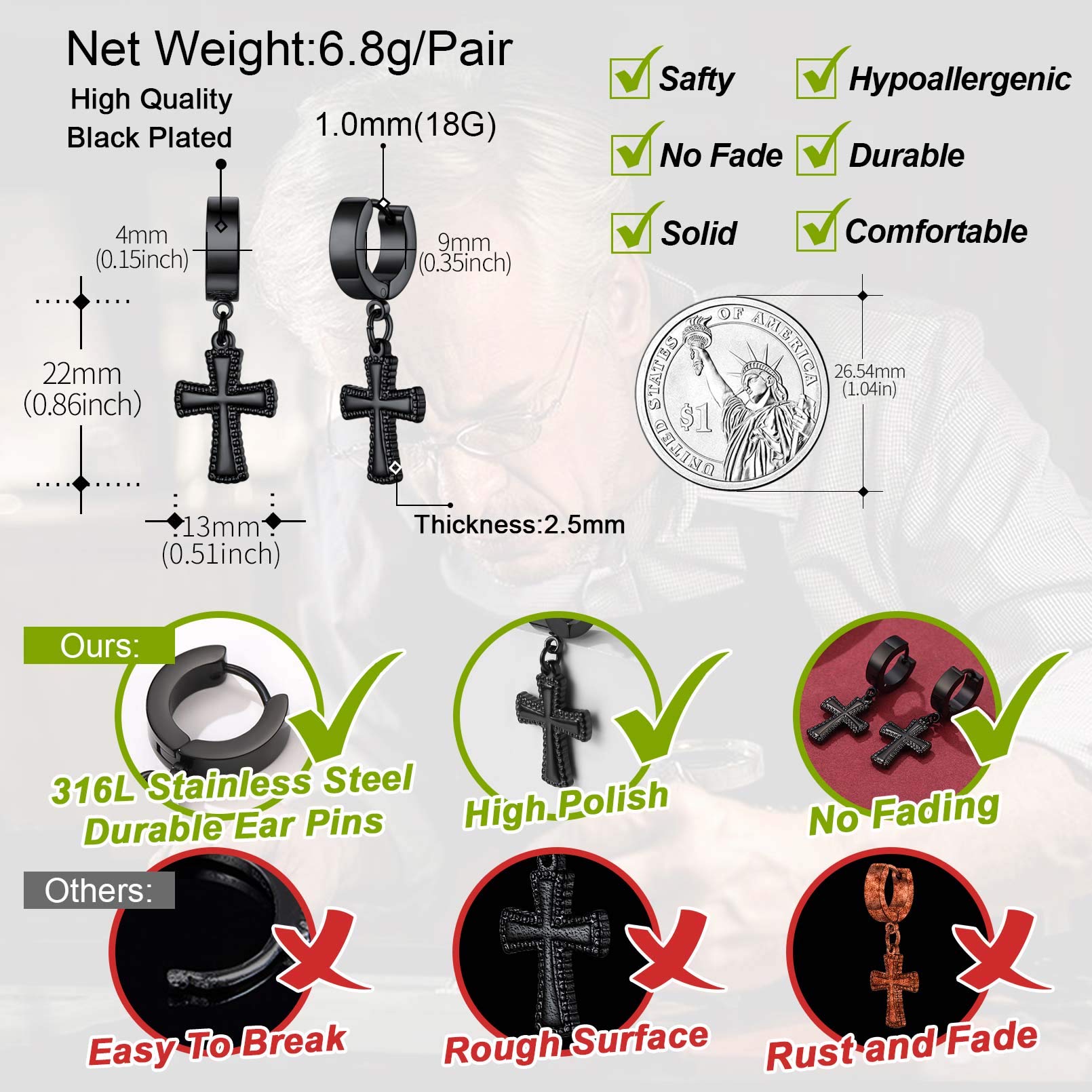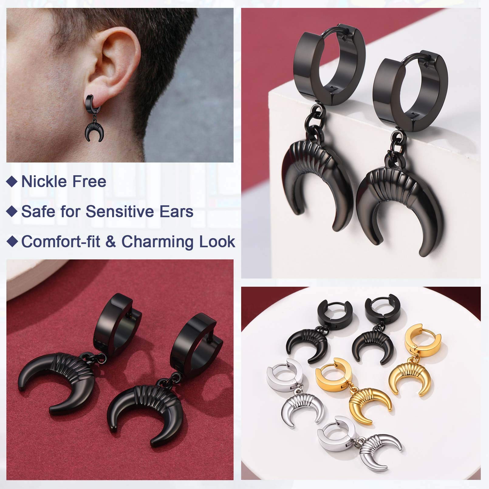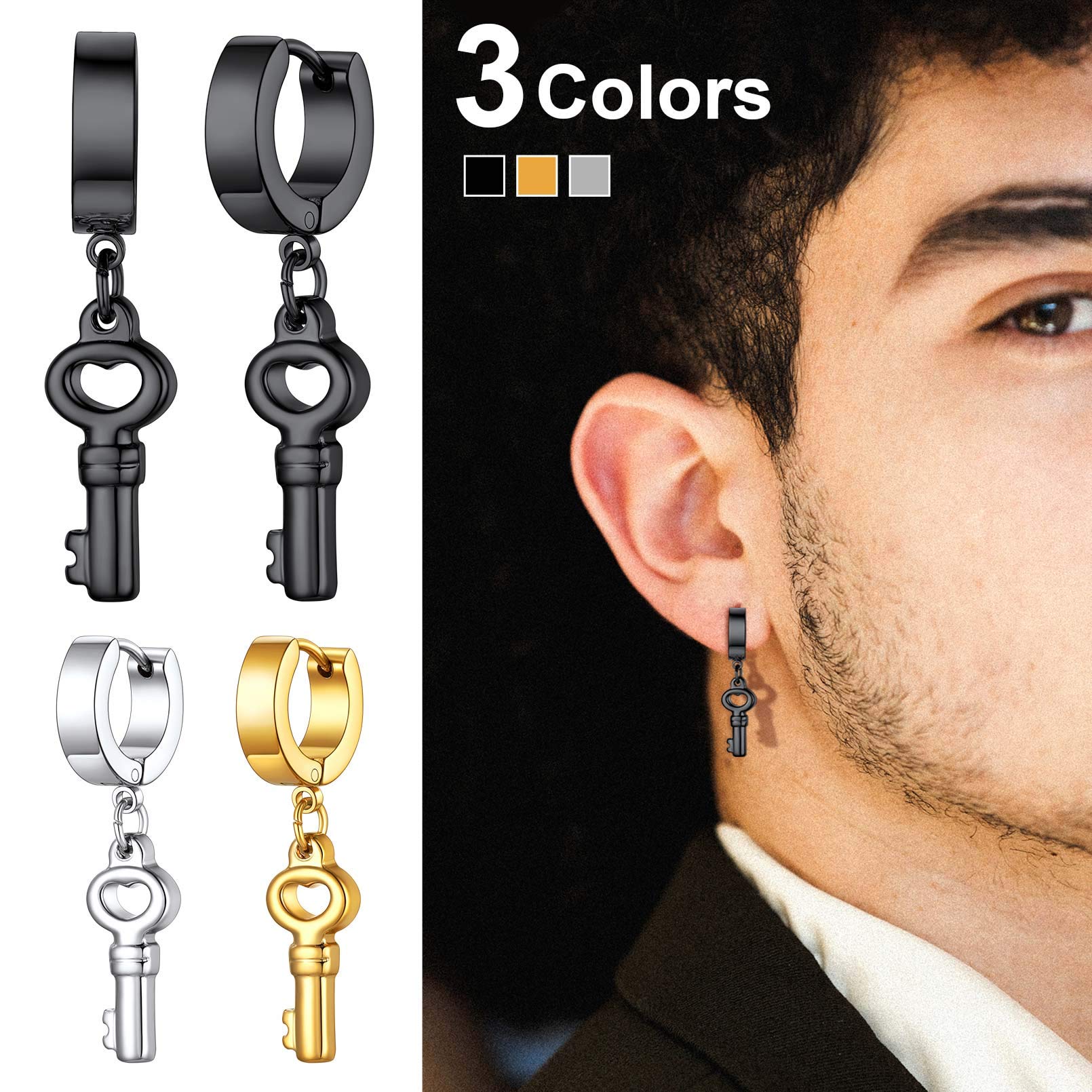 FaithHeart Huggie Hoop Earrings for Women-Stainless Steel/18K Gold Plated Dangling Drop Earring Ankh/Cross/Padlock/Italian Horn/Eye/Key Hoops Jewelry