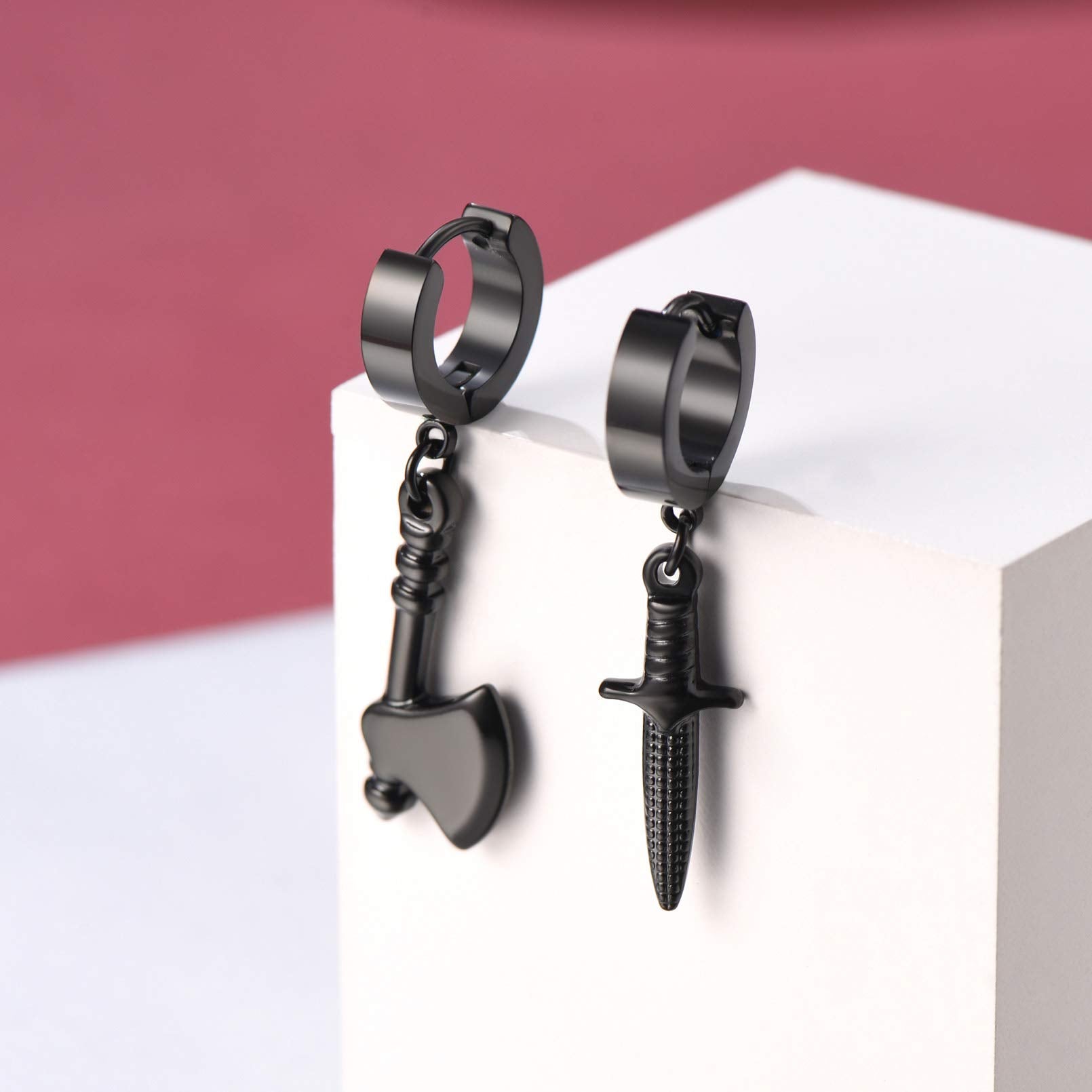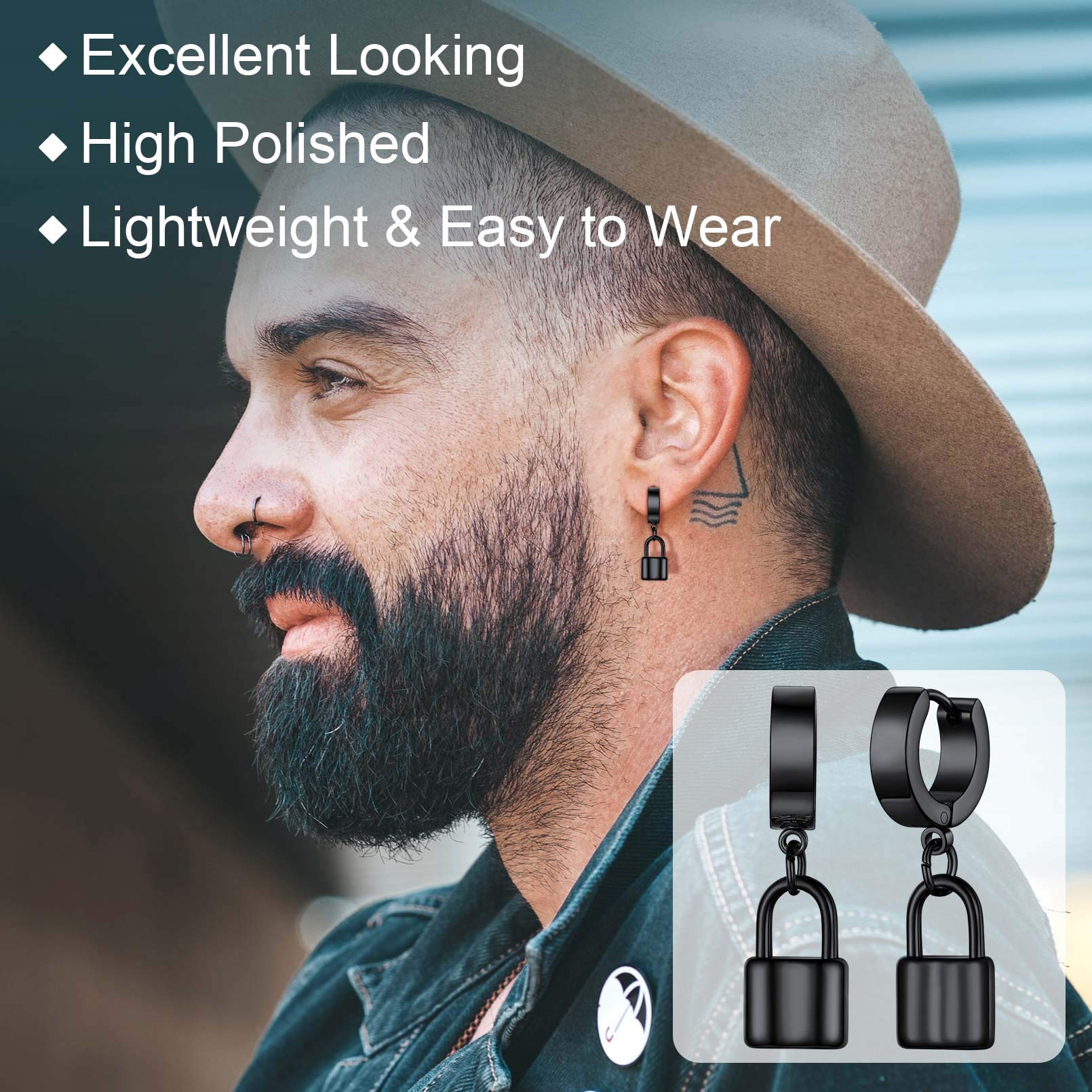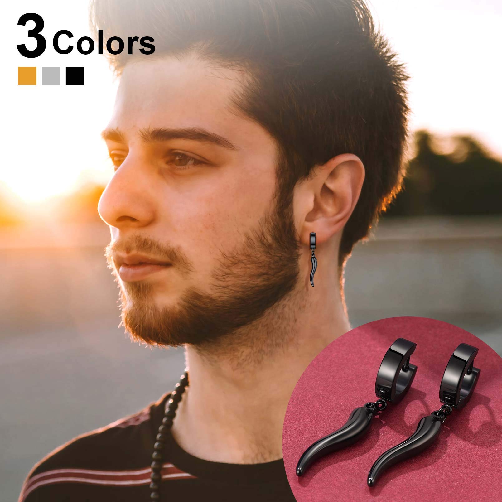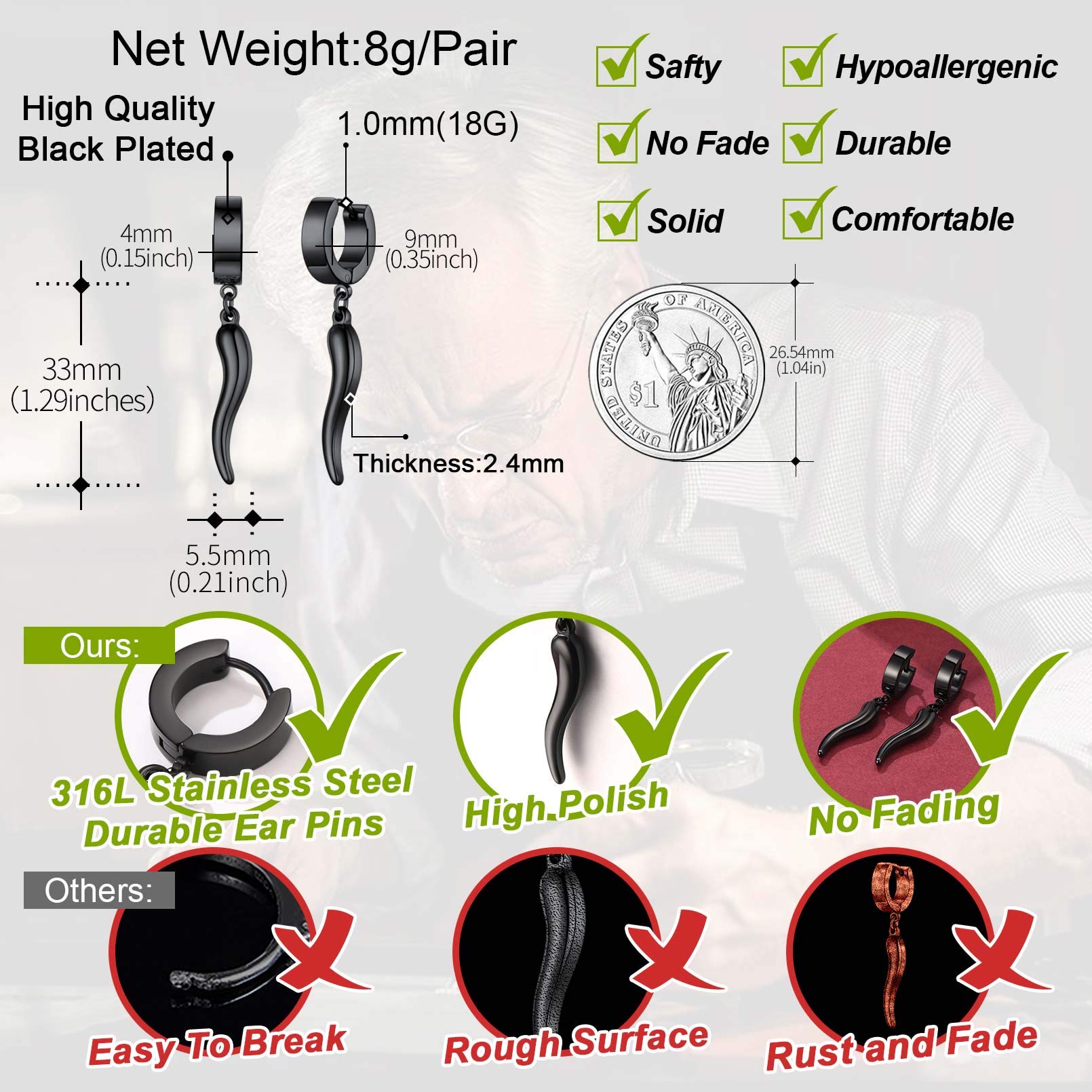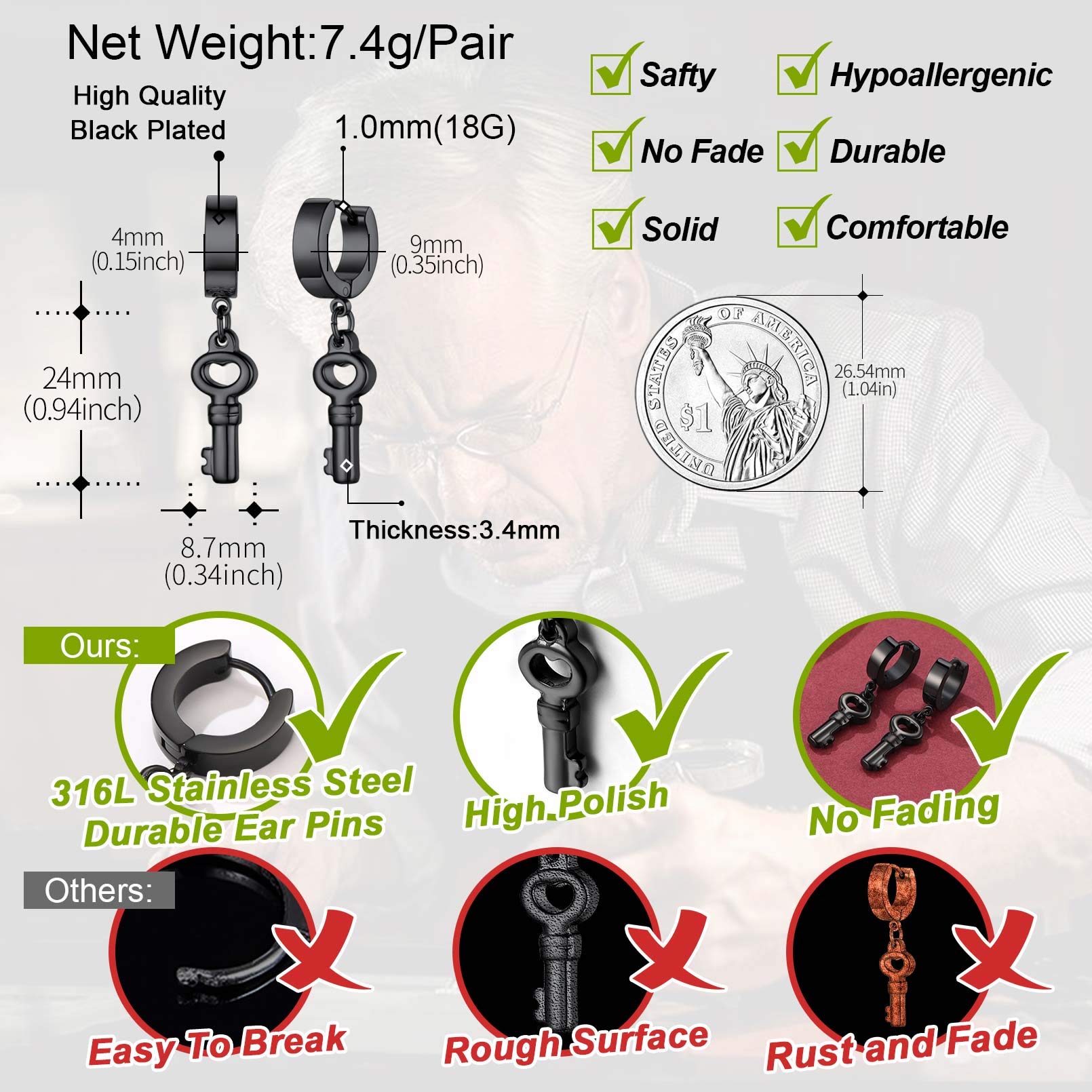 FaithHeart Huggie Hoop Earrings for Women-Stainless Steel/18K Gold Plated Dangling Drop Earring Ankh/Cross/Padlock/Italian Horn/Eye/Key Hoops Jewelry