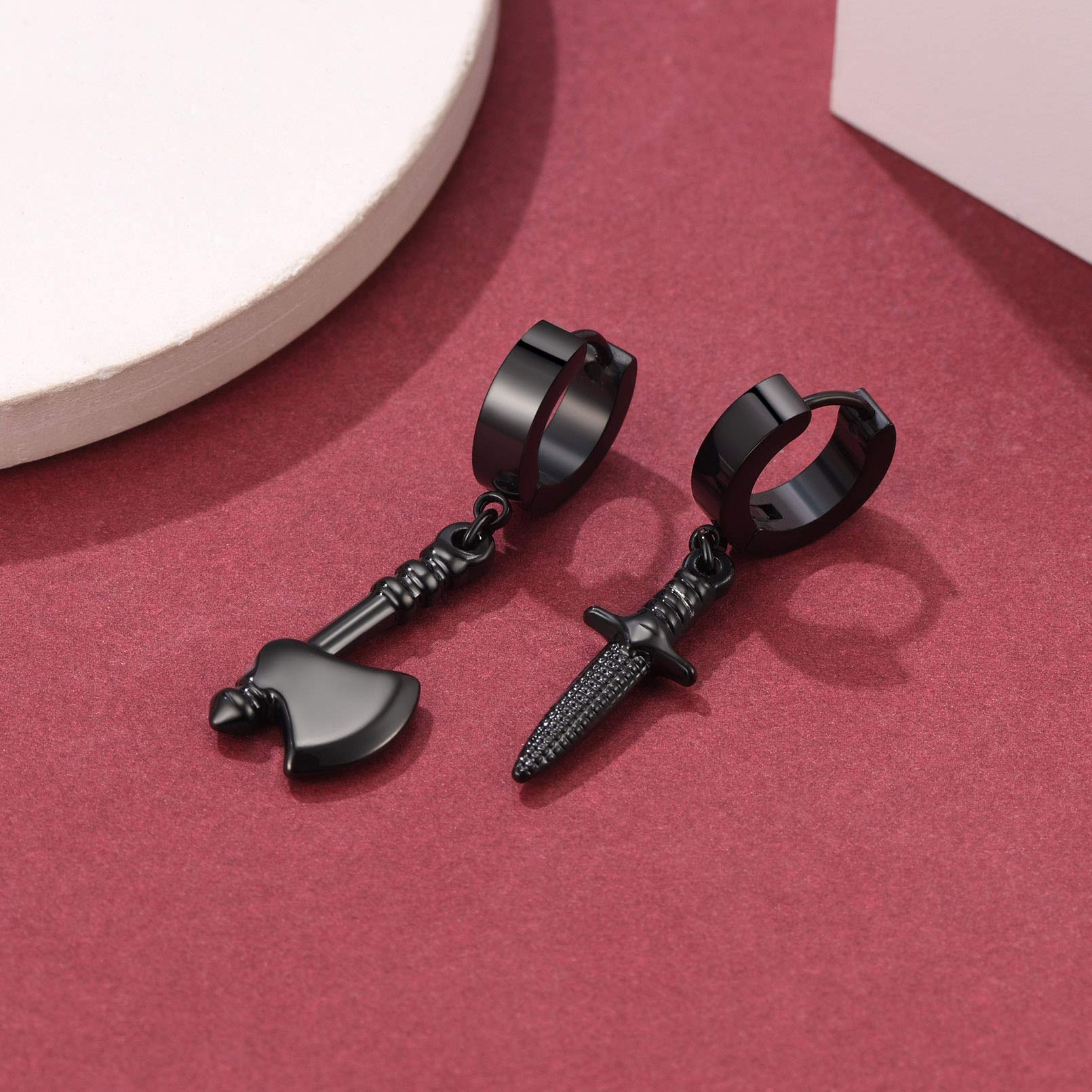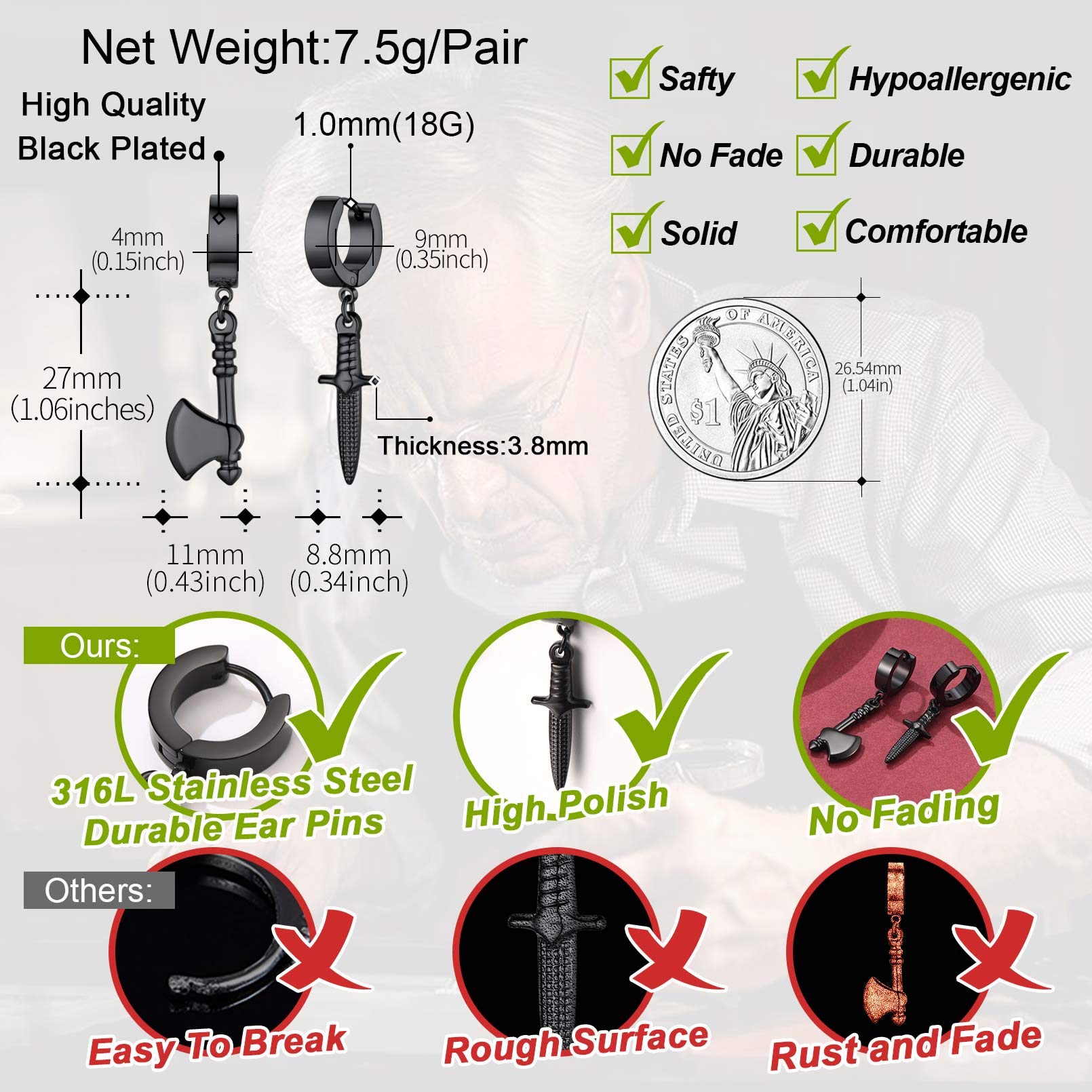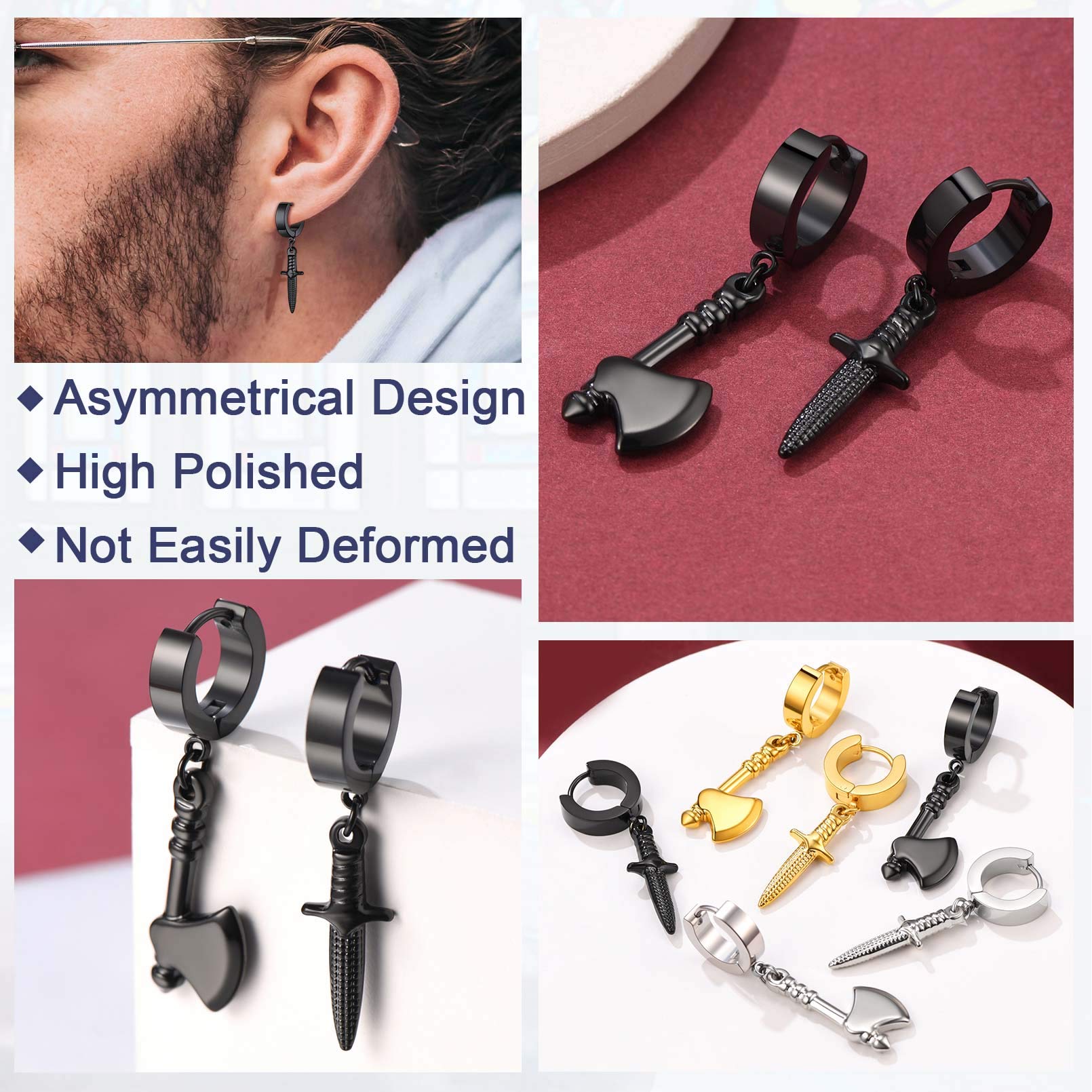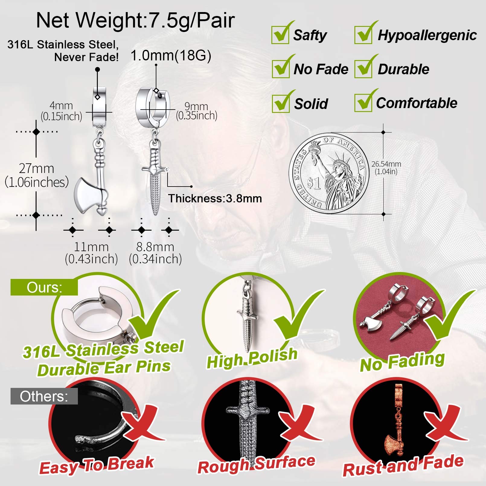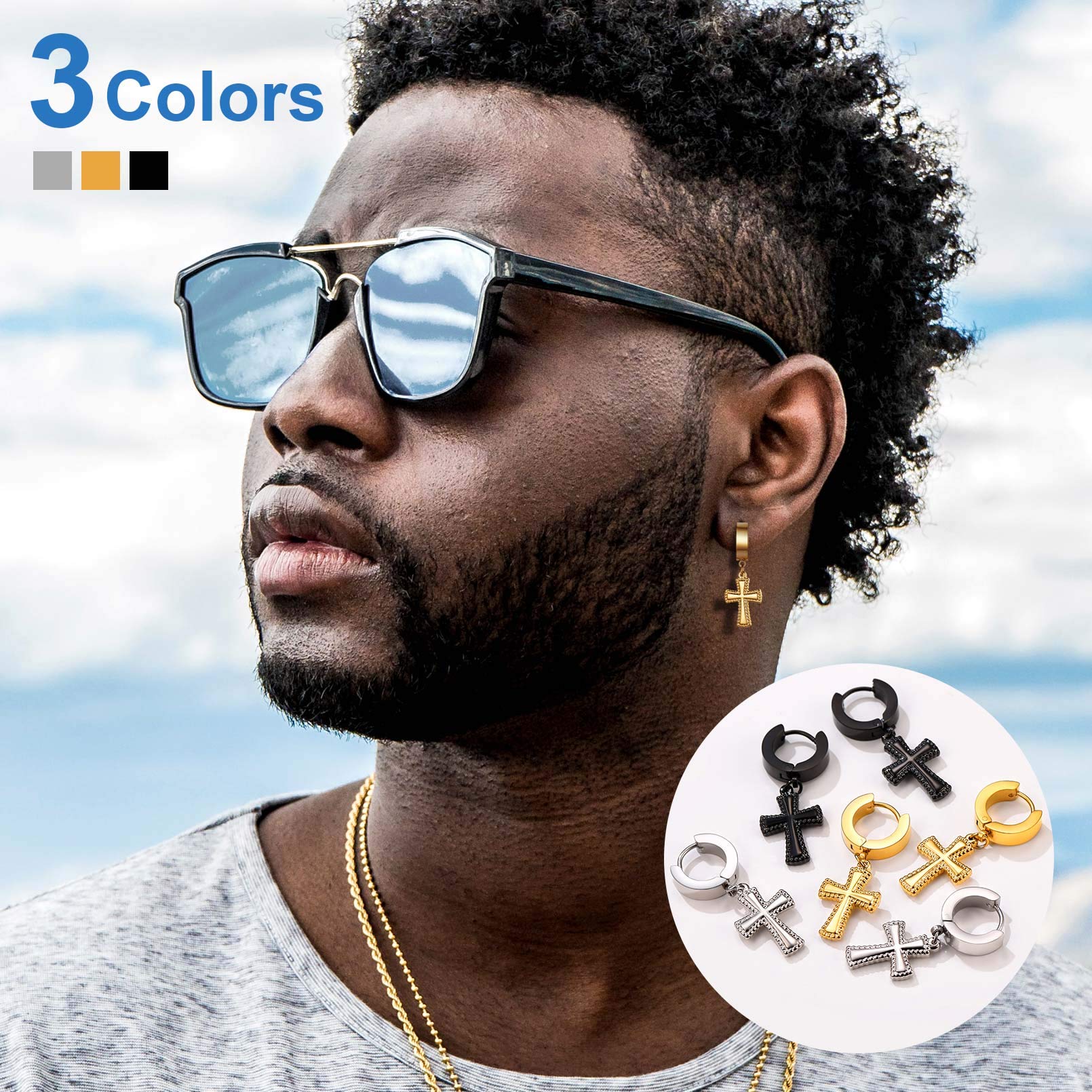 FaithHeart Huggie Hoop Earrings for Women-Stainless Steel/18K Gold Plated Dangling Drop Earring Ankh/Cross/Padlock/Italian Horn/Eye/Key Hoops Jewelry