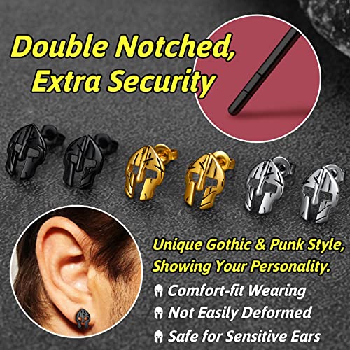 FaithHeart Spartan Helmet Stud Earrings for Men Women, Stainless Steel/18K Gold Plated Greece Jewelry with Delicate Gift Packaging