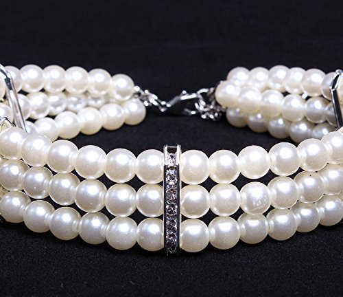 Fancy 3 Row Pearls Diamond Dog Necklace Collar Jewelry with Bling Rhinestones for Pets Cats Small Dogs Girl Teacup Chihuahua Yorkie Clothes Costume Outfits (Pink, 8 to 10-Inch)