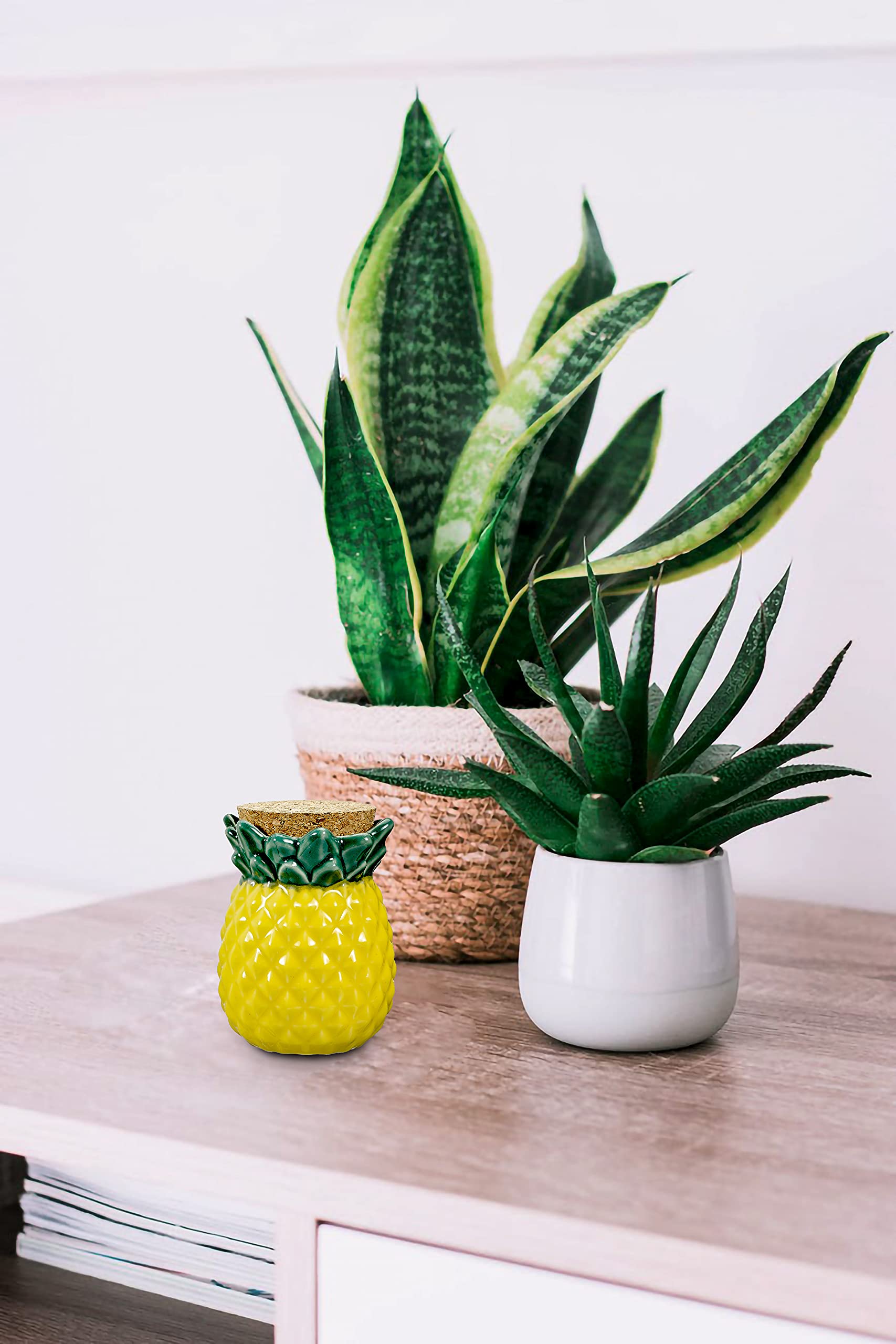 This tropical themed stash jar is made of ceramic in the shape of a pineapple with a green leafy top. The body is yellow with a scalloped shape that gives it a true 3D feel. Use the jar to store teas, coffees, herbs, spices and medical herbs. The tight-seal cork ensures that your herbs are kept fresh for months and that the sensitive material is protected from light. The Pineapple stash jar comes packaged in an acetate box. This product is recommended for adult use only. Pair up with our matching Pineapple Roast & Toast mug and you have the perfect gift for a stoner friend or family member.