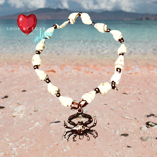 New from our Resort Wear Collection comes a dope little bracelet, made with real shells, bold copper accents, and a matching crab charm. This beautiful beach themed gives a little stretch, along with petite floating shells. Add a statement to vacay look with this totally boho bracelet! Complimentary gift with every purchase from Shopatluxe!