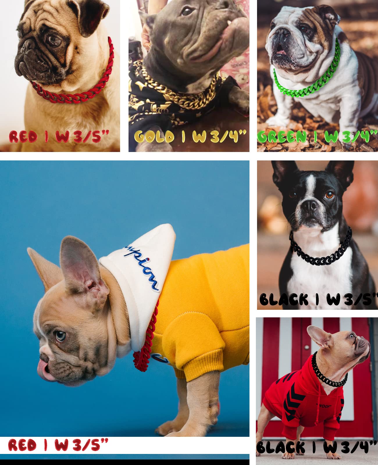 - PERFECT MATCH WITH MOST CLOTHING - This dog gold collar chain match good with Bulldog, French Bulldog, American Bully, Pit Bull, etc. And more cute looking with clothing such as Hawaiian style, sunglasses, headset.Cuban link dog collar, hip-hop style makes your puppy hot and adorable, suitable for gift;
