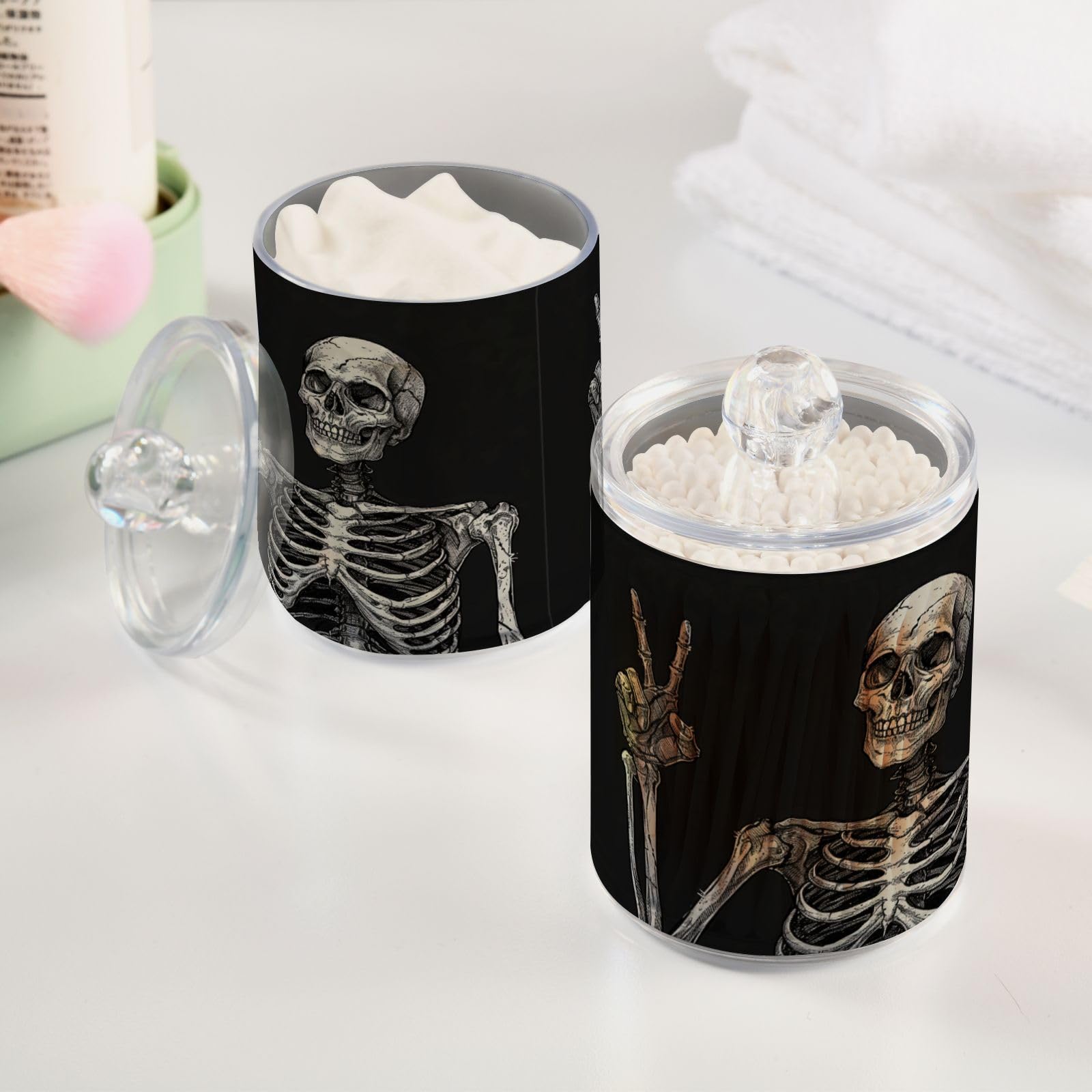 Halloween Skull 2PC Airtight Transparent Plastic Storage Jar, Food Storage Container Glass, Can Store Candy, Salt, Coffee Beans, With lid, Easy To Use