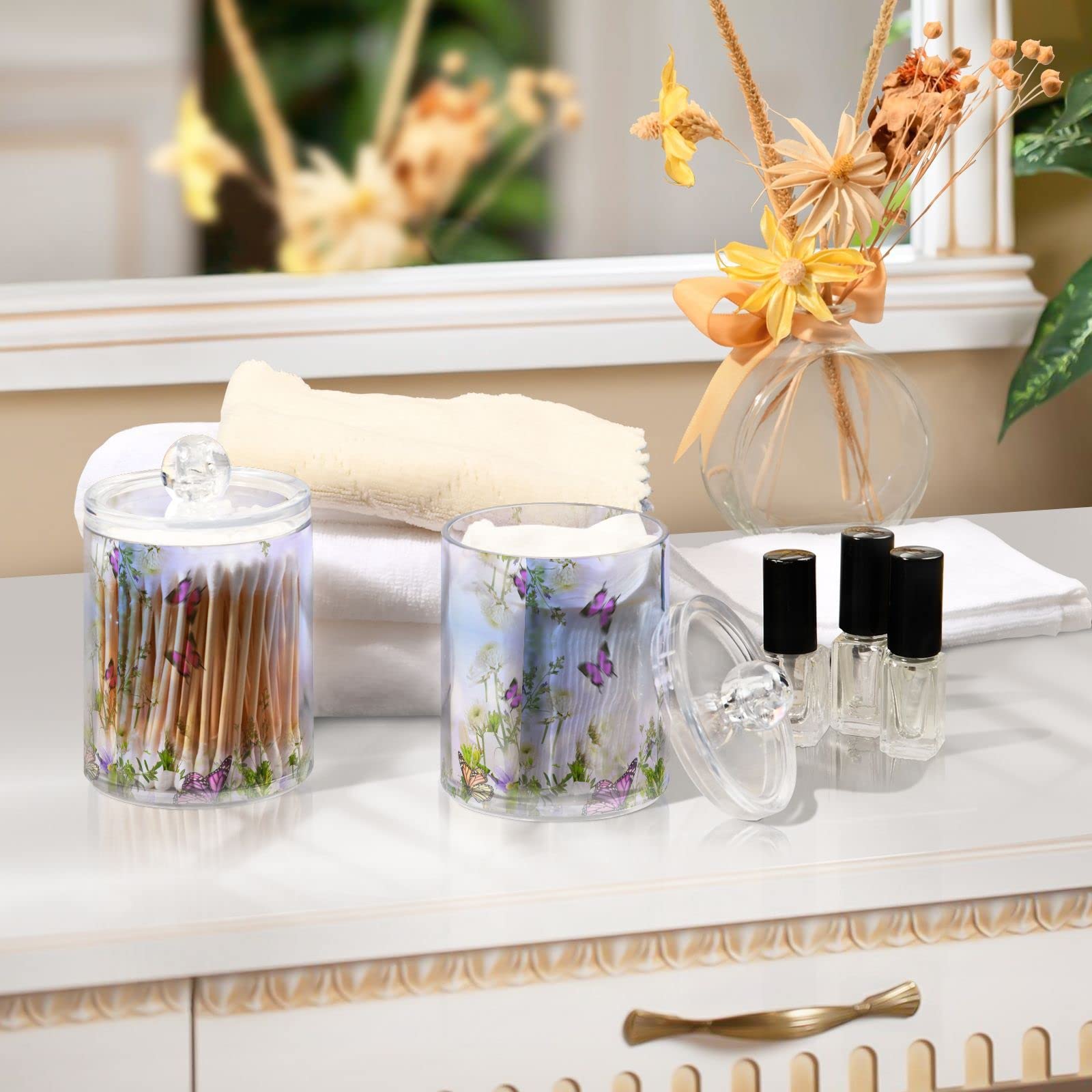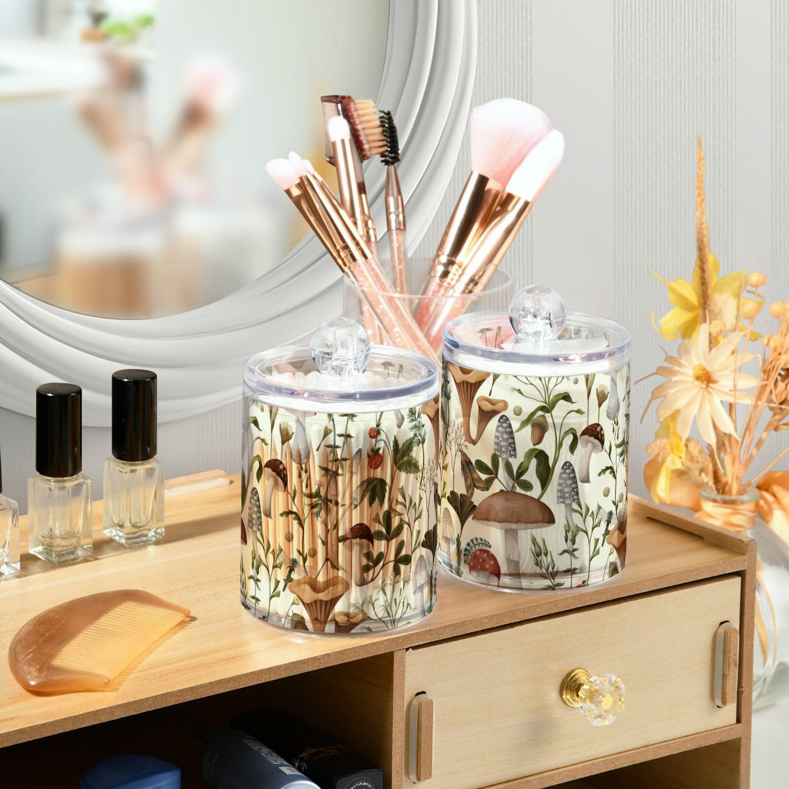 - ✿PERFECT GIFT:The airtight bathroom clear storage jar is perfect for weddings, housewarming, wedding receptions, birthdays, Christmas, graduations, etc. The unique DIY printing design is full of seniority.
