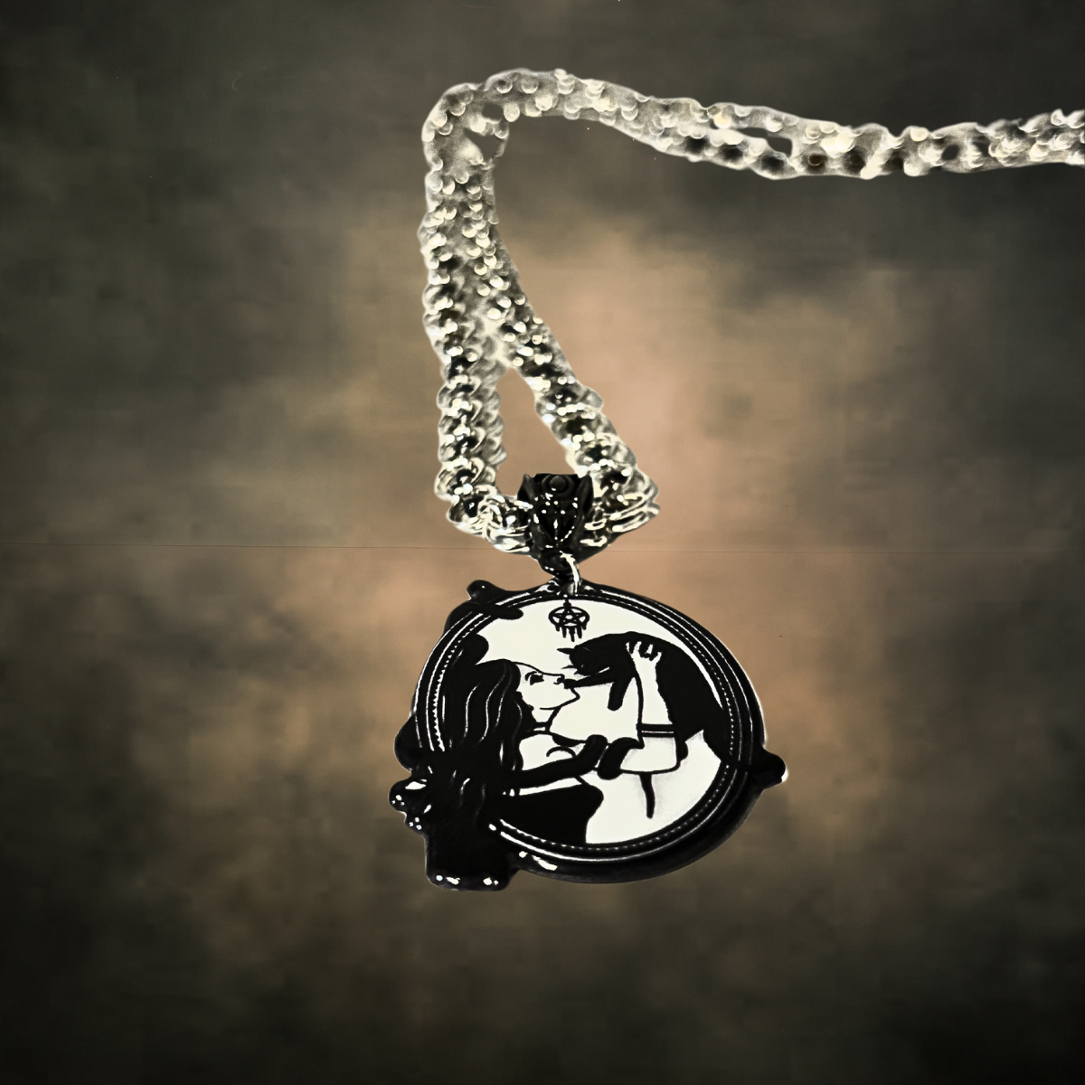 Whether you wear this gothic novelty necklace to show your dark side or just for fun, you'll look sexy and get attention with this streetwear accessory. Many chain styles available - just ask!