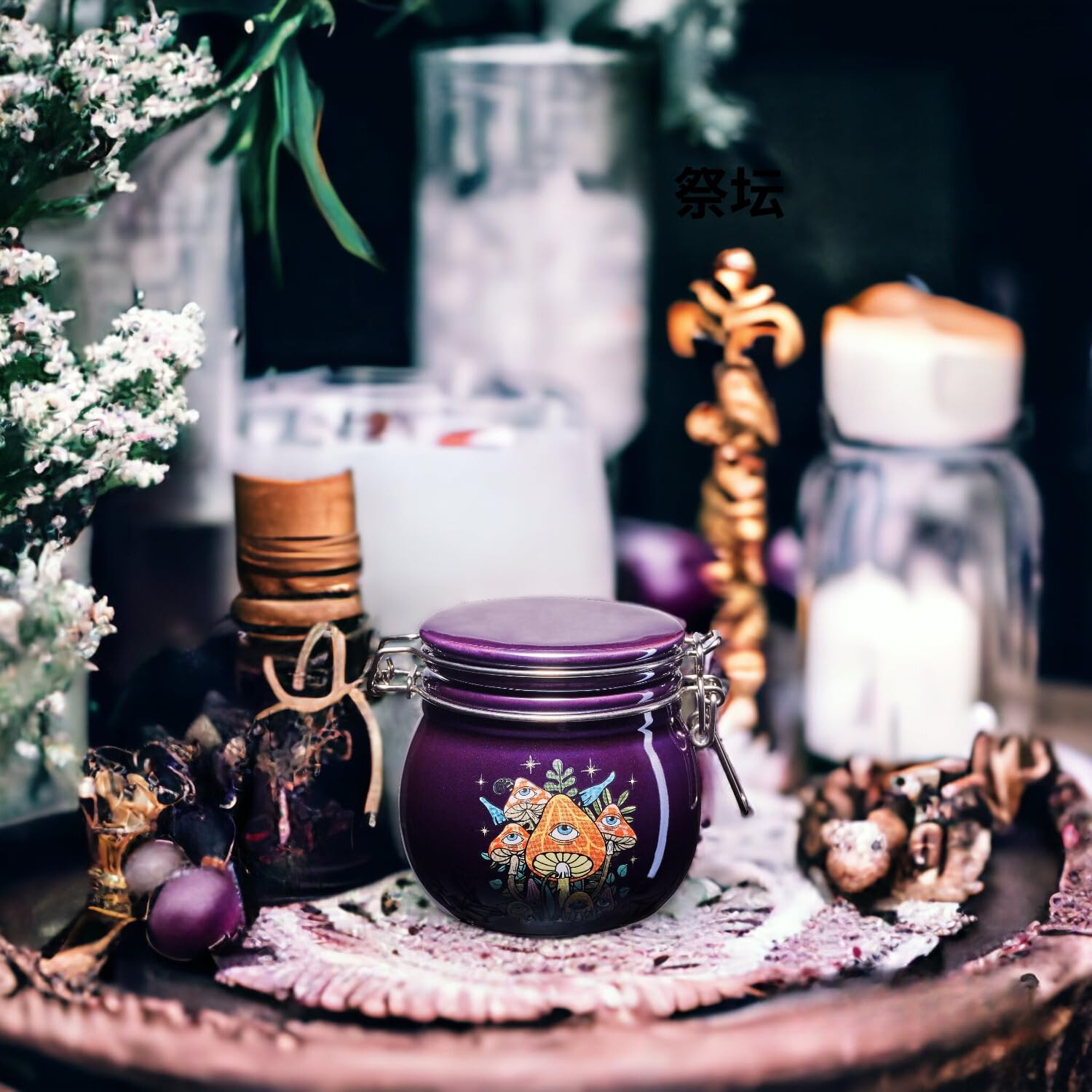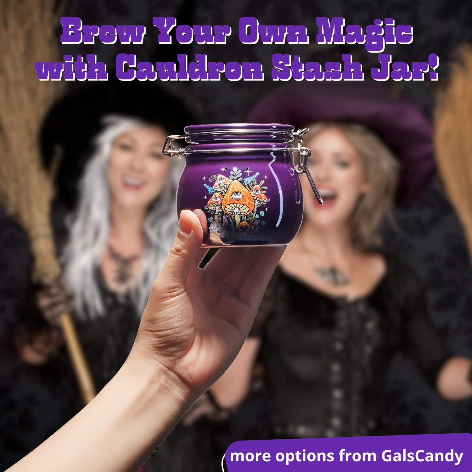 Herbs Stash Jar - Witchy Storage Jar, Smell Proof Stash Container Cute Mushroom Pottery Jar, Cauldron Stash Canister with Airtight Lid, Decorative Jar for Wicca Moon Magick Altar Easter Gifts Ideas