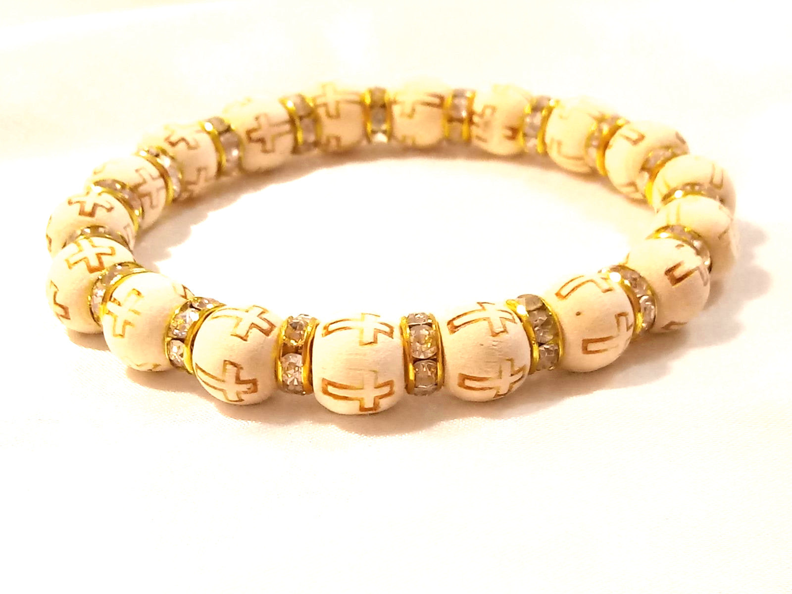 Newly handcrafted from ShopAtLuxe, this minimalist bracelet is constructed of 12mm inked wooden beads and alternating crystal/gold accents for that fresh look. Lead and nickel free; hypoallergenic. Stretch cord for comfort. Appropriate for 7 to 8.5 inch wrist sizes; loose, casual fit. Perfect for any gender! Complimentary gift with purchase!