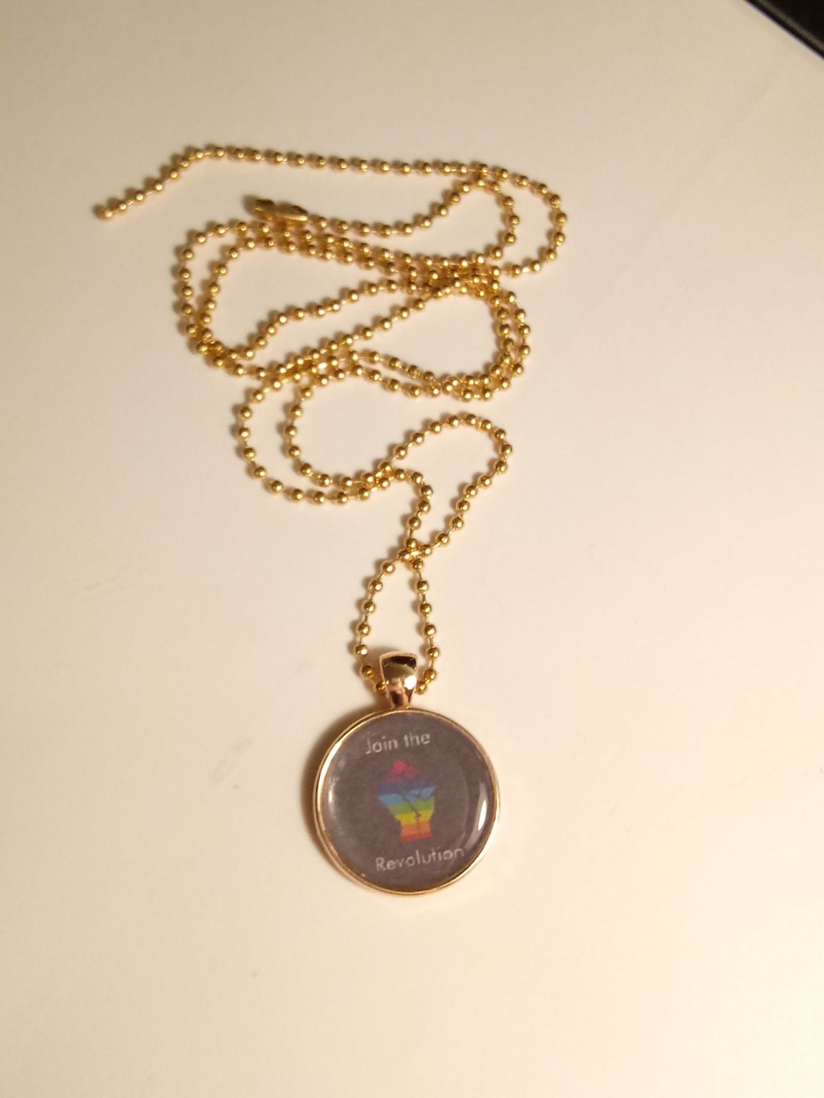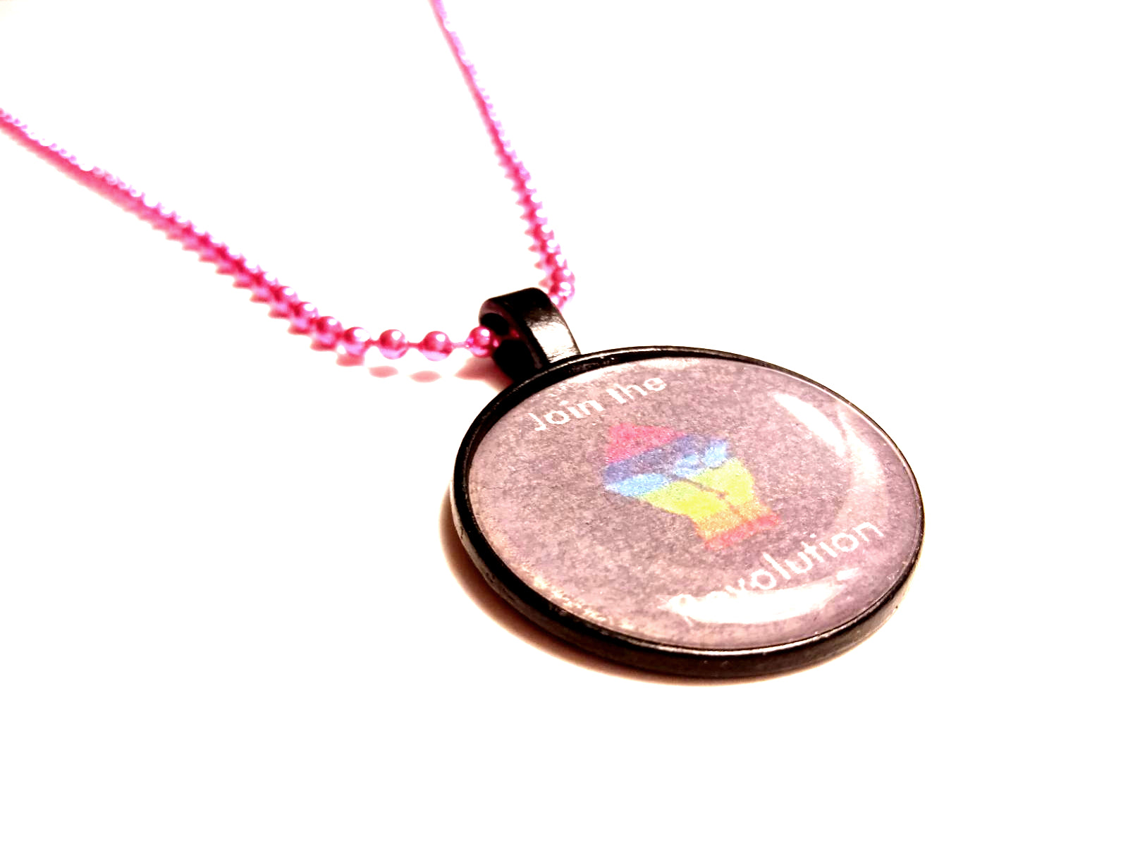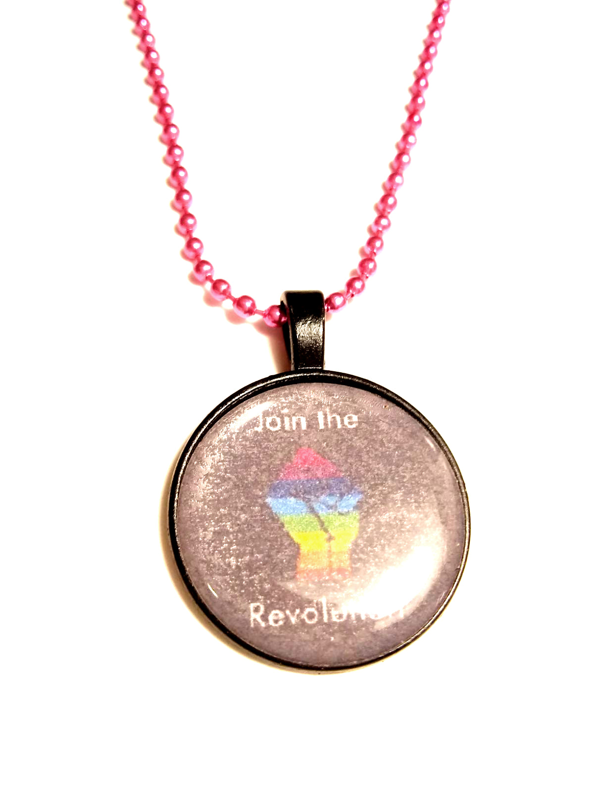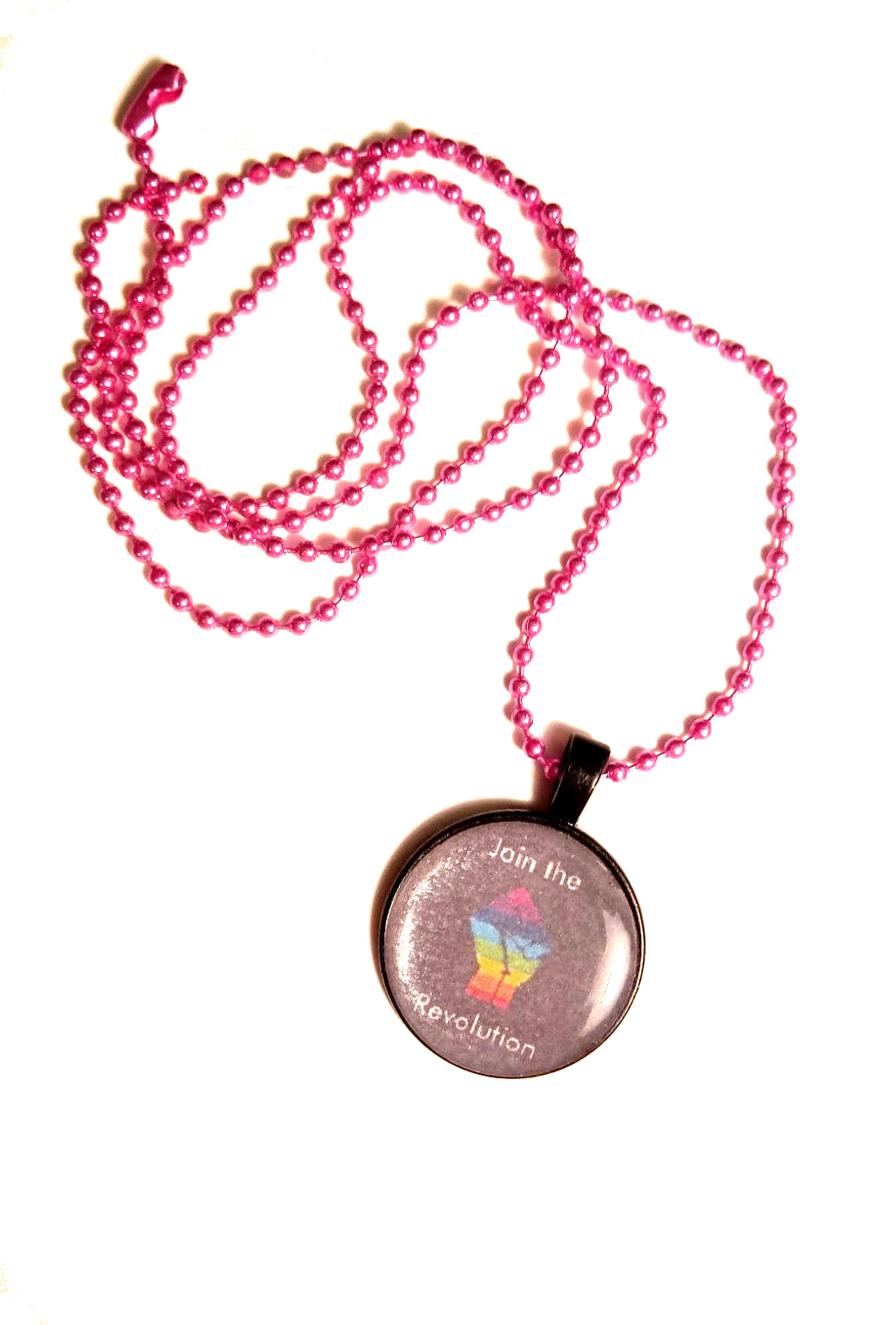 1 inch cabochon; 22 inch hot pink military ball chain with barrel closure; lead and nickel free; hypoallergenic; complimentary gift with purchase.