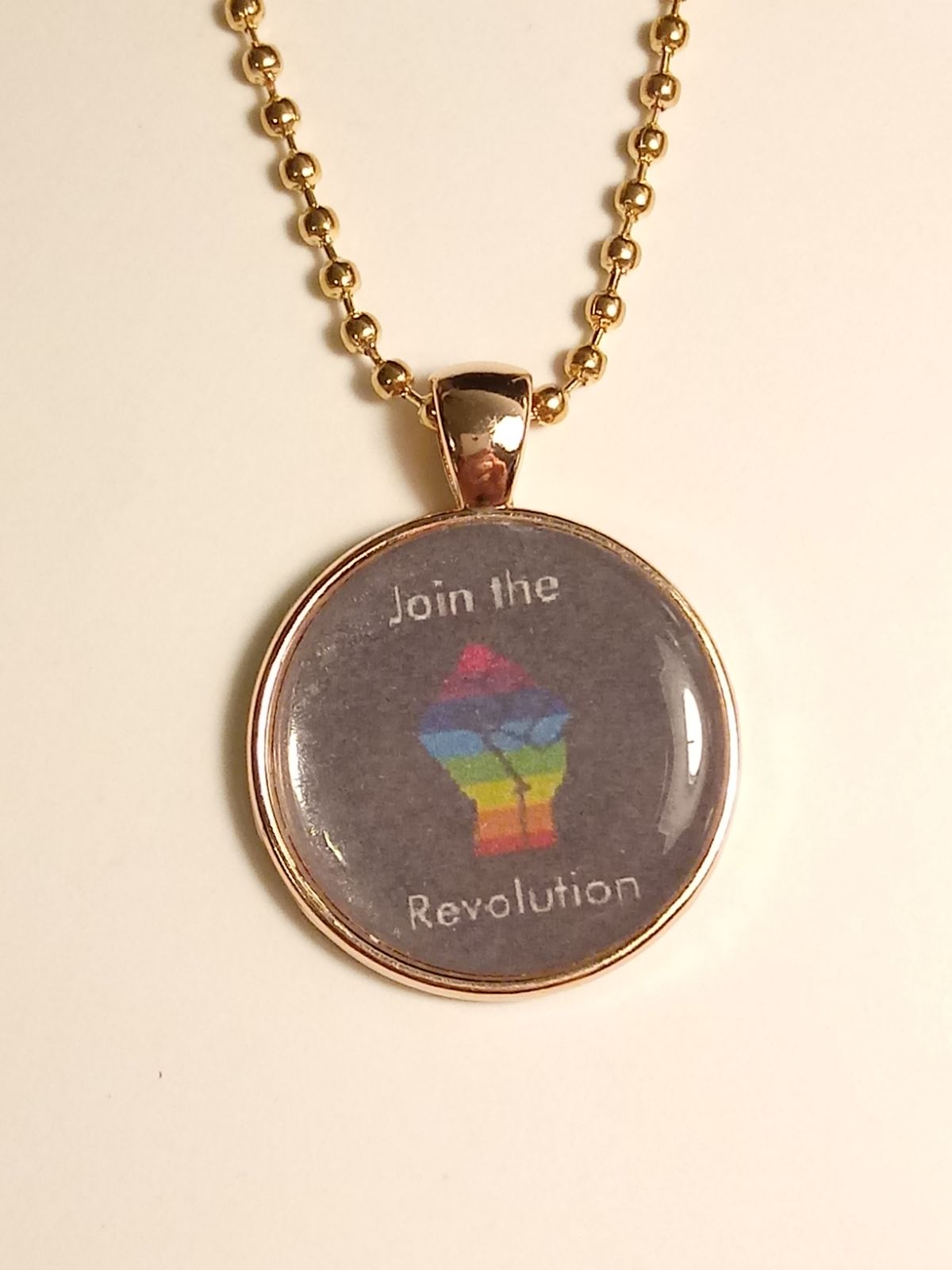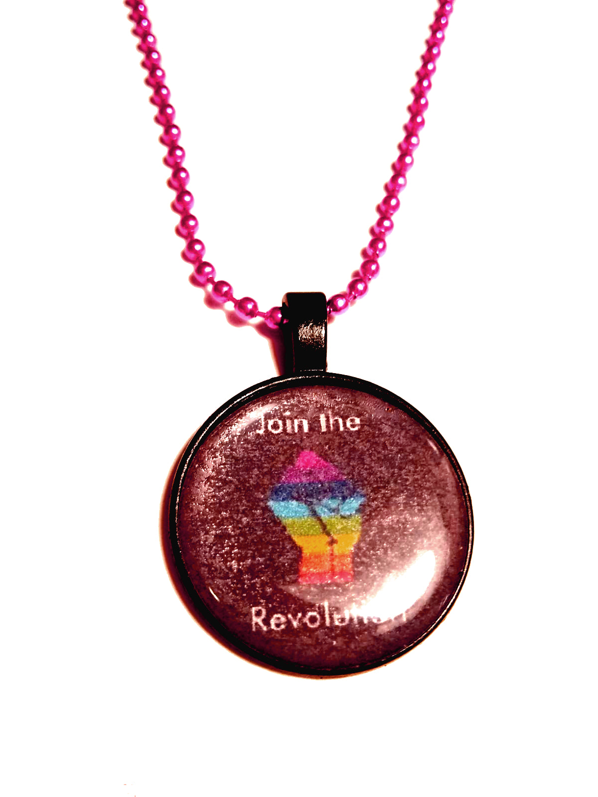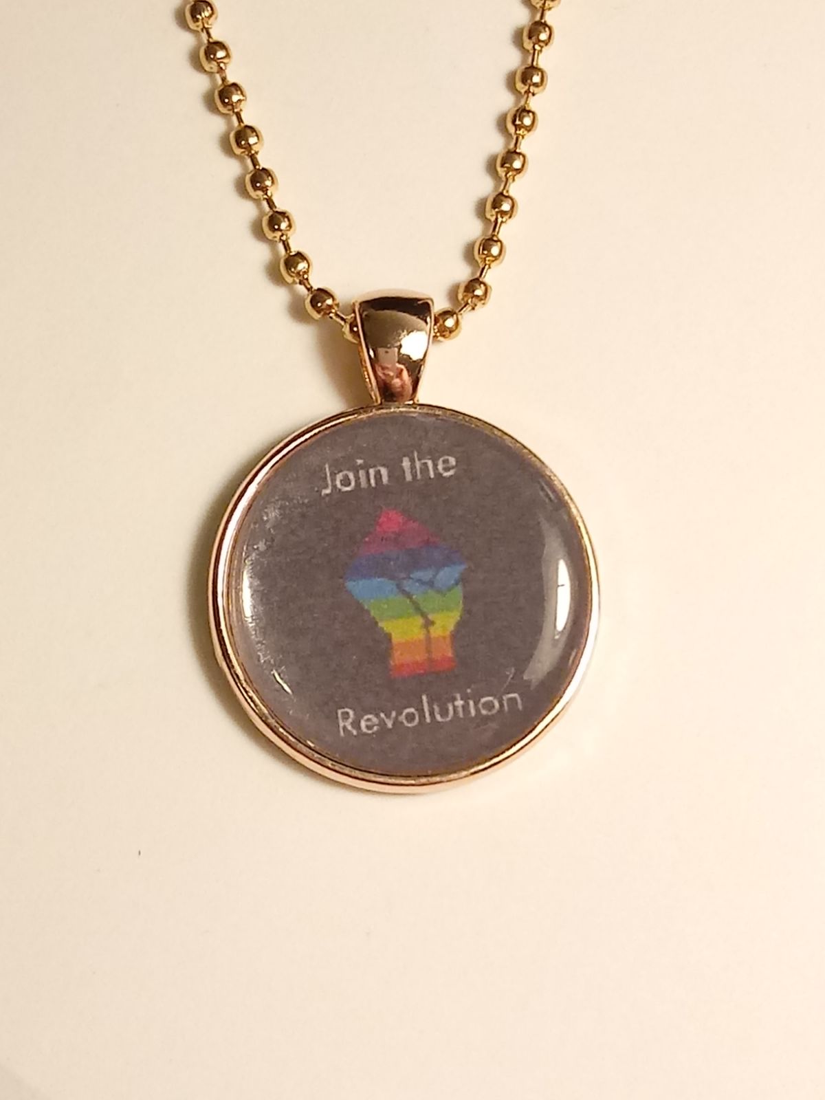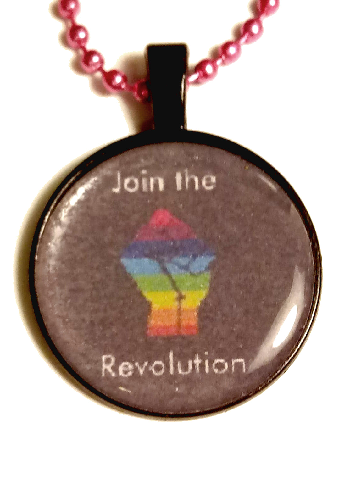 Constructed with a vivid and colorful image reading, "Join the Revolution," under a flexible transparent topper, a black bevel captures this retro theme and makes it current.