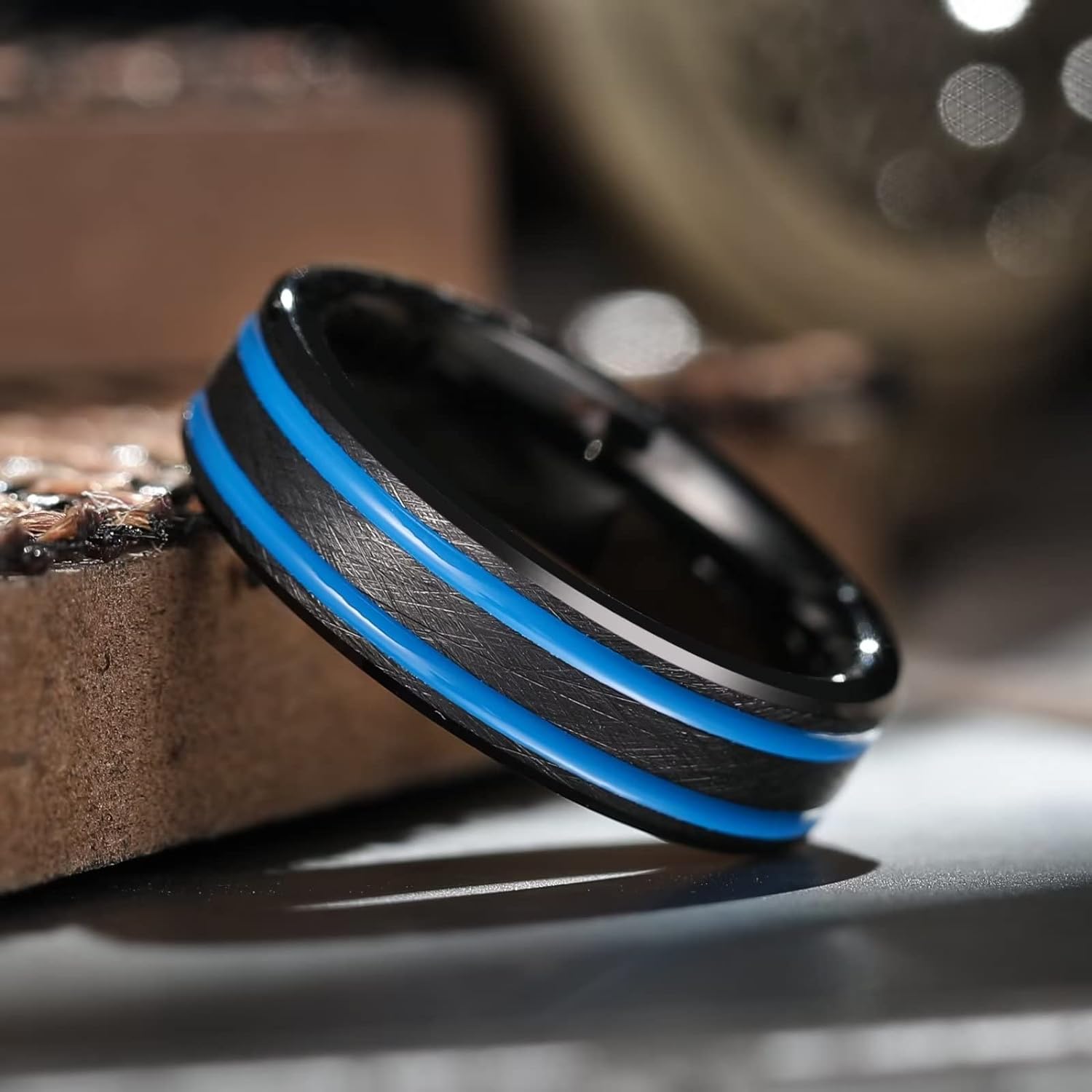 - ✔️CLASSIC DESIGN: Black/Silver/Rainbow/Rose Gold/Yellow Groove Tungsten Carbide Ring for Men Blue Thin Groove Center, the forever classic style design.
