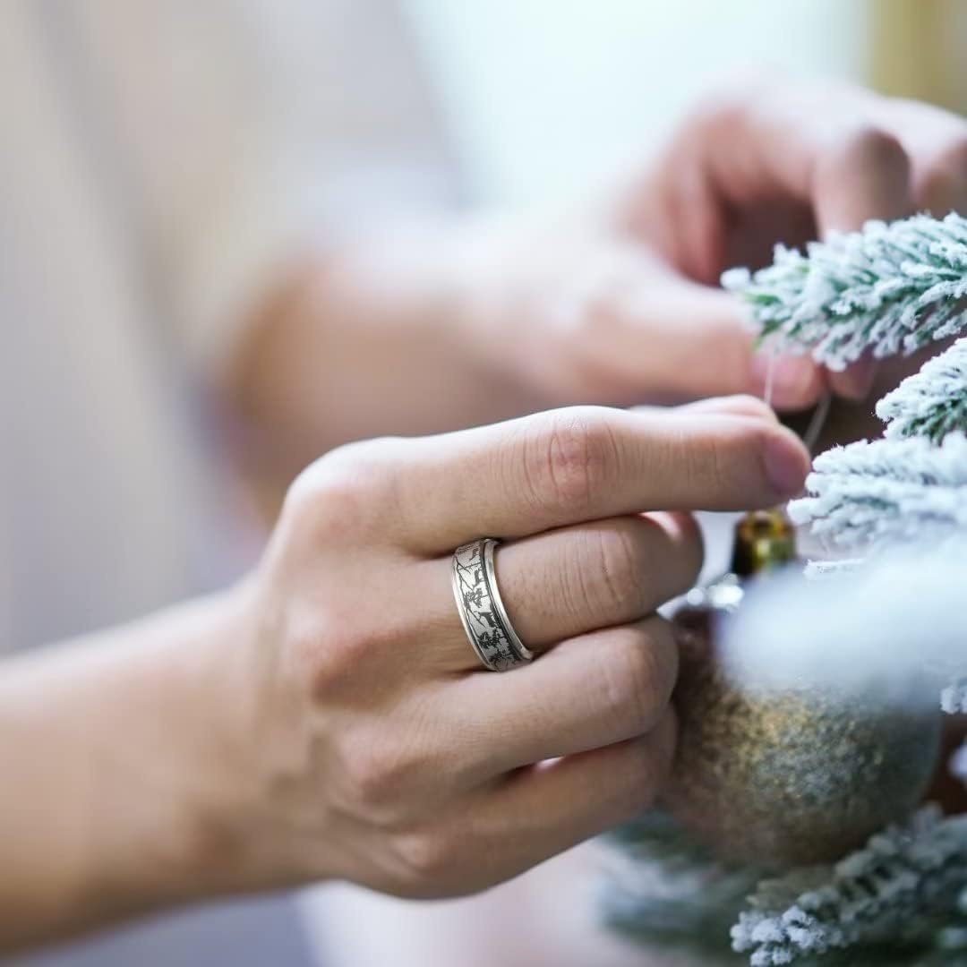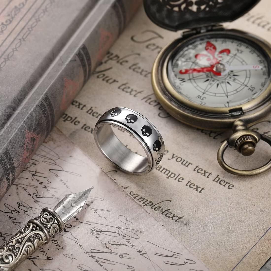 King Will 6mm 7mm 8mm Silver Black Stainless Steel Ring Spinner Ring Anxiety Relief Wedding Ring For Men Women Forest Elk Deer Family/Moon Star/Skull Head/Evil Eye/Poker Pattern