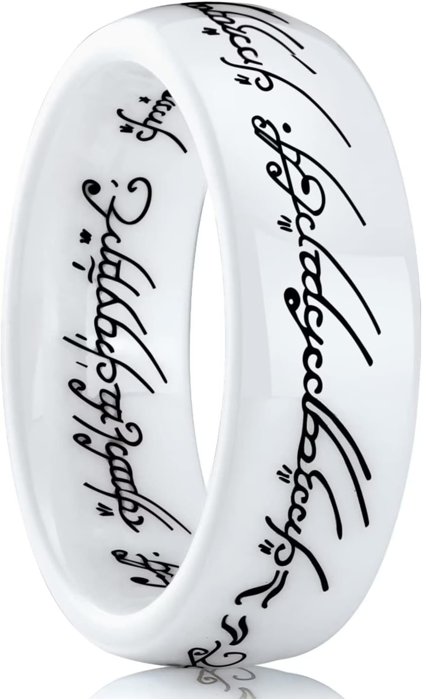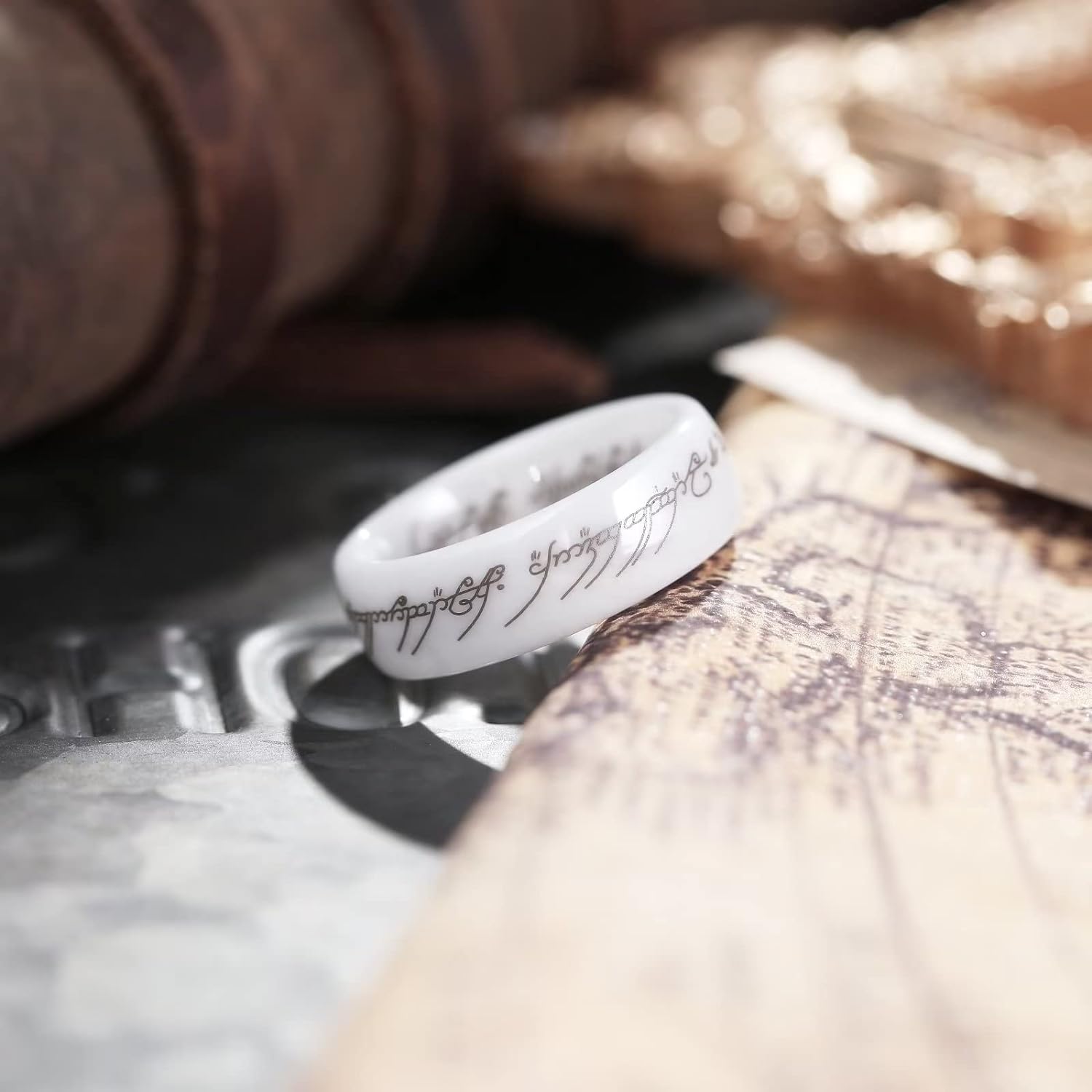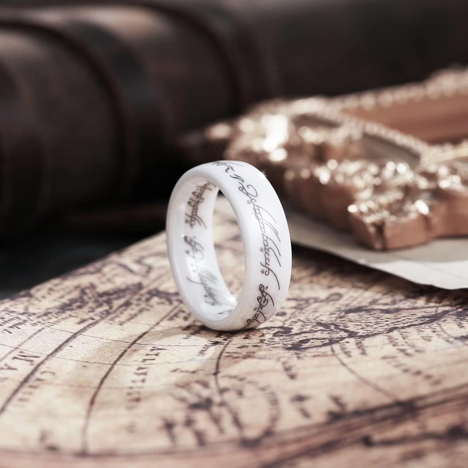 King Will 6mm 7mm White Lord Rings Ceramic Ring One Ring of The Rings Wedding Band for Men Women Comfort Fit High Polished