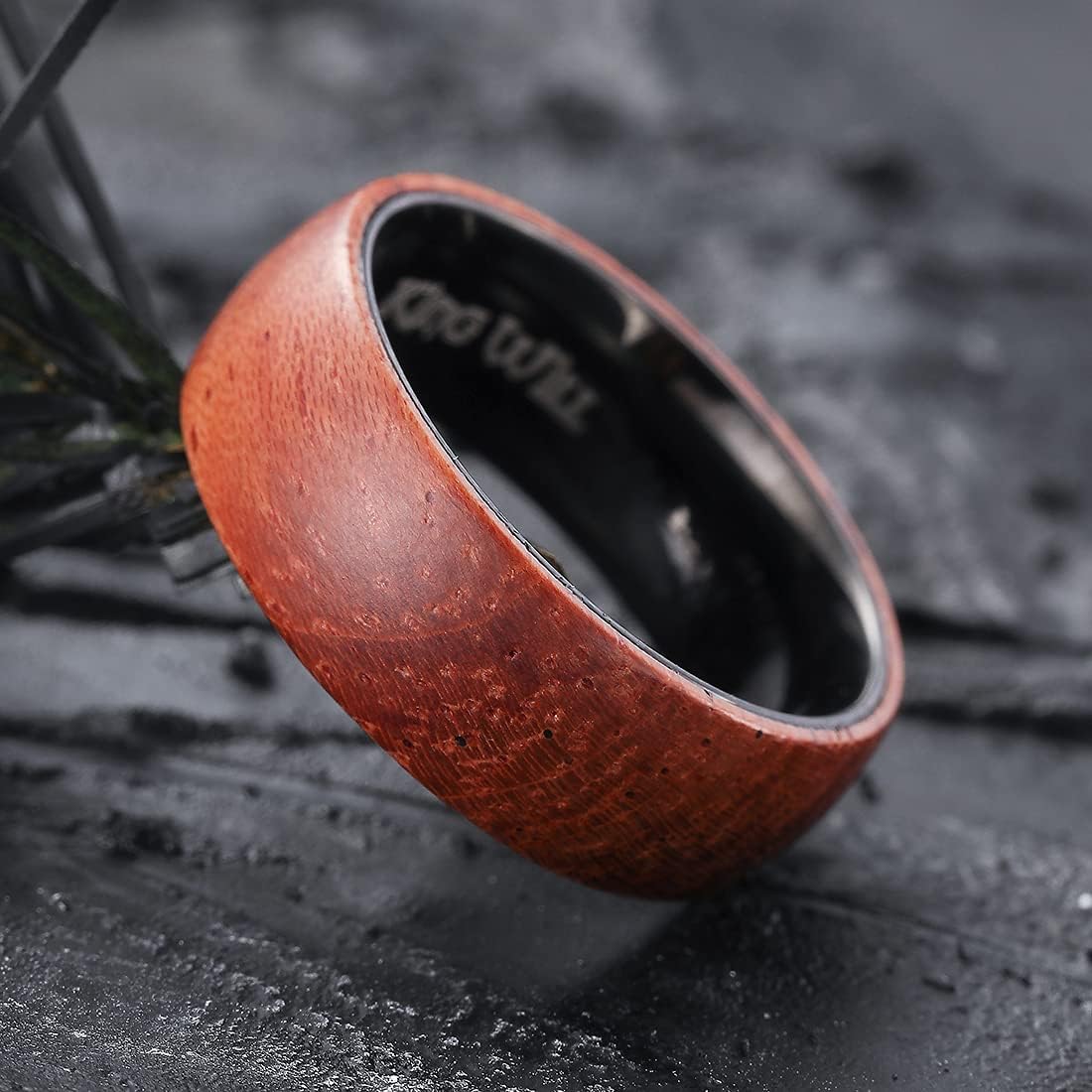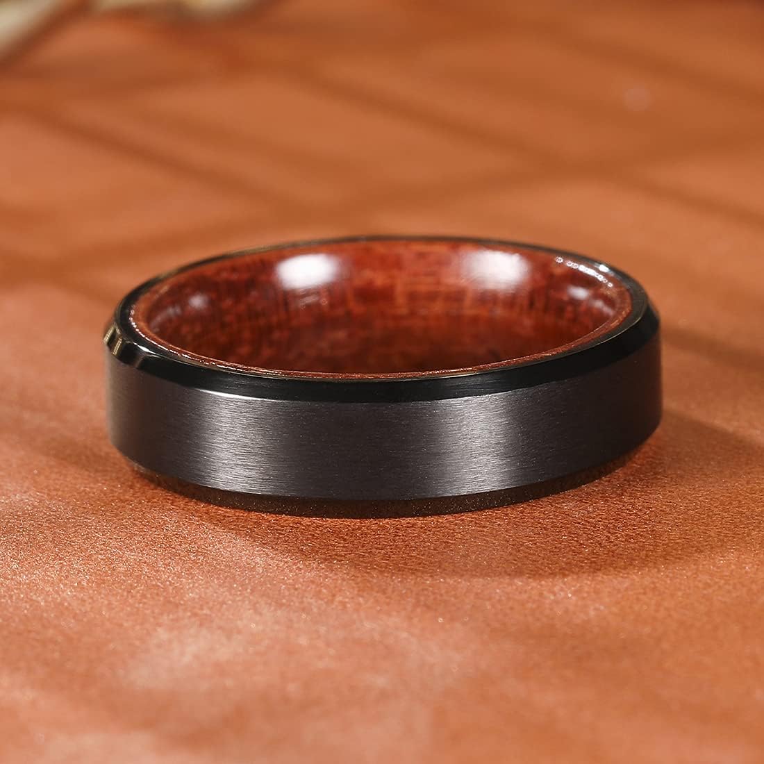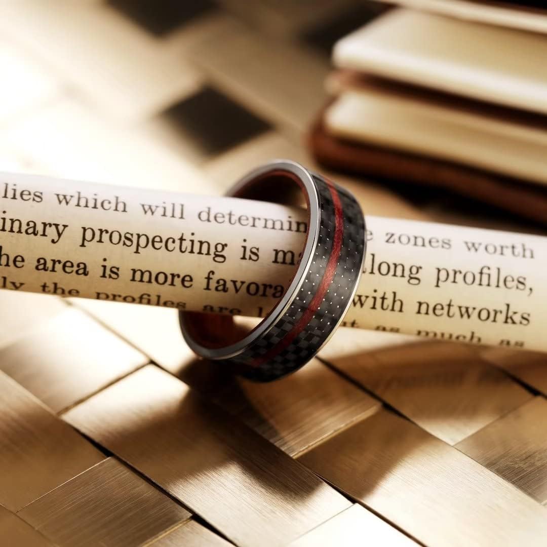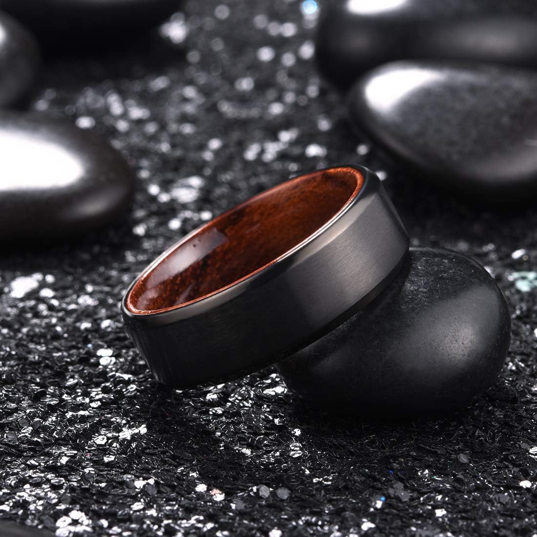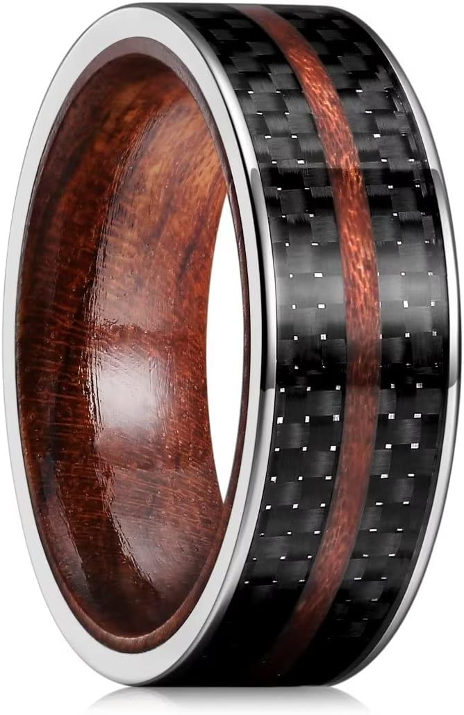 - ✔️SPECIAL DESIGN: 8mm Titanium Ring Inner Hole Inlaid Wood Carbon Fiber Inlay GENTLEMAN Wedding Ring for Women Men.