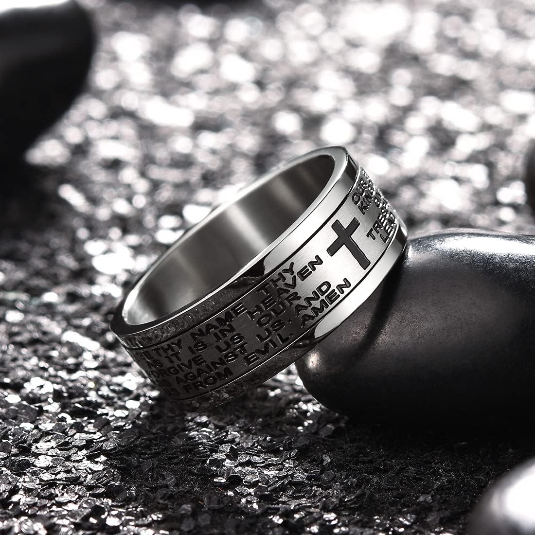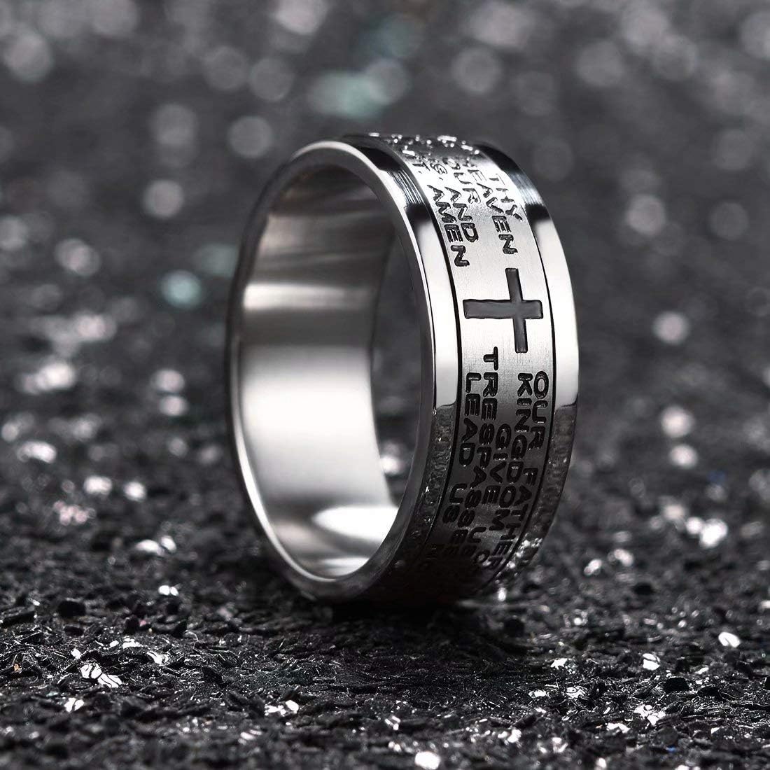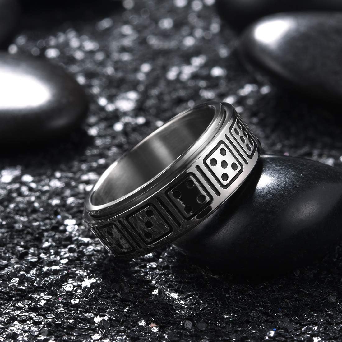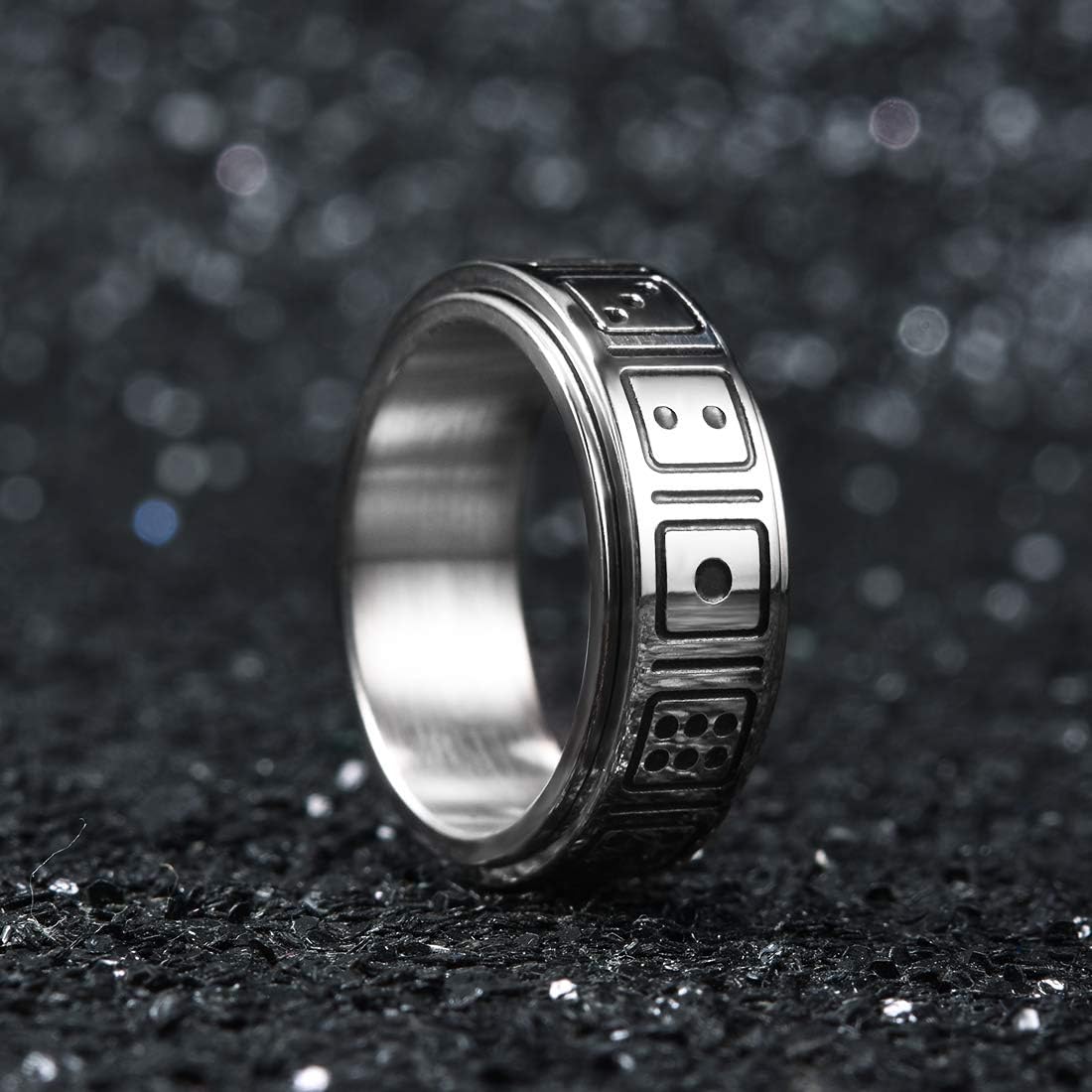 King Will 6mm 8mm Silver Rose Gold Titanium Spinner Ring Fidget Anxiety Ring for Men High Polished Dice Pattern/Lord's Prayer Comfort Ring