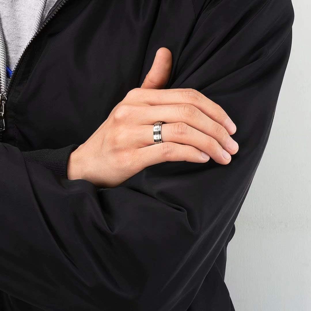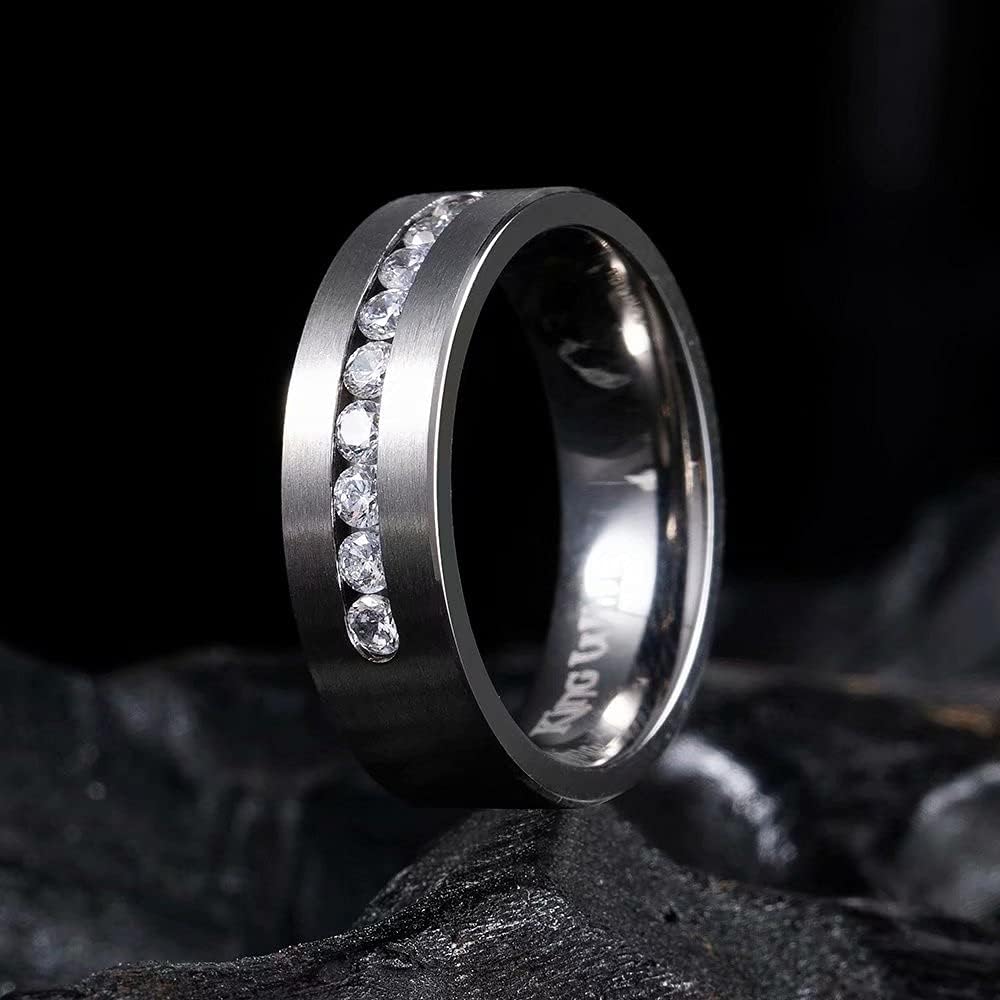 - ✔️CLASSIC DESIGN: 6mm wide silver basic titanium ring, suitable for both men and women, carved, step edge