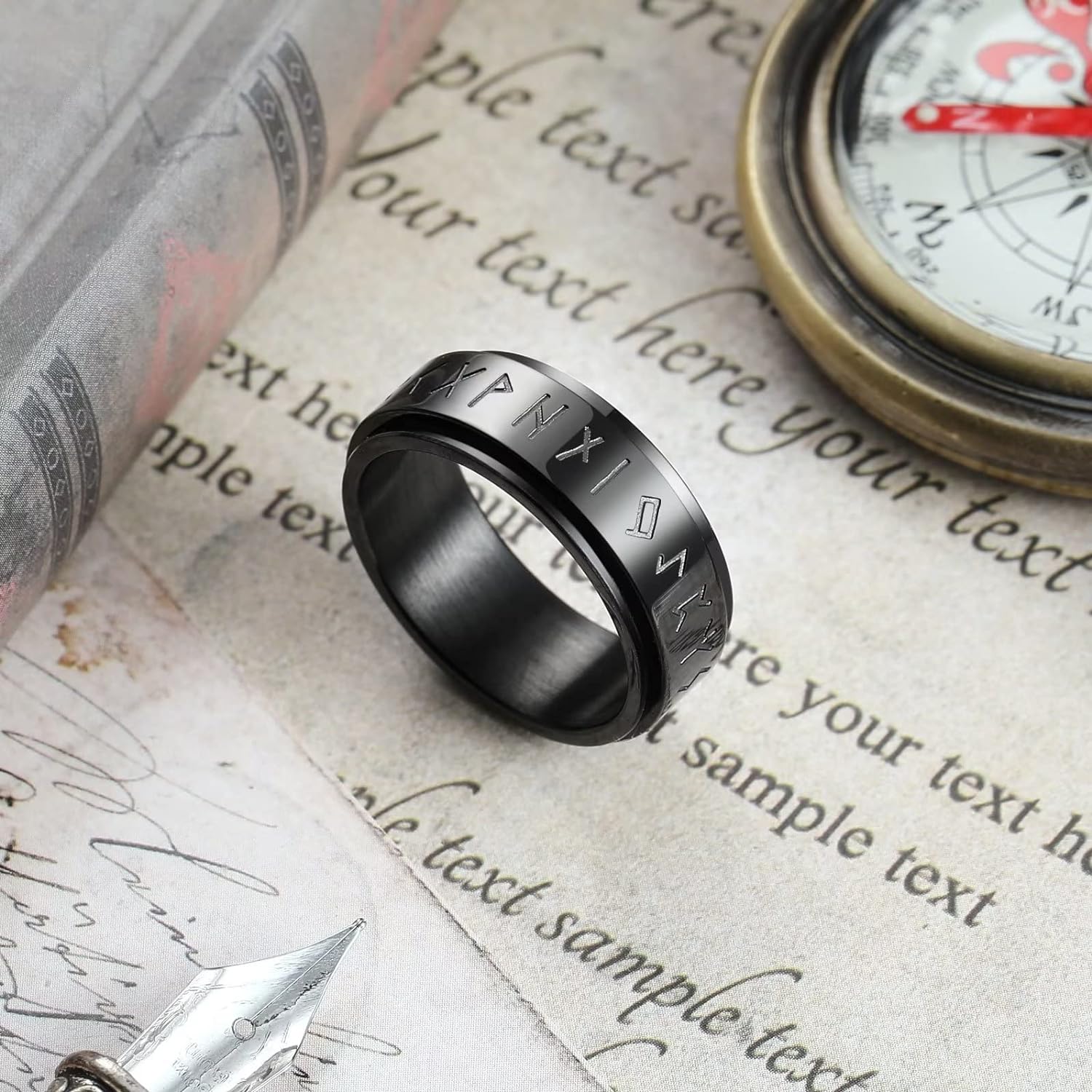 King Will 8mm Black/Silver Spinner Stainless Steel Ring Fidget Ring Anxiety Ring for Men Brushed Greek Key/Viking Pattern/Roman Numerals/Hammered Relieving Stress Ring