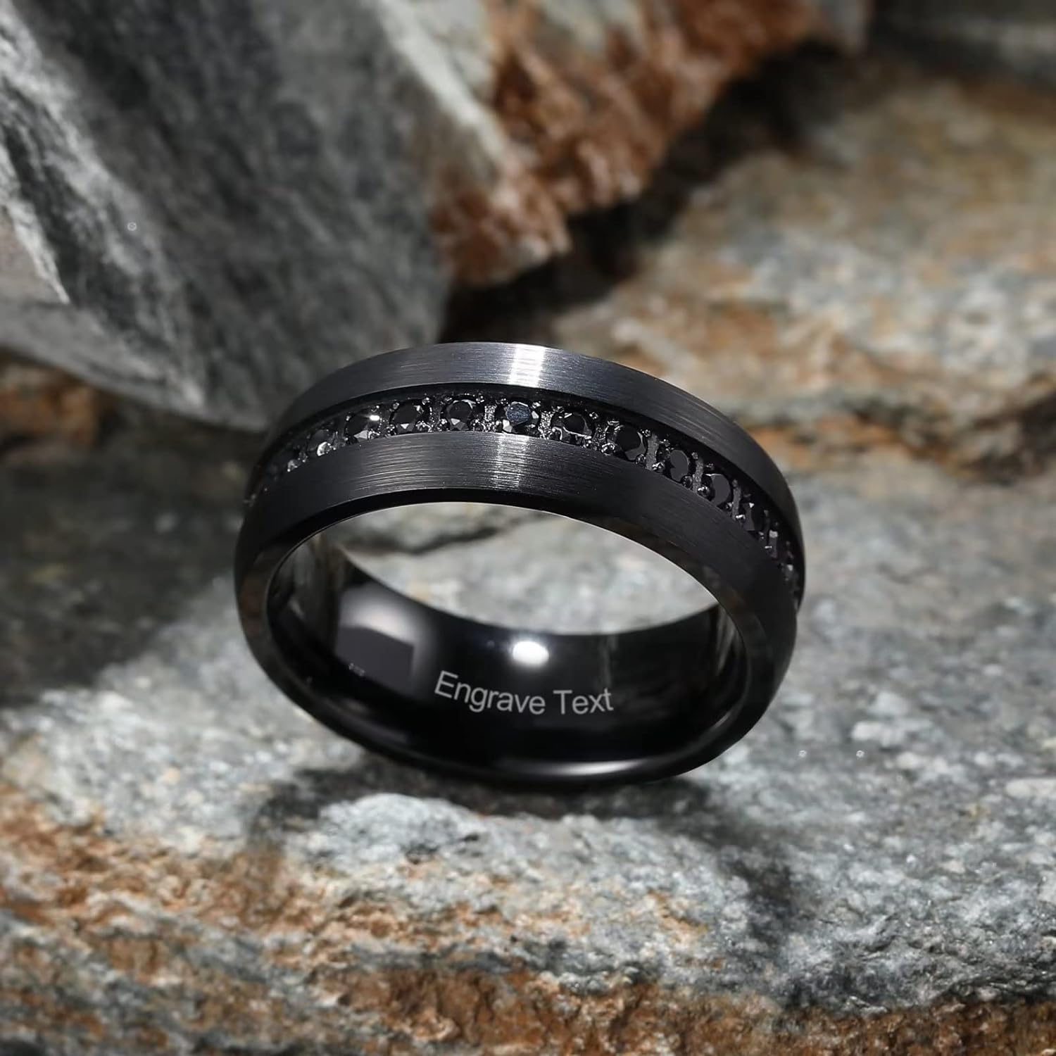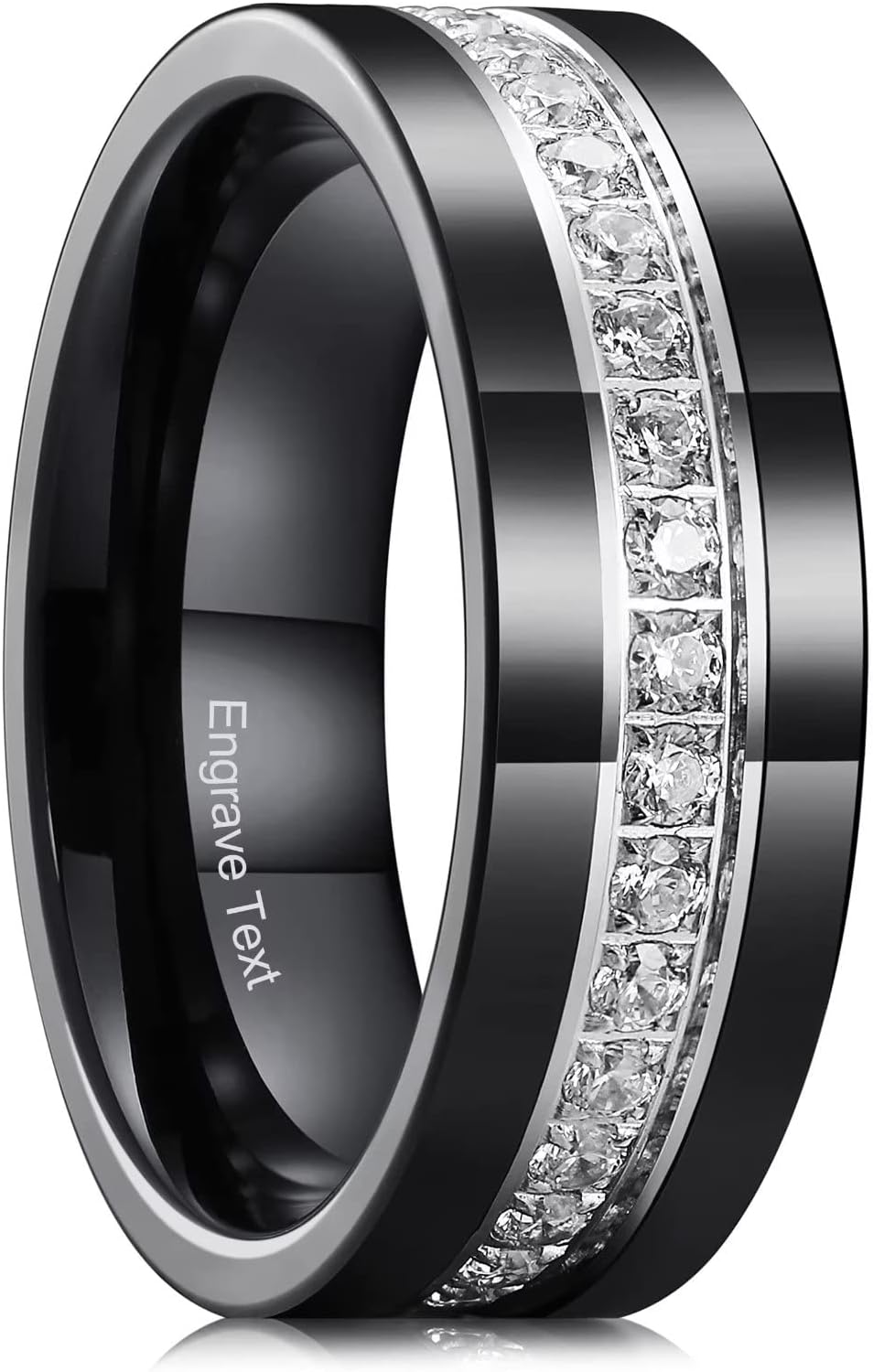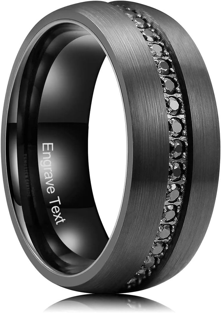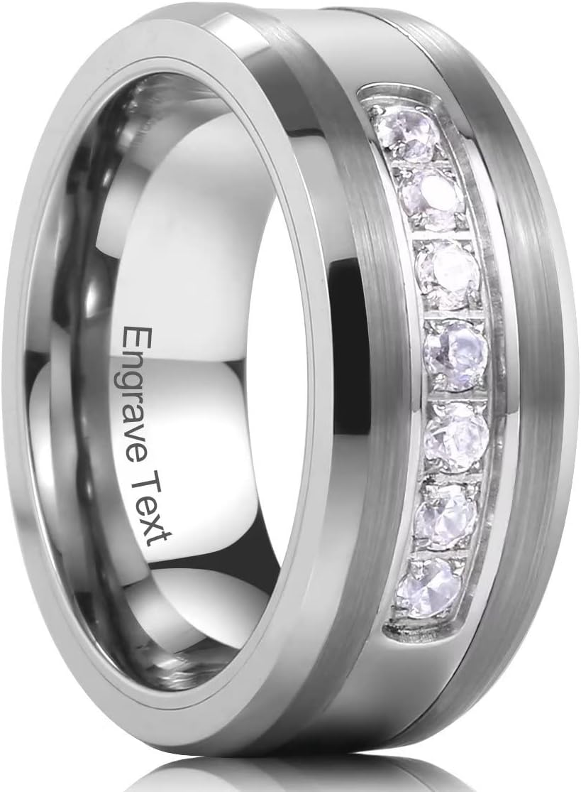 King Will GEM Custom Engraving Mens 8mm Tungsten Carbide Ring Cubic Zircon Stones Engagement Wedding Promise Band for Women Men Personalized