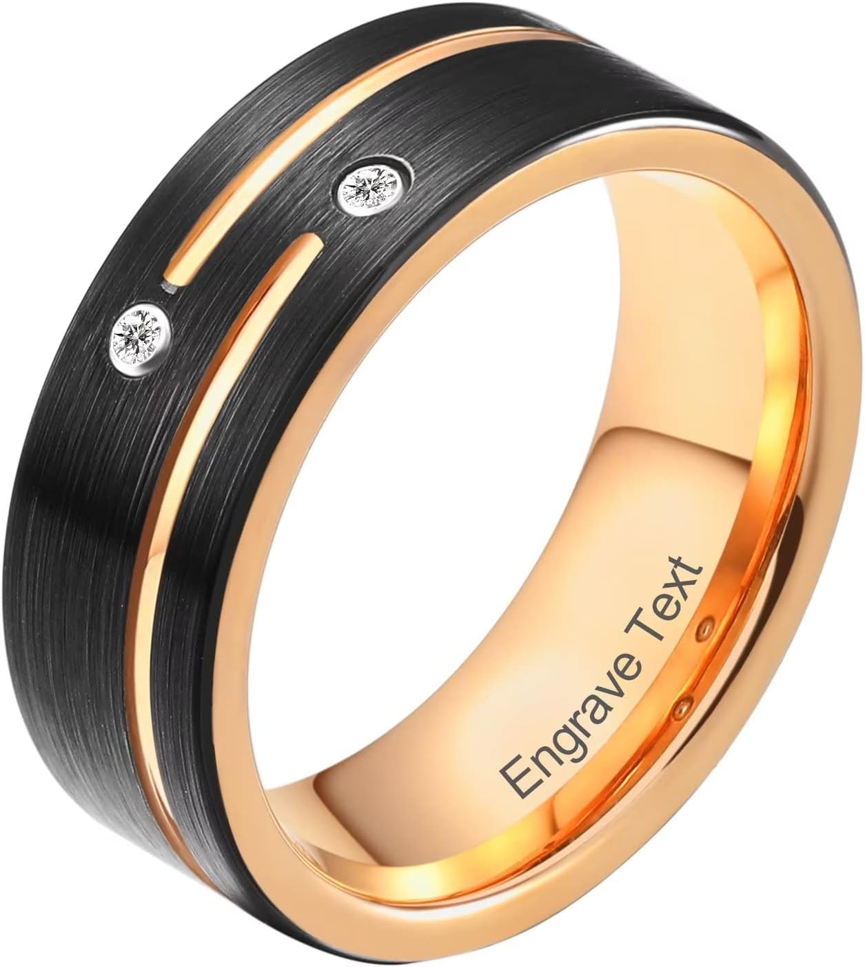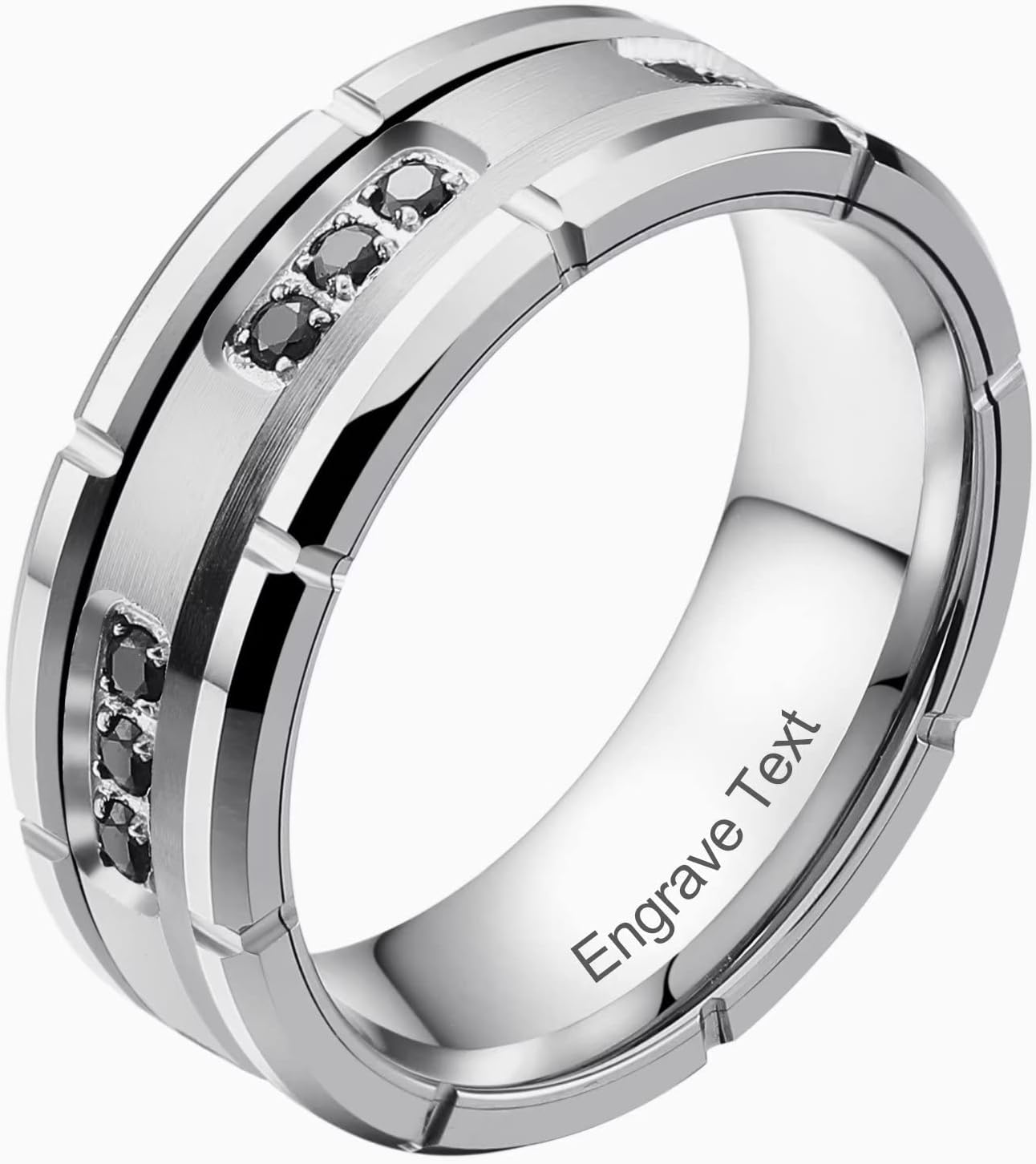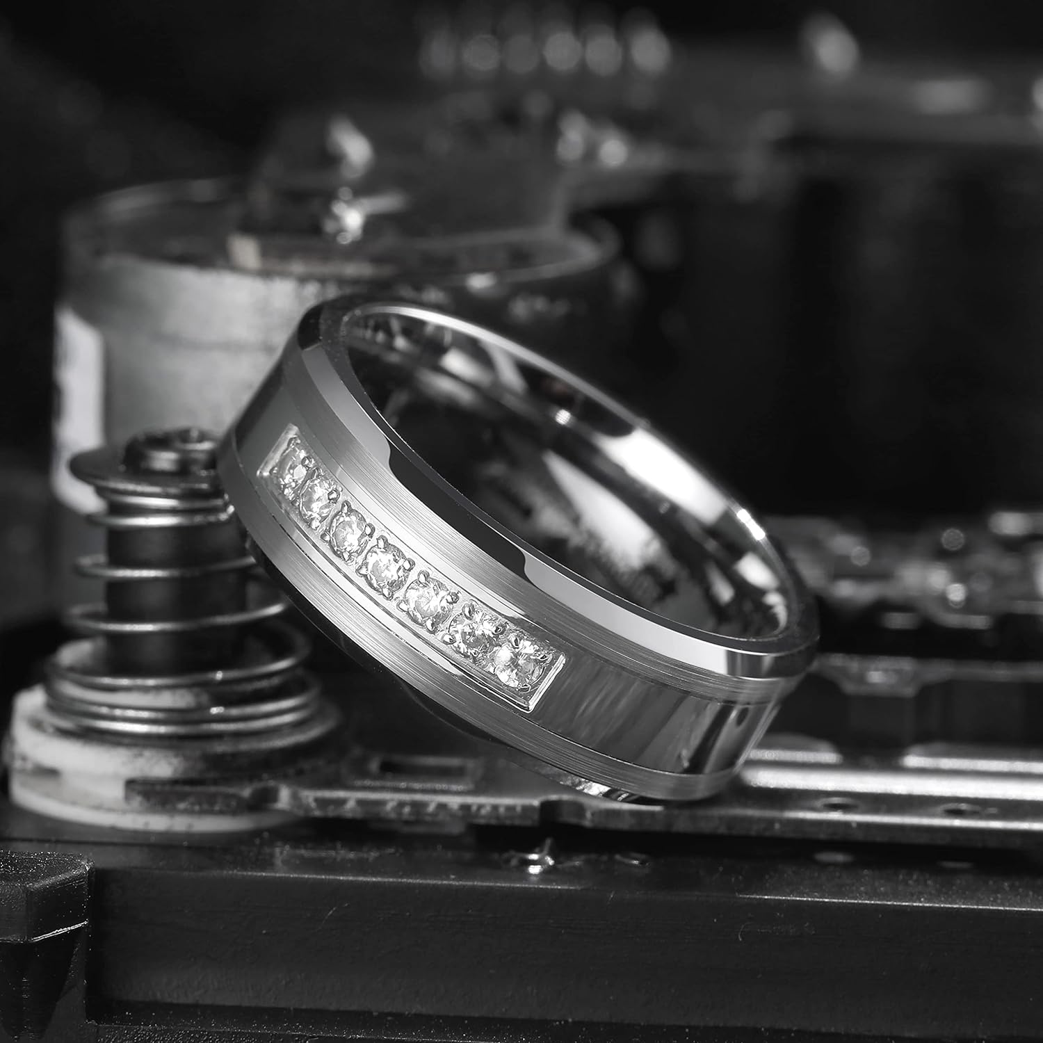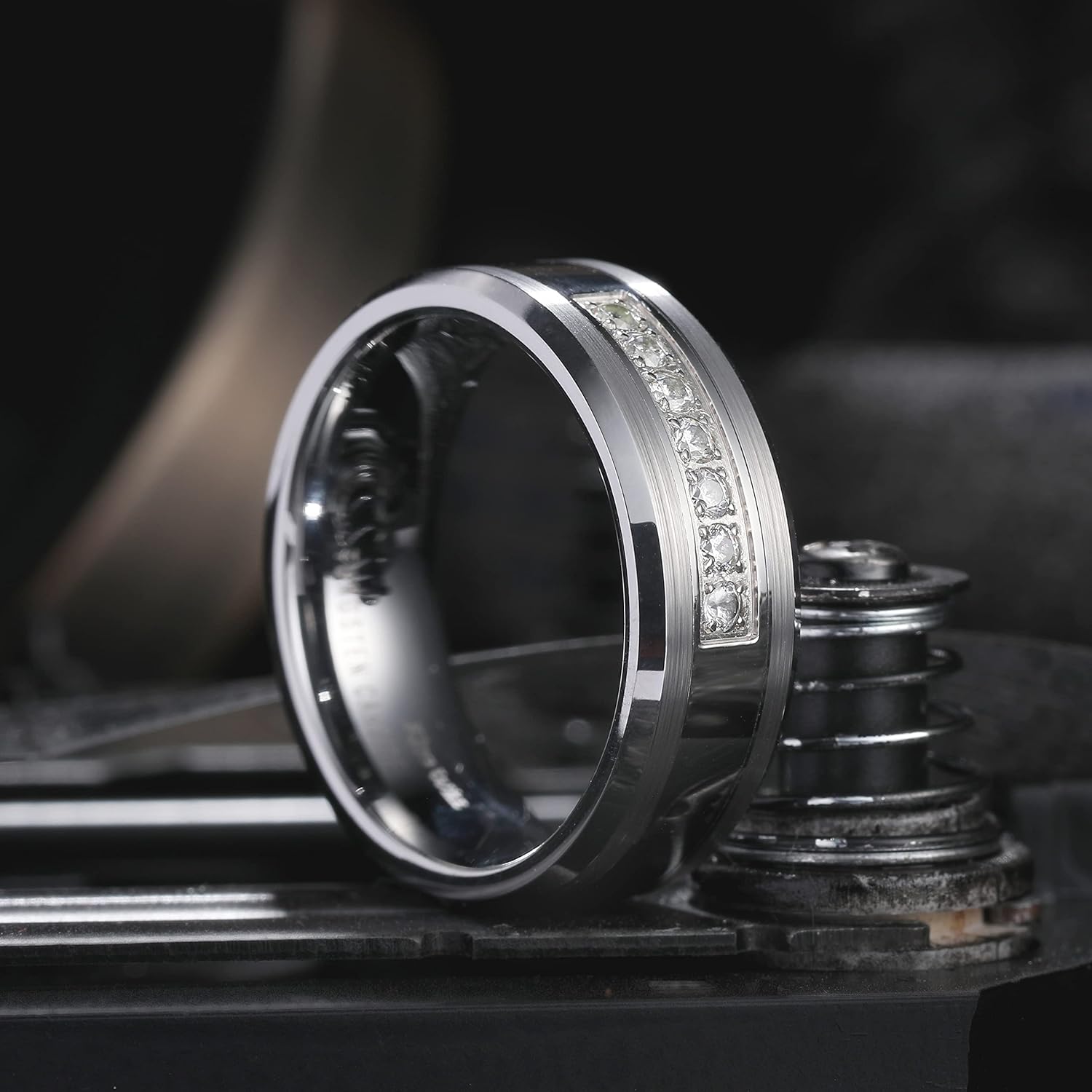 King Will GEM Custom Engraving Mens 8mm Tungsten Carbide Ring Cubic Zircon Stones Engagement Wedding Promise Band for Women Men Personalized