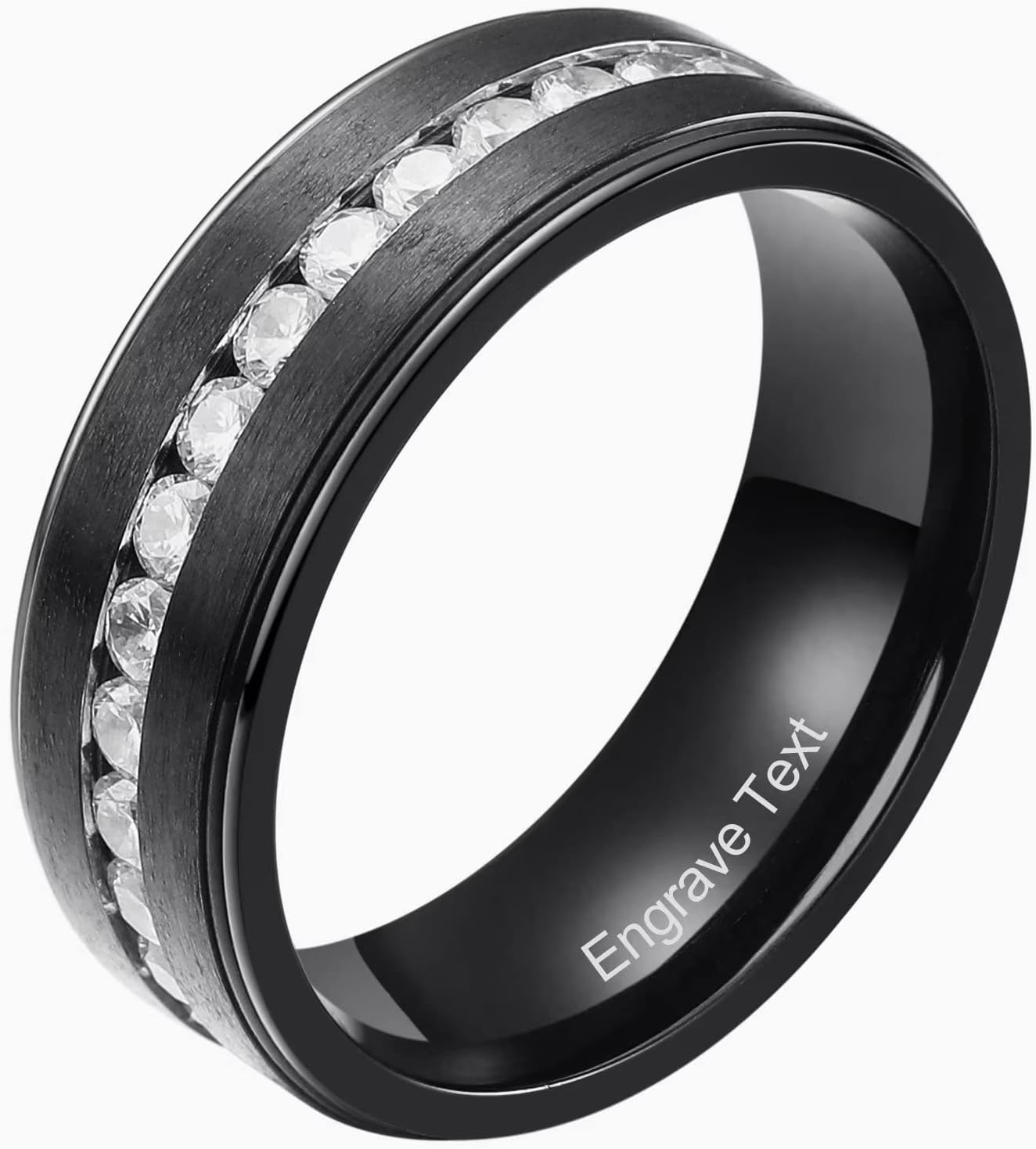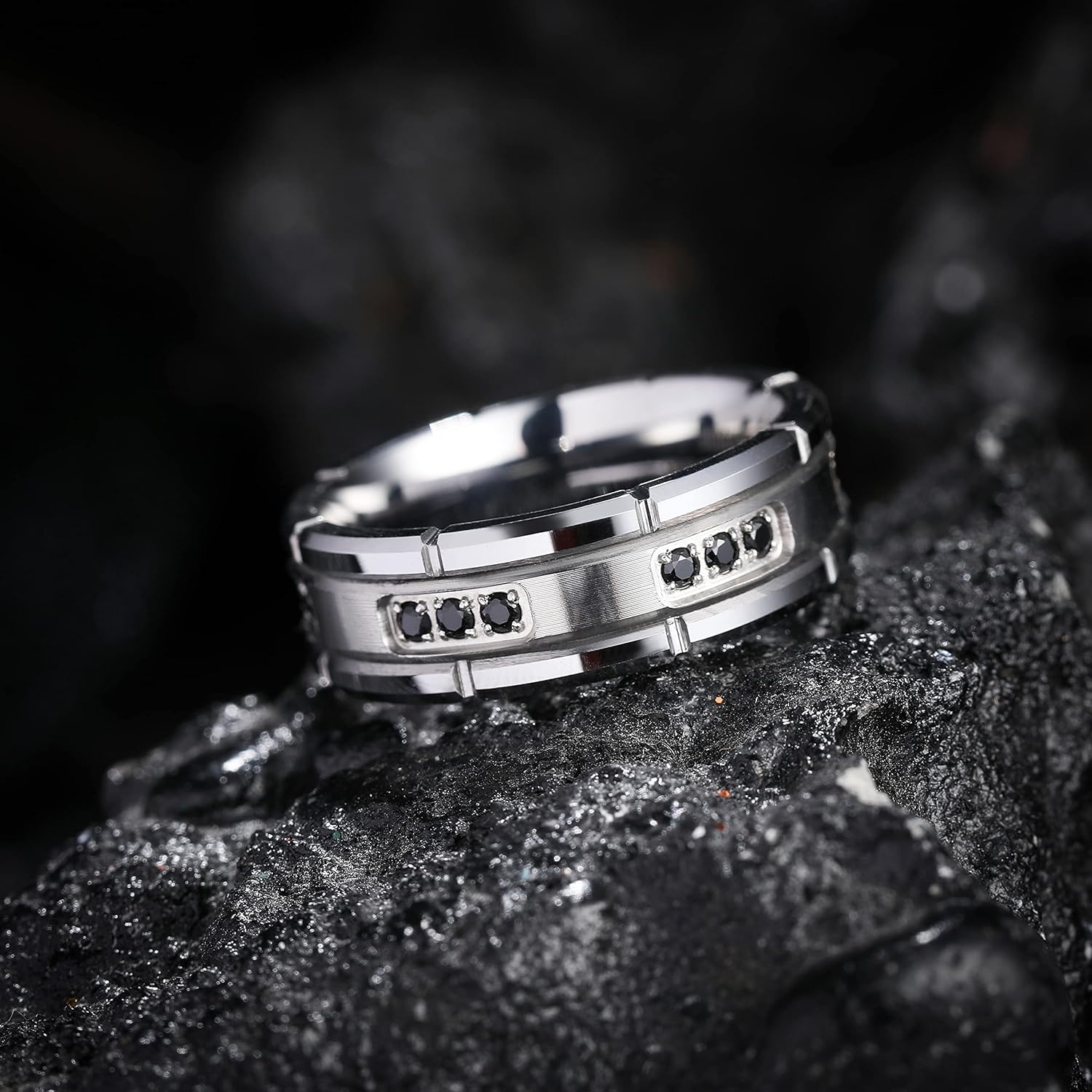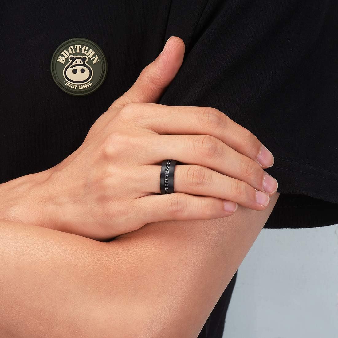 King Will GEM Custom Engraving Mens 8mm Tungsten Carbide Ring Cubic Zircon Stones Engagement Wedding Promise Band for Women Men Personalized