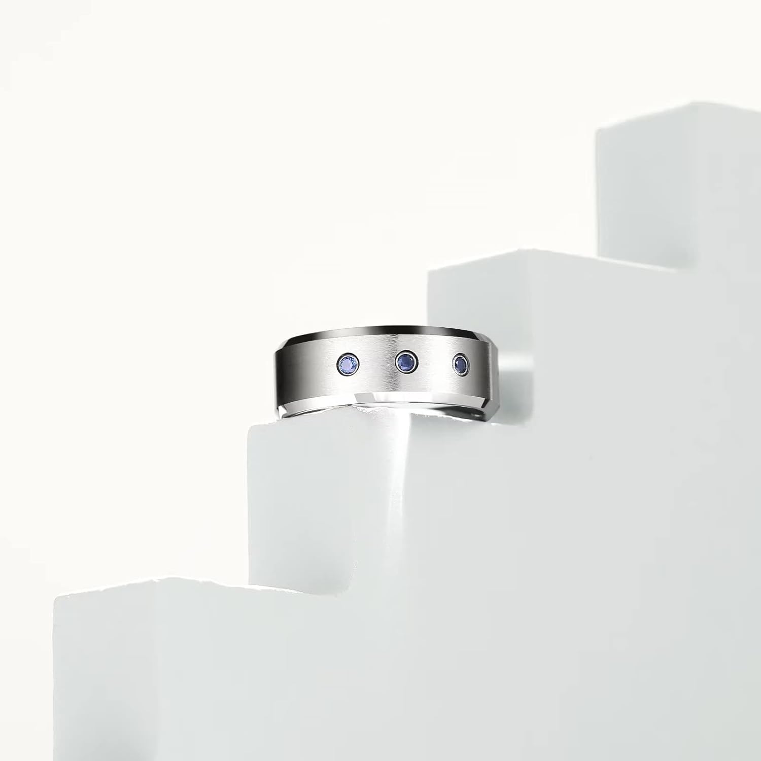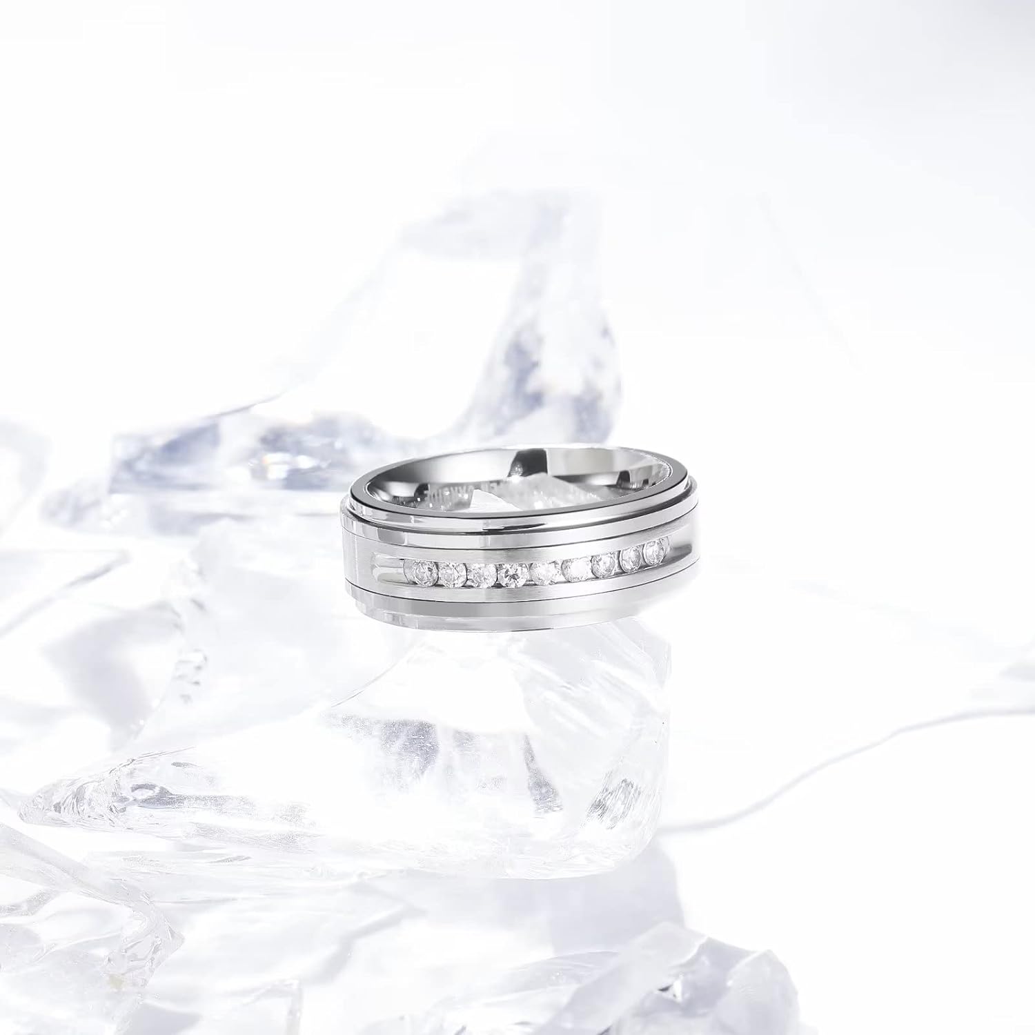 - 8mm tungsten carbide ring with 7 cubic zirconia