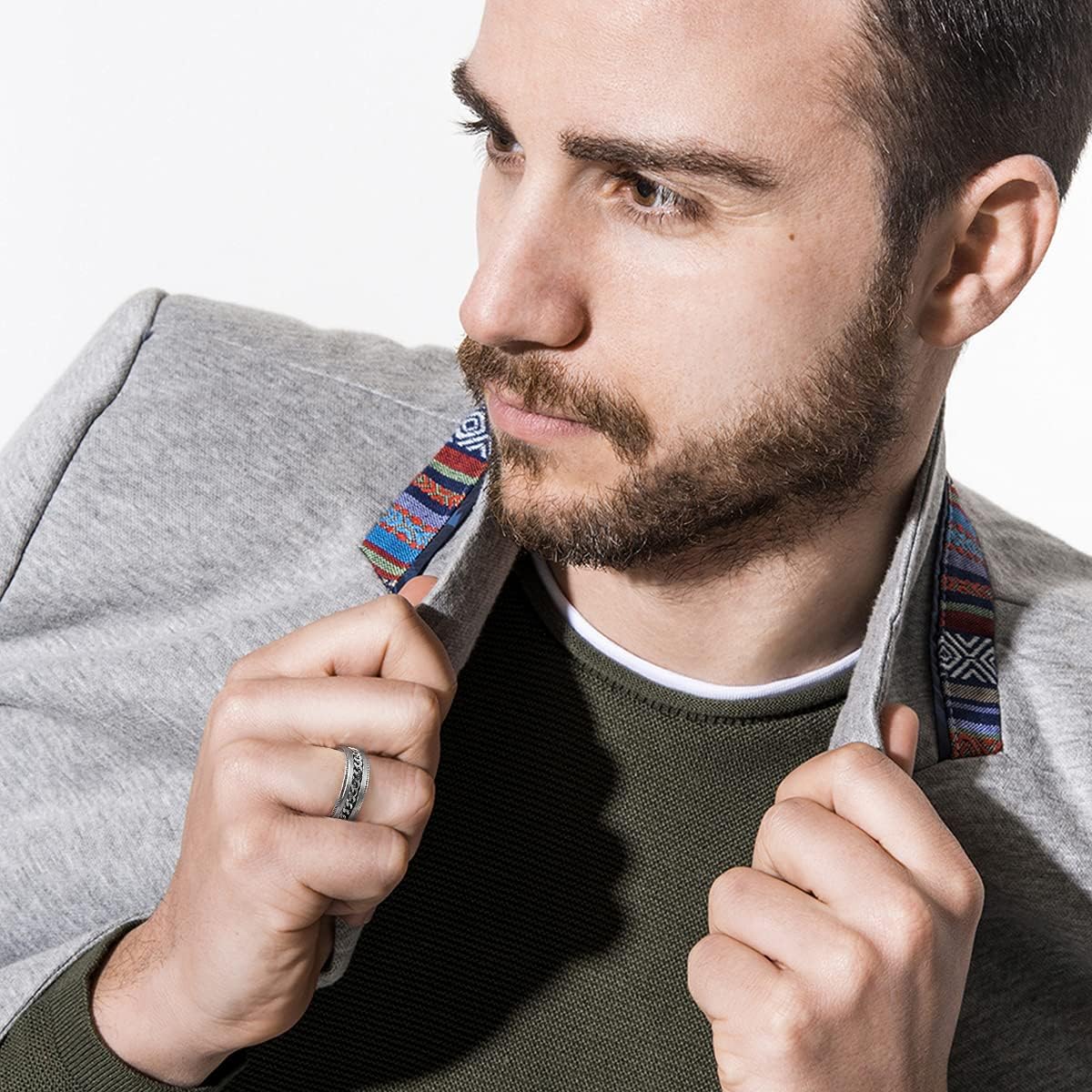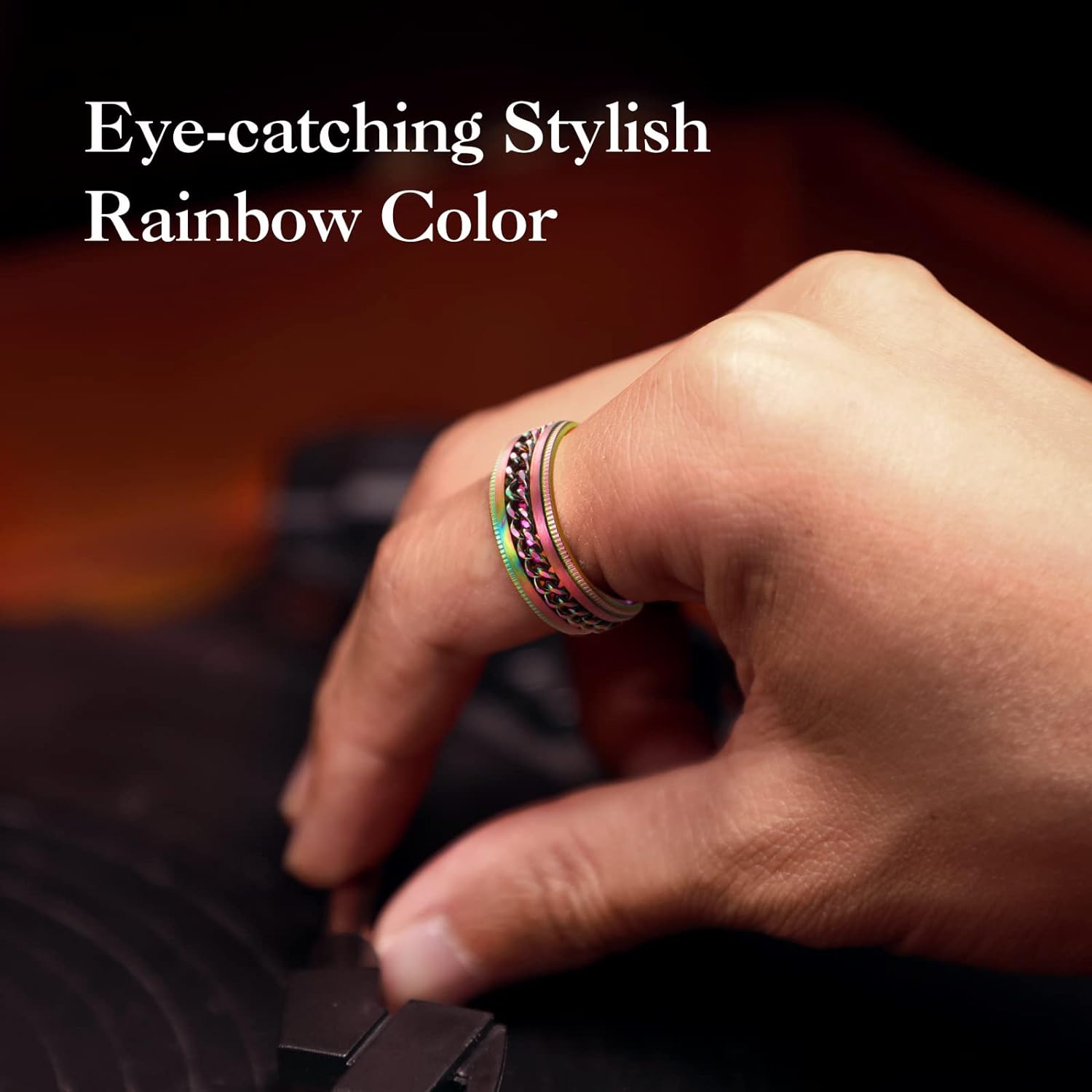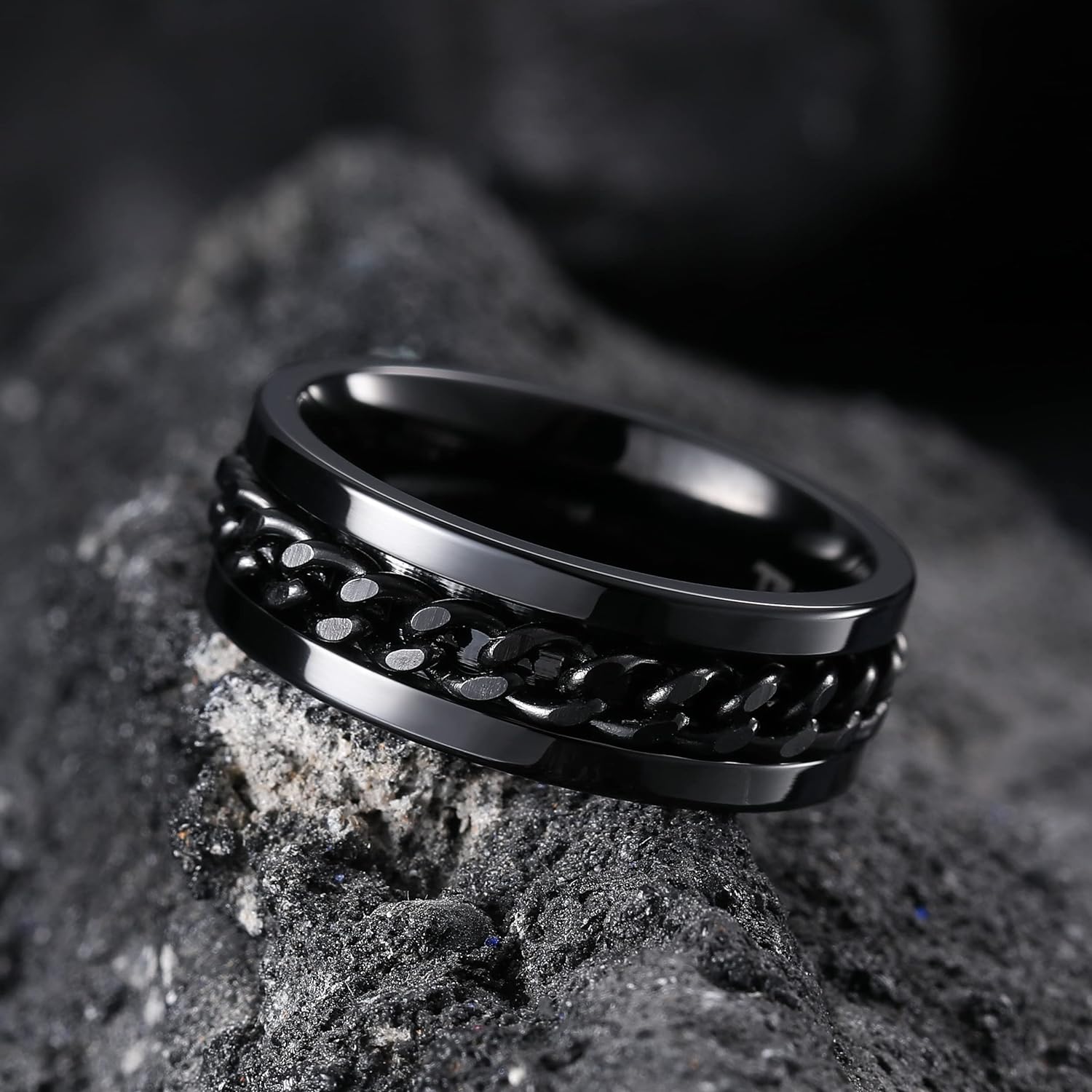 - ✔️COOL DESIGN: Spinner Ring Fidget Anxiety Ring for Men with Curb Chain Inlay