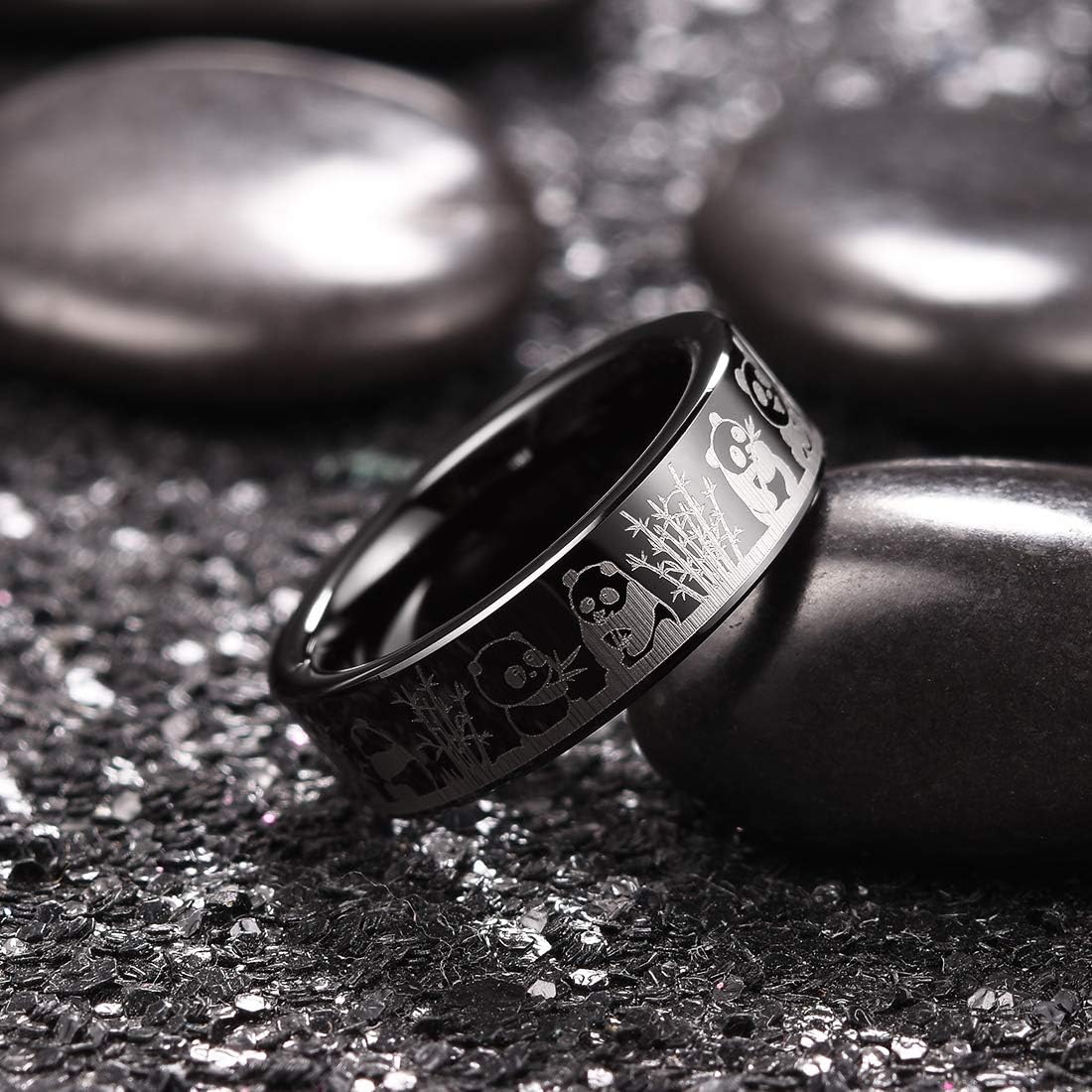King Will Mens 6mm 8mm Black Silver Tungsten Carbide Wedding Ring Inlaid Lasered Seagull/Forest Landscap/Panda/Deer/Hunting/Fly Fishing Brushed Wedding Rings for Men Women