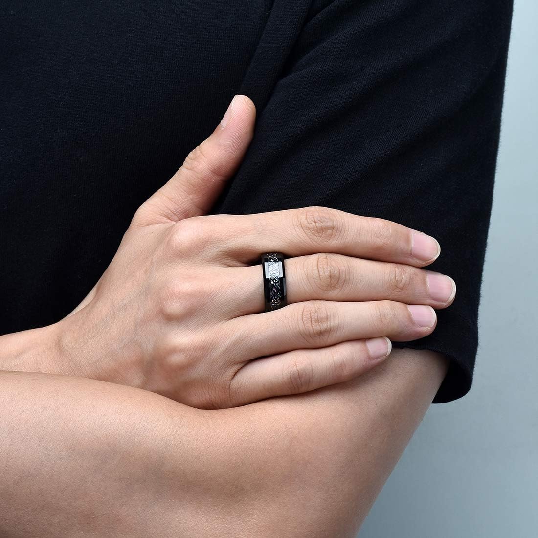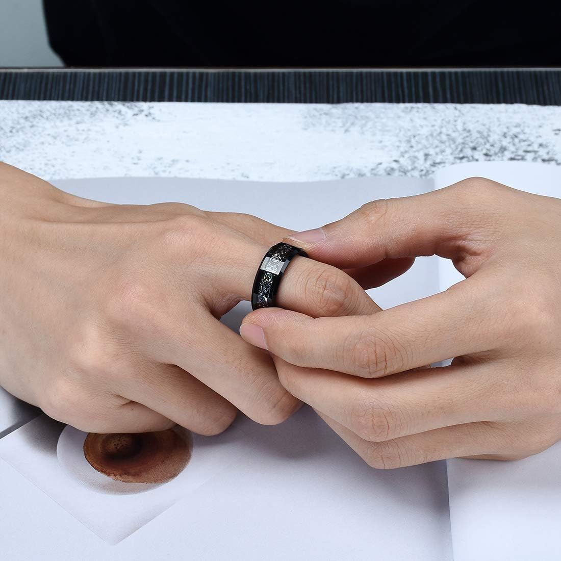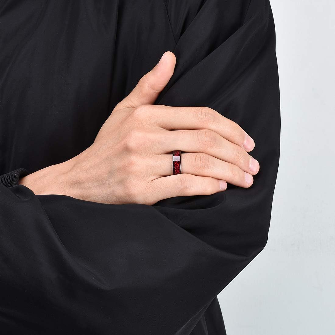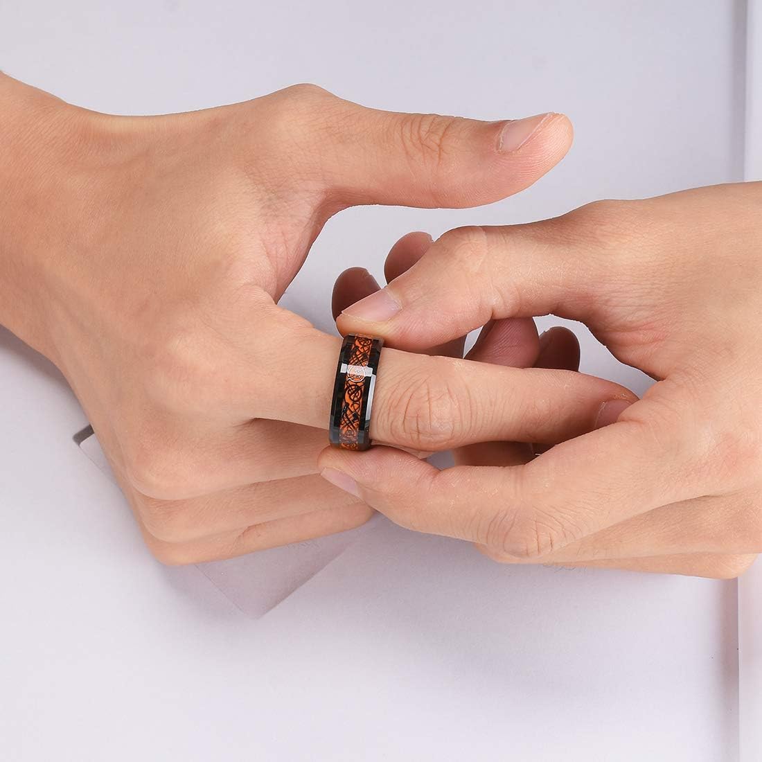 - ✔️CLASSIC DESIGN: Unique black celtic dragons with red background inlay, which is an 8mm extraordinary wedding ring.