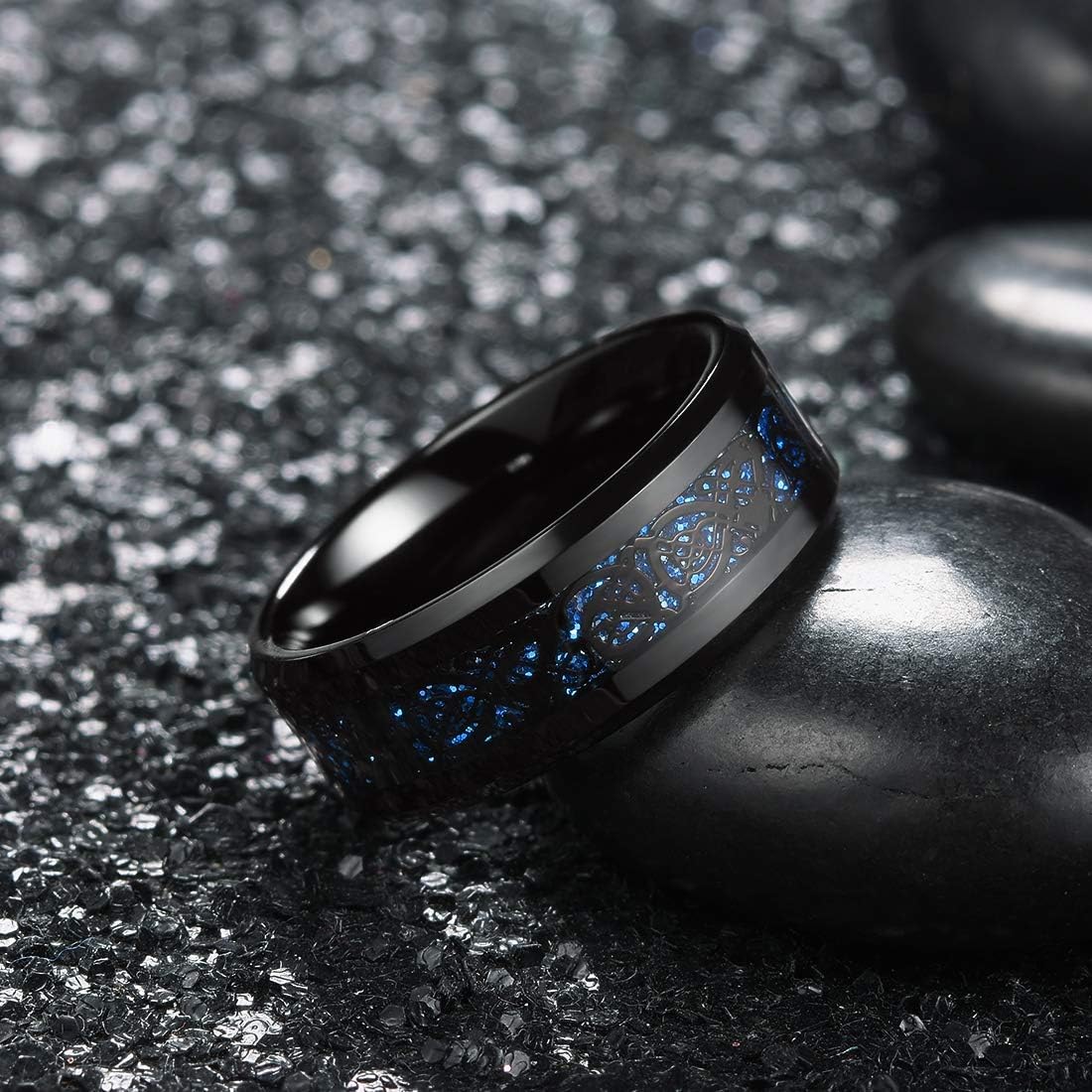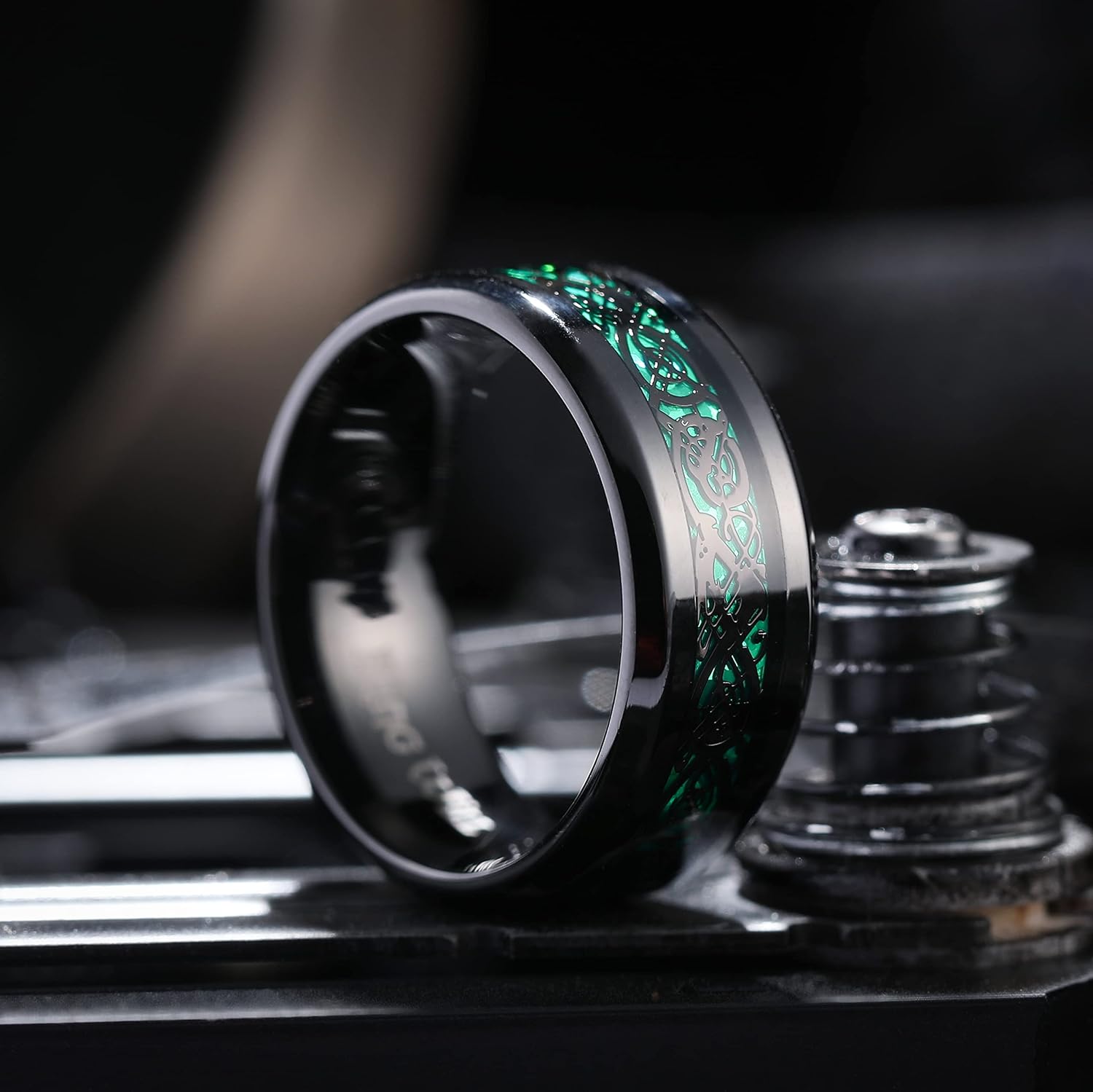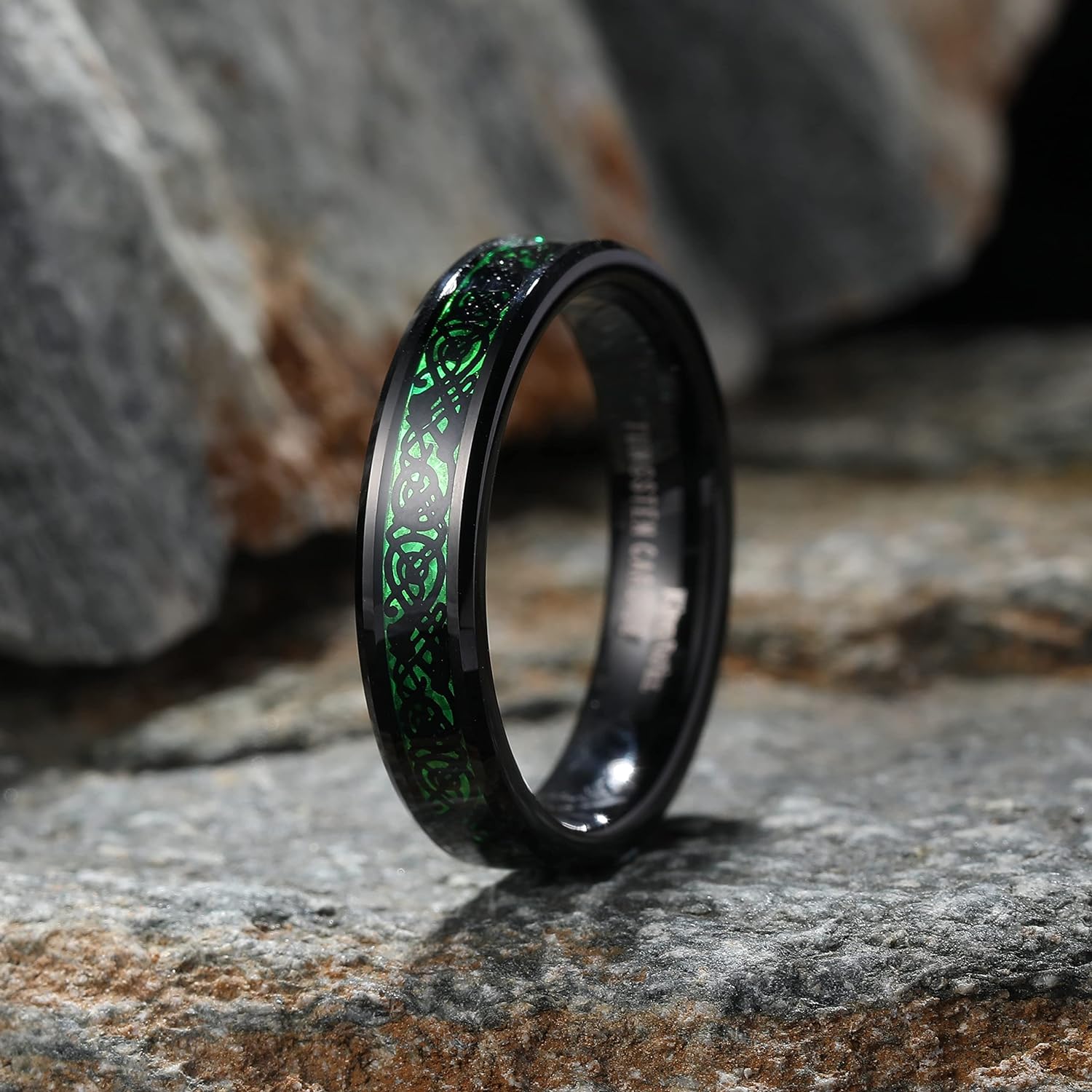 King Will Men's 8mm Green/Red/Blue/Purple Carbon Fiber Black Celtic Dragon Tungsten Carbide Ring Comfort Fit