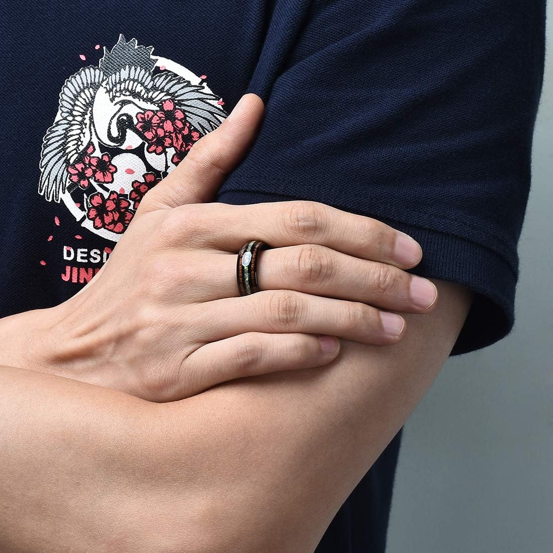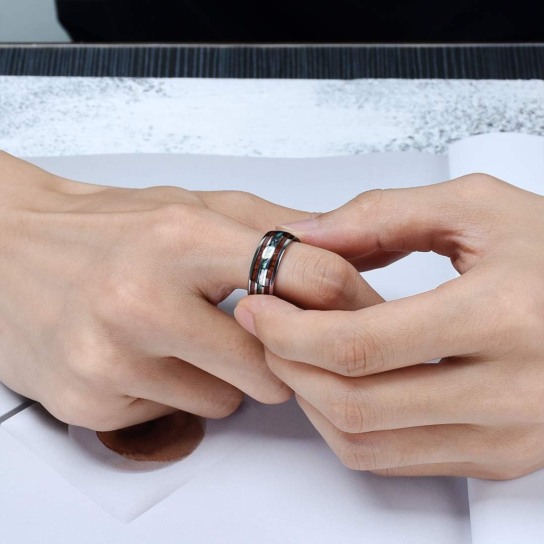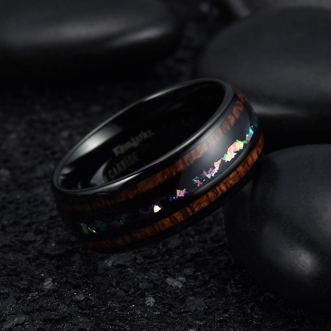 King Will Nature 8mm Turquoise Tungsten Carbide Wedding Ring Abalone Shell Opal Inlaid Real Wood Engagement Band for Men