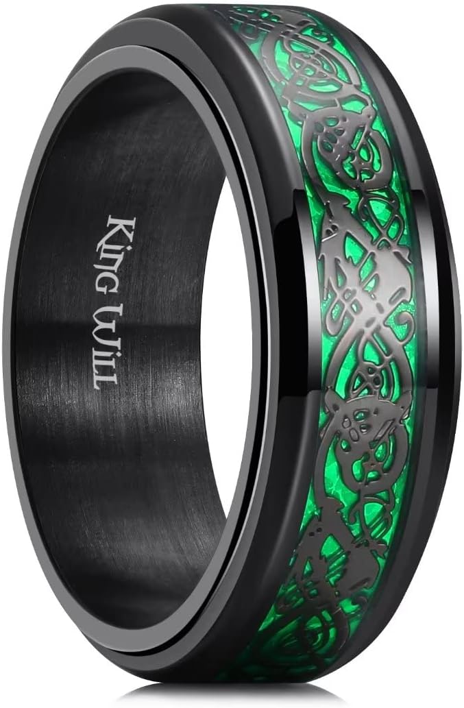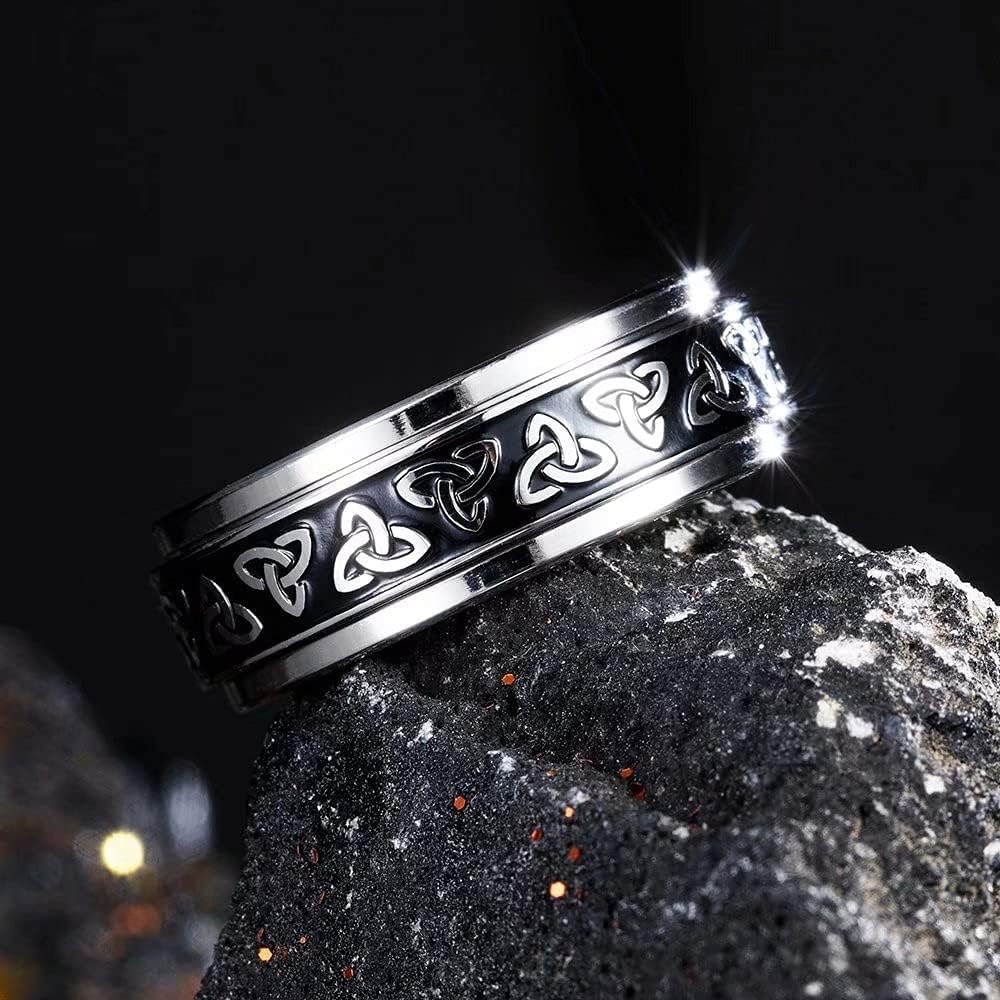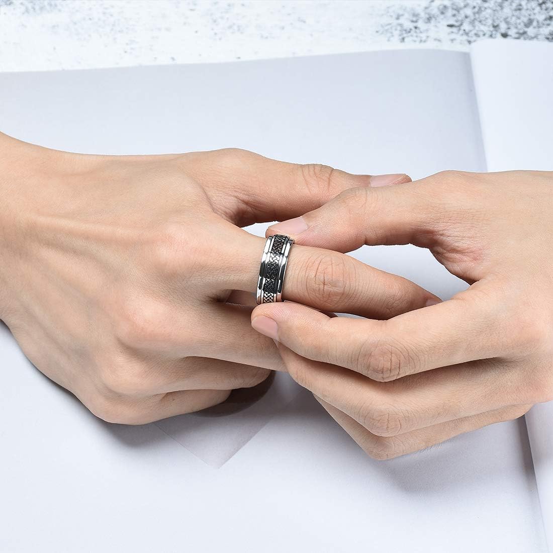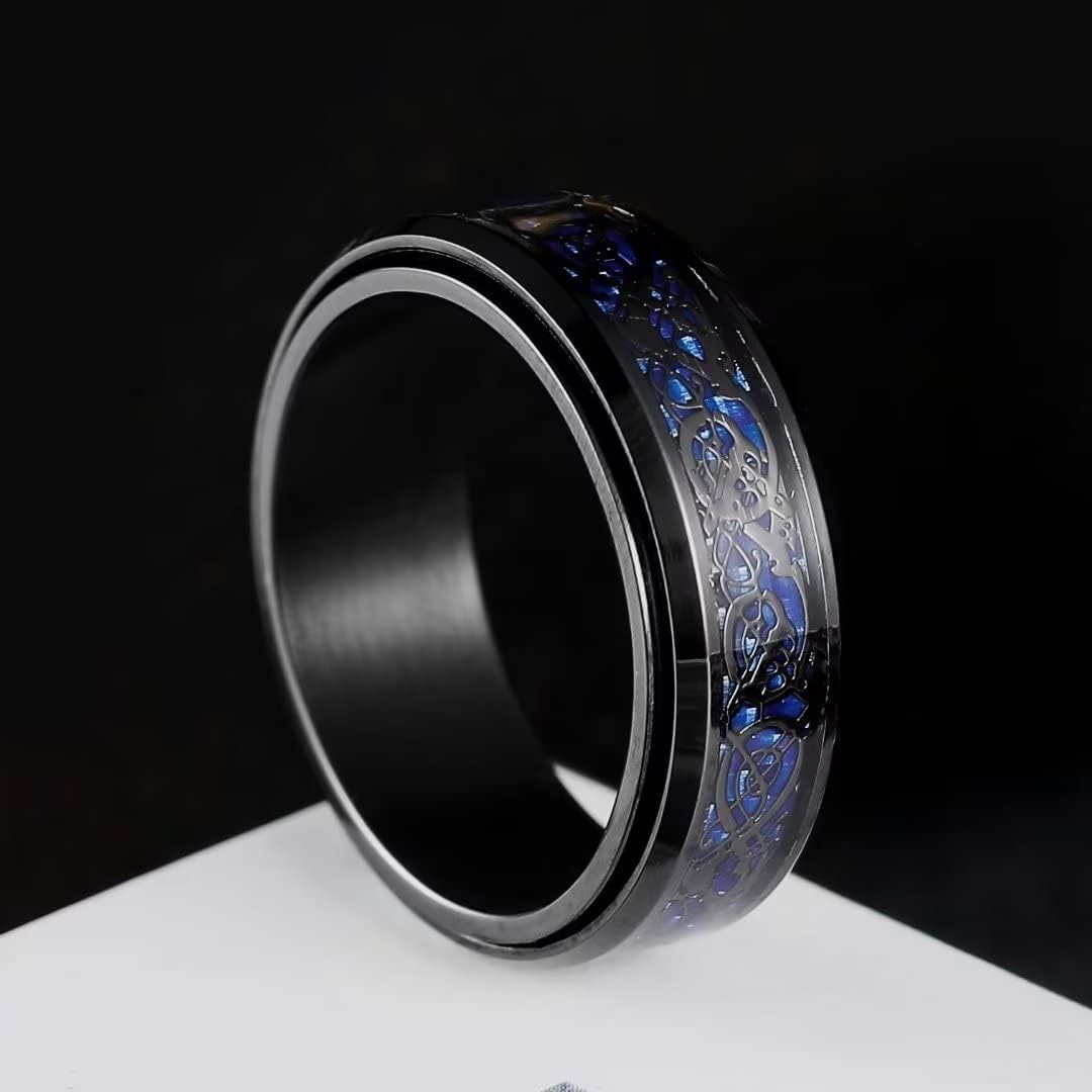 - ✔️FASHION DESIGN: Black Celtic Dragon Purple Carbon Fiber Inlay Spinner Stainless Steel Ring Anxiety Fidget Ring, endless love relieves anxiety.