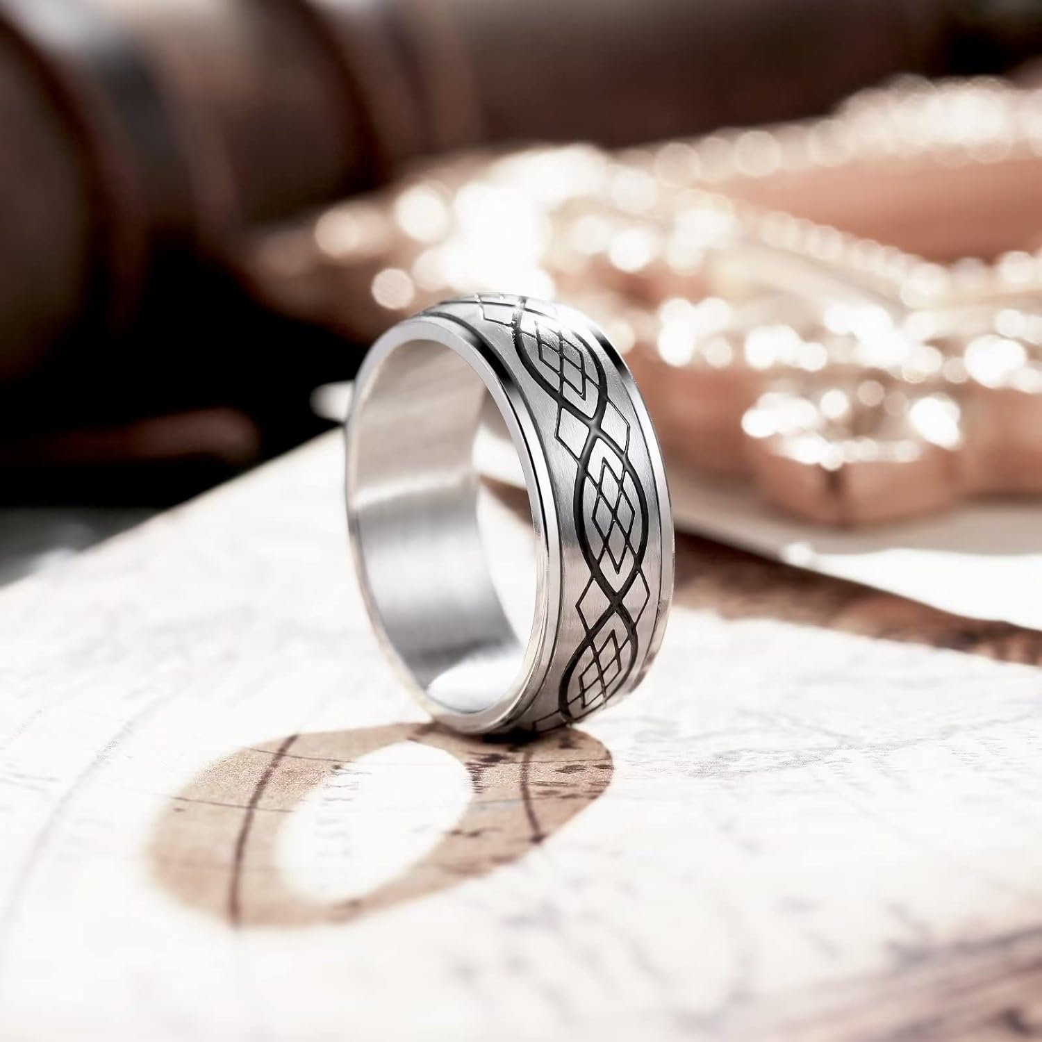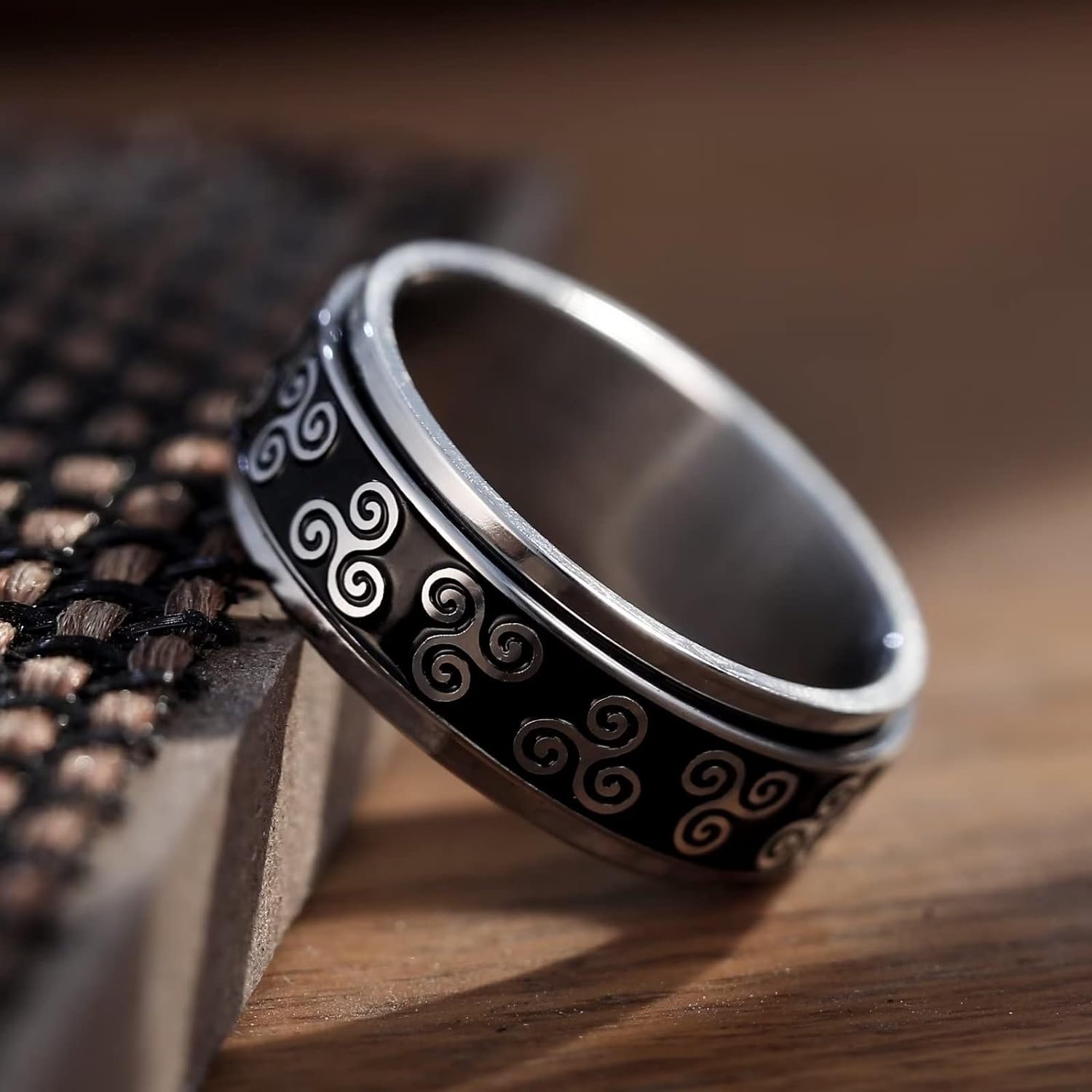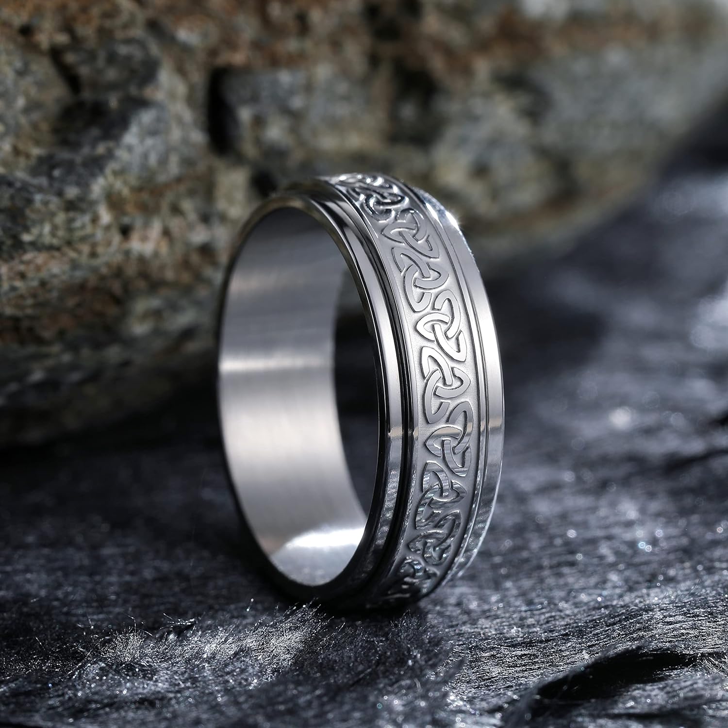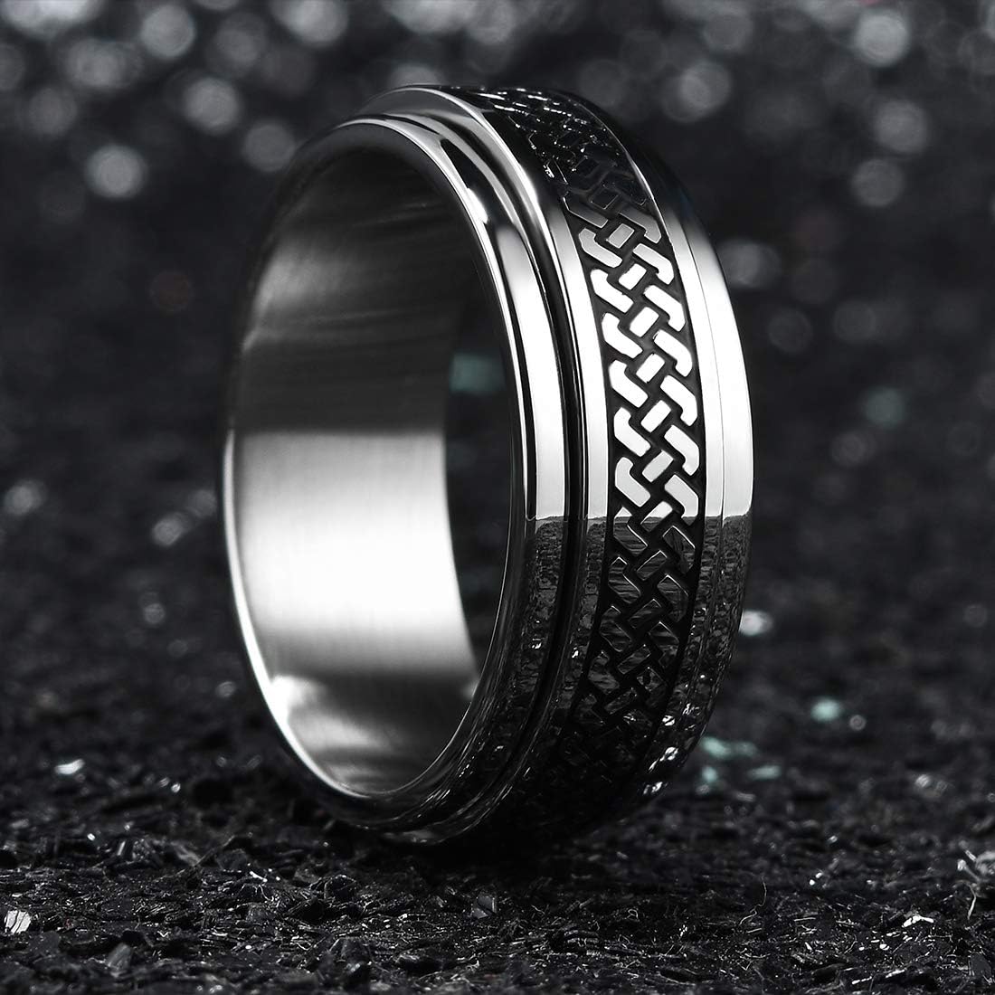 - ✔️FASHION DESIGN: Black Celtic Dragon Purple Carbon Fiber Inlay Spinner Stainless Steel Ring Anxiety Fidget Ring, endless love relieves anxiety.