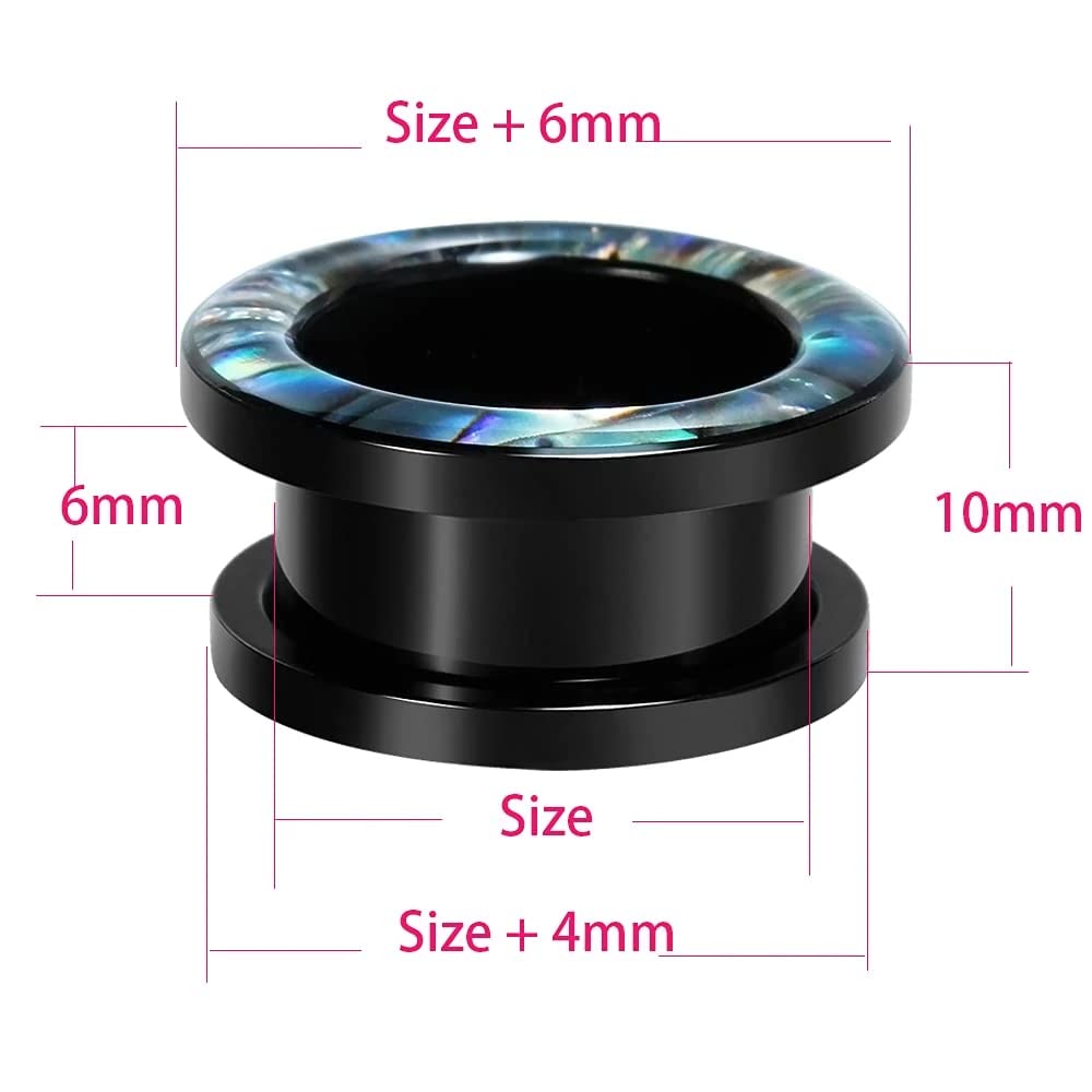 - The size for this ear gauge:2g(6mm), 0g(8mm), 00g(10mm), 1/2"(12mm), 9/16"(14mm), 5/8"(16mm), 3/4"(19mm), 7/8"(22mm), 1 inch(25mm), may one size will fit your ear lobe.
