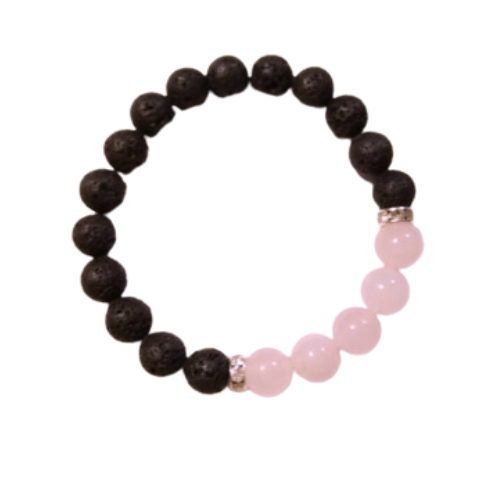 Lava Rocks With Pink Quartz Bracelet