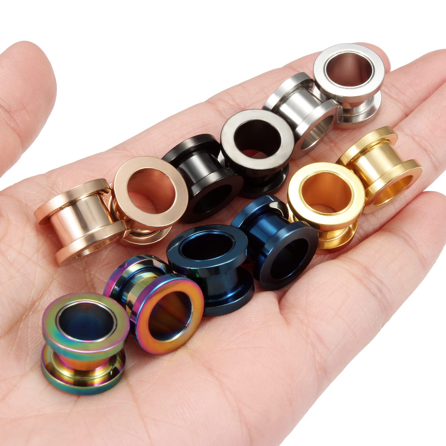 Lcolyoli Screw Fit Ear Gauges Kit Surgical Steel Tunnel Expander Earrings Earlobe Plugs Body Piercing Jewelry Set for Women Men 14G-00G 12 Pieces