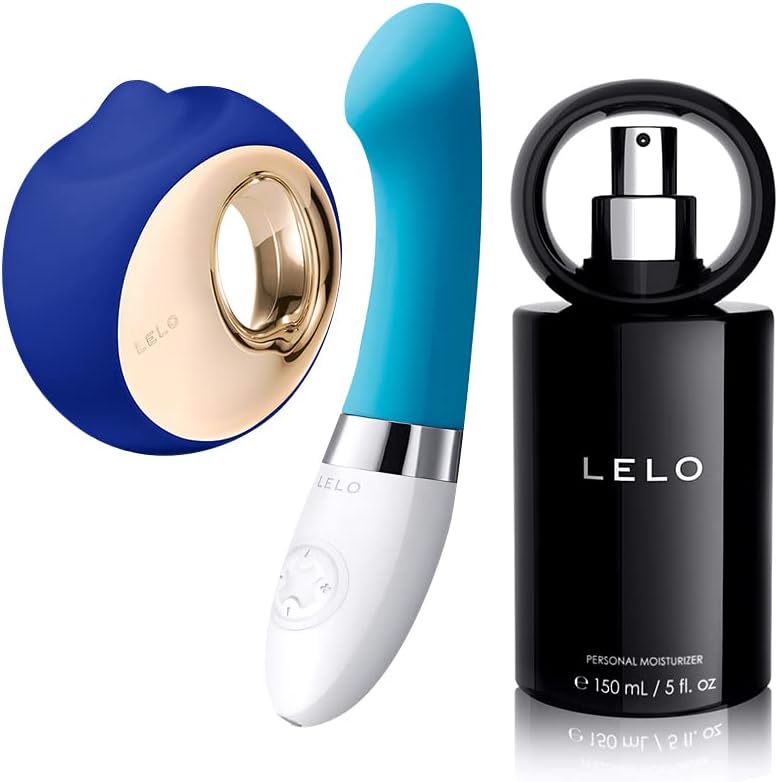 LELO Bundle: ORA 3 Midnight Blue Oral Sex Stimulator + Gigi 2 Turquoise Blue G Spot Vibrator + Free LELO Personal Moisturizer