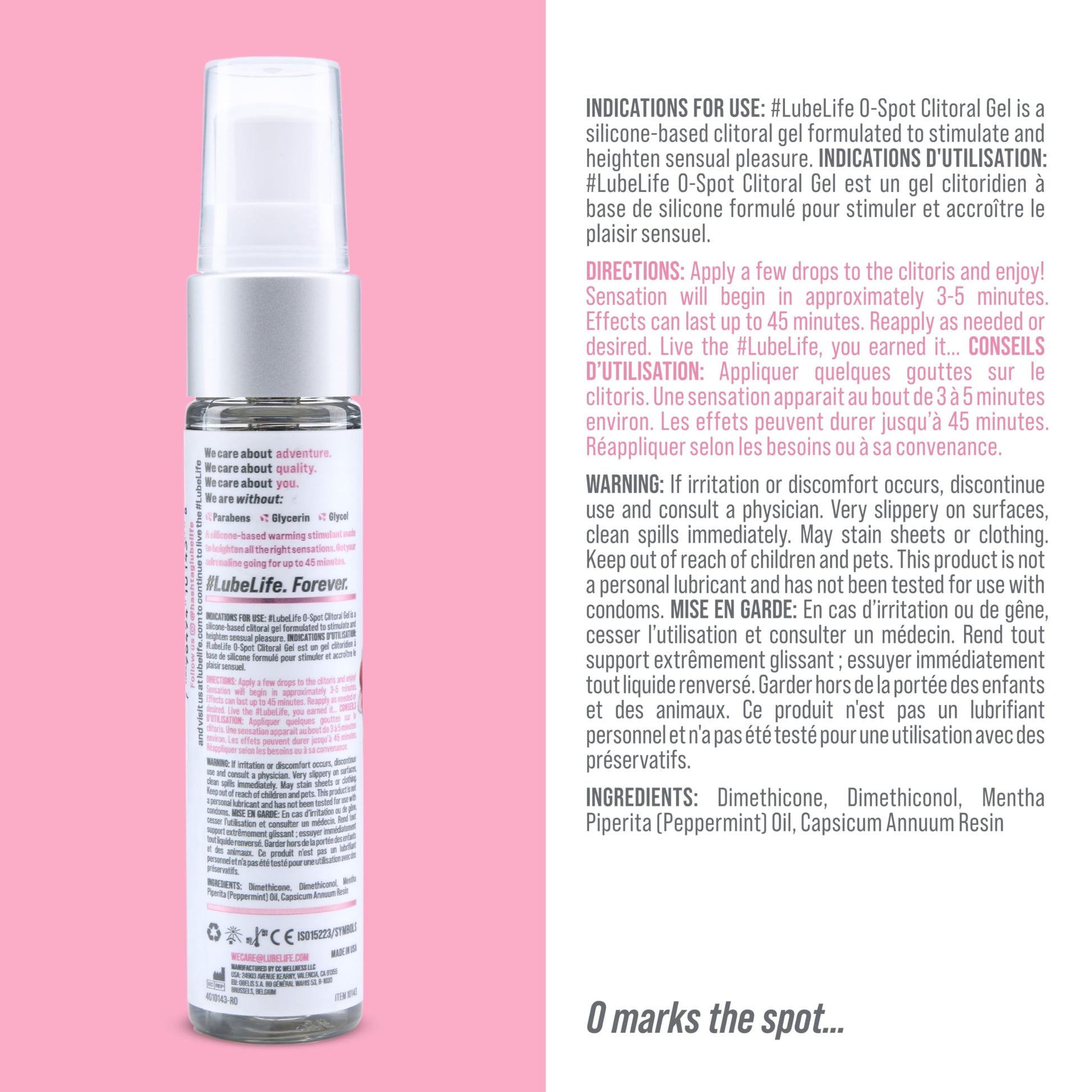 - O MARKS THE SPOT!: With a turn of your key, unlock your pleasure chest with #LubeLife O-Spot Clitoral Gel. A silicone-based warming stimulant, made to heighten all the right sensations and get your adrenaline going for up to 45 minutes.
