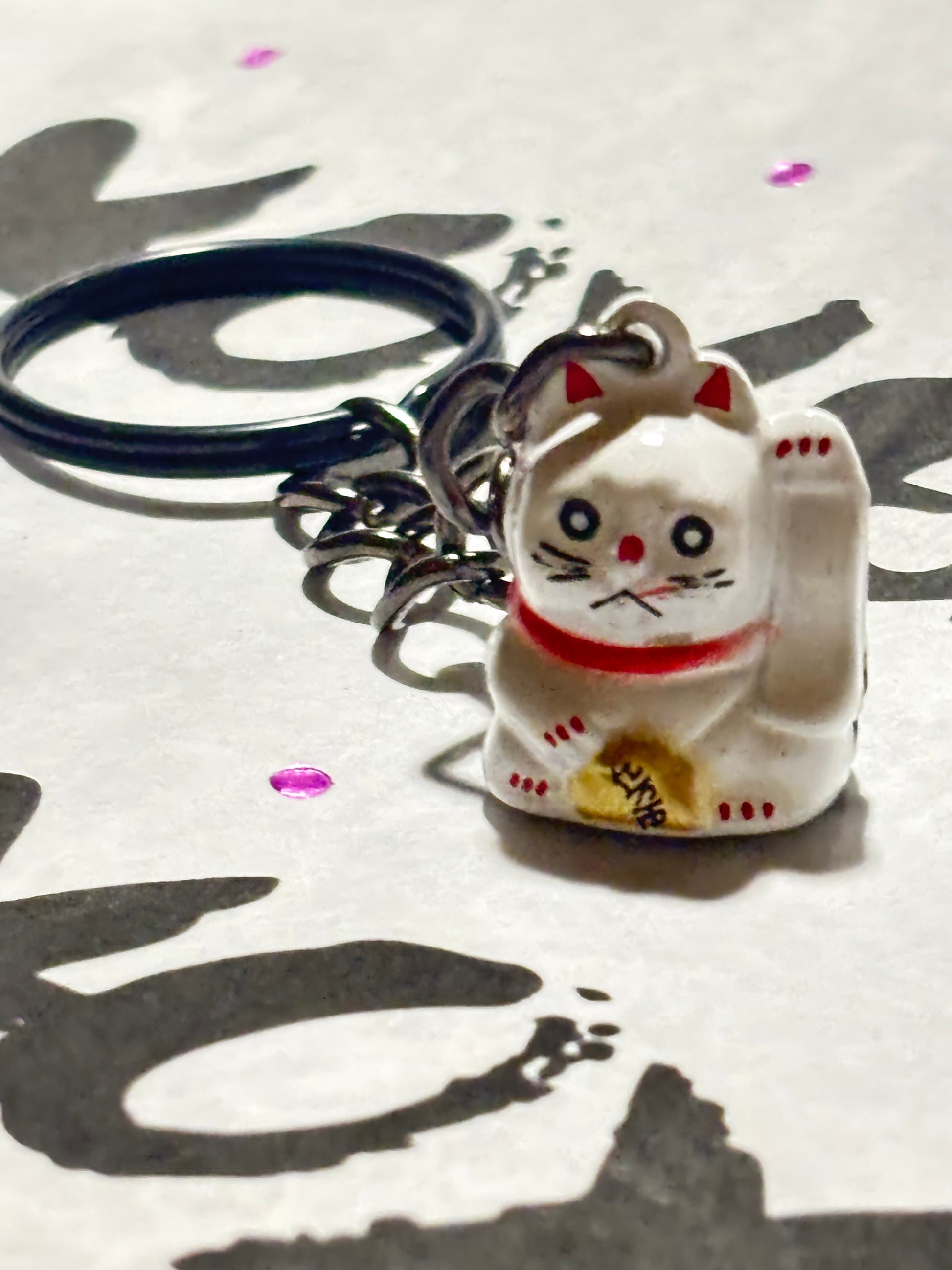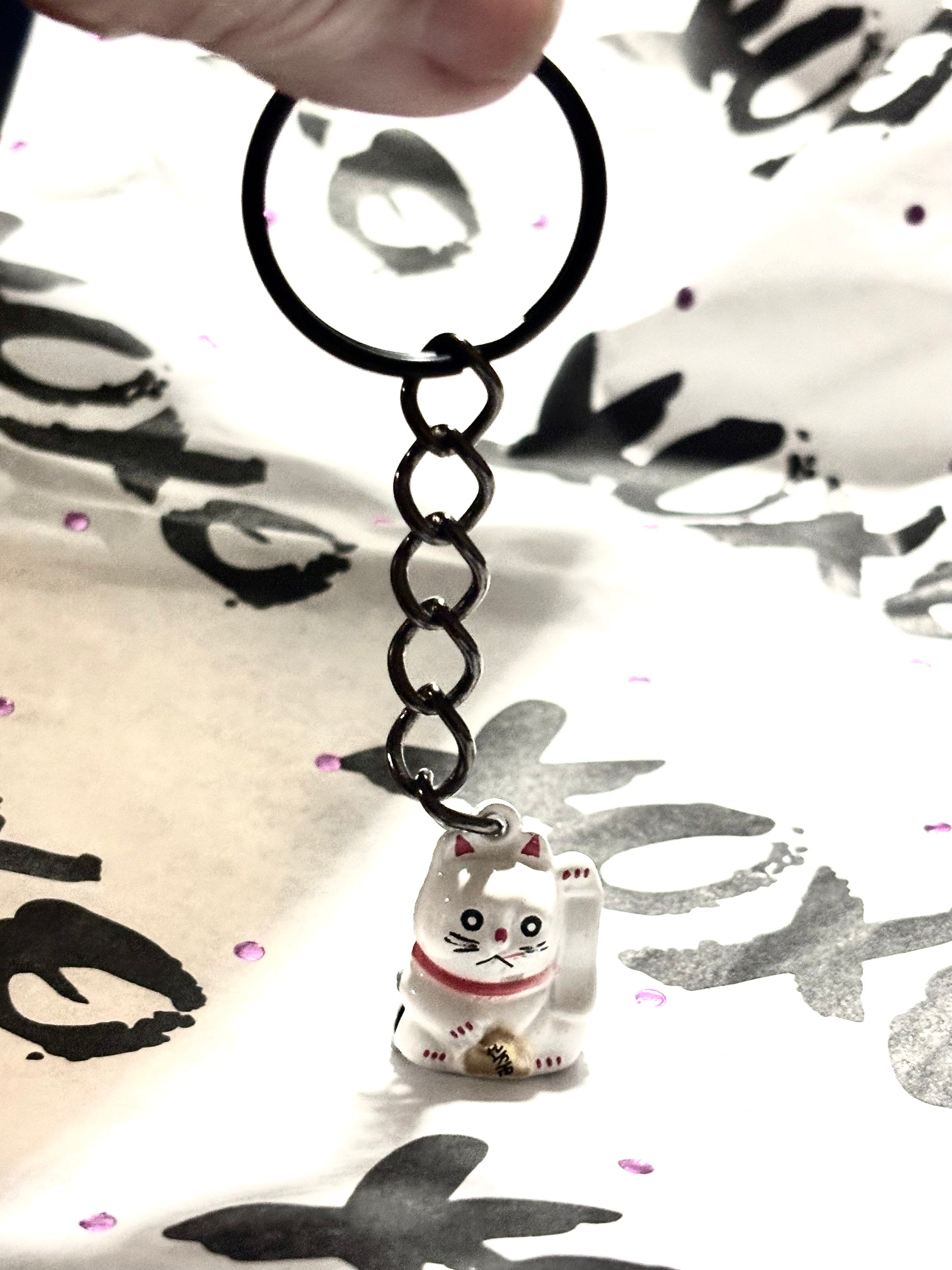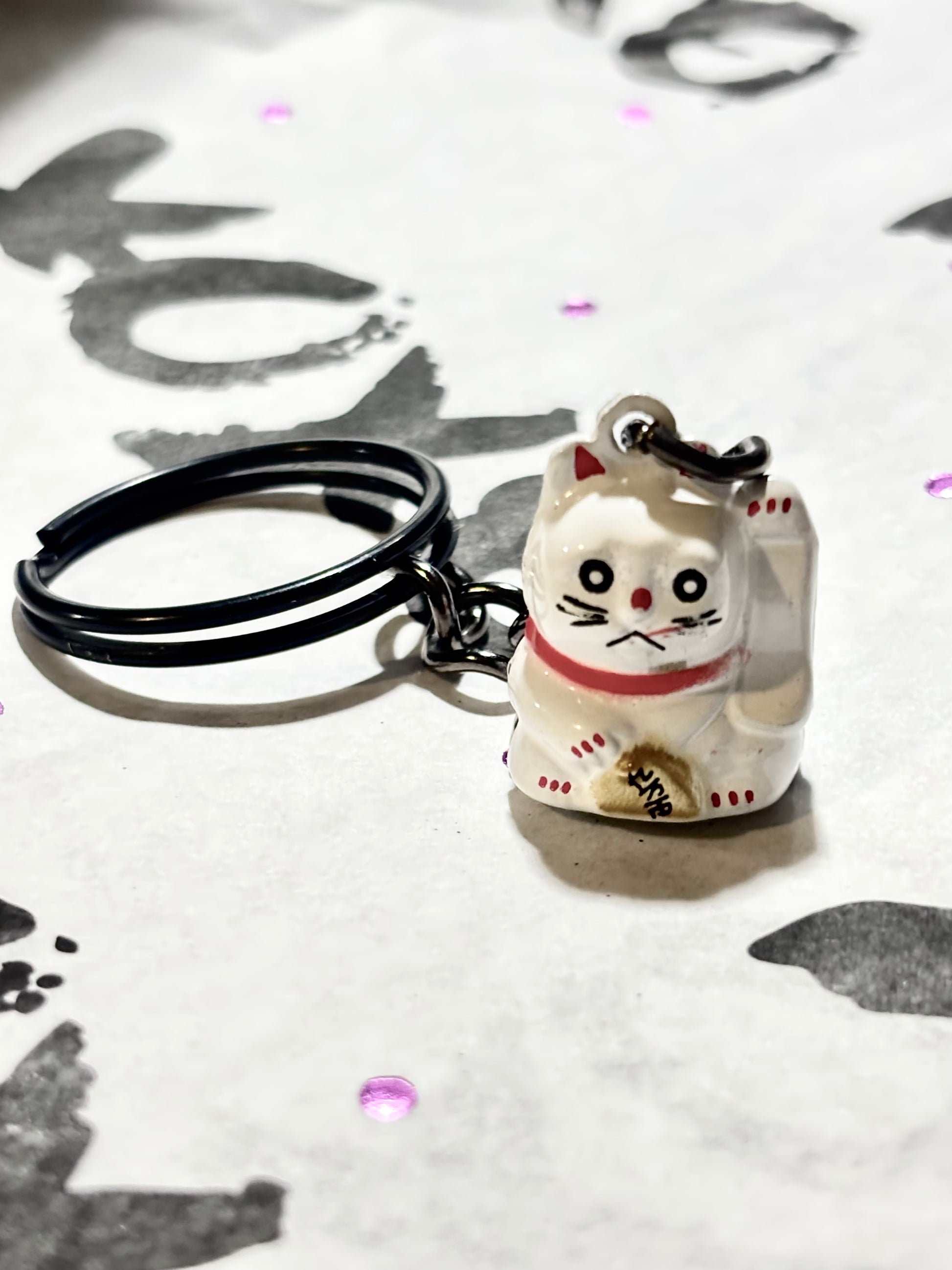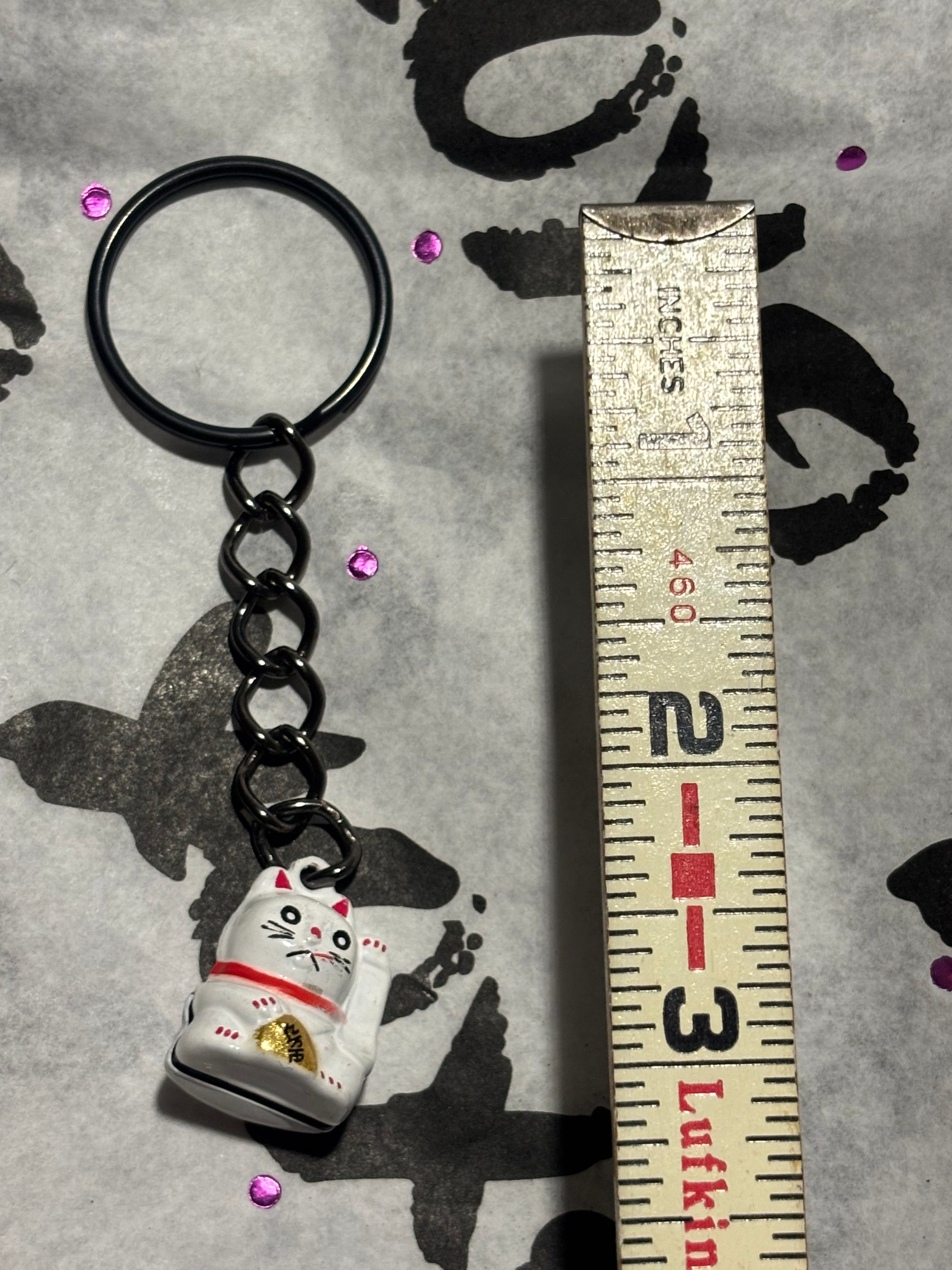 White Color Maneki Neko Lucky Cat Key Chain, 2.5”