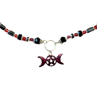 Newly designed for our Alternative Magical & Mystical Collection, this Discreet Daytime Crystal Beaded Pentagram Captive Choker is a limited edition piece exclusively from Newly designed for our Alternative Magical & Mystical Collection, this Discreet Daytime Crystal Beaded Pentagram Captive Choker is a limited edition piece exclusively from Shopatluxe. Handcrafted from teal crystal beads and sterling silver findings, this choker sports a stainless steel pendant, suspended from a matching silver O ring, held captive by two equal hand beaded strands. Features 8mm teal faceted crystals for a luxurious look and feel. 22 inches of intricately woven chain; lobster claw closure. Lead and nickel free. Perfect as a playtime gift for yourself, or to give as a spicy gift to someone else! Complimentary gift with purchase.