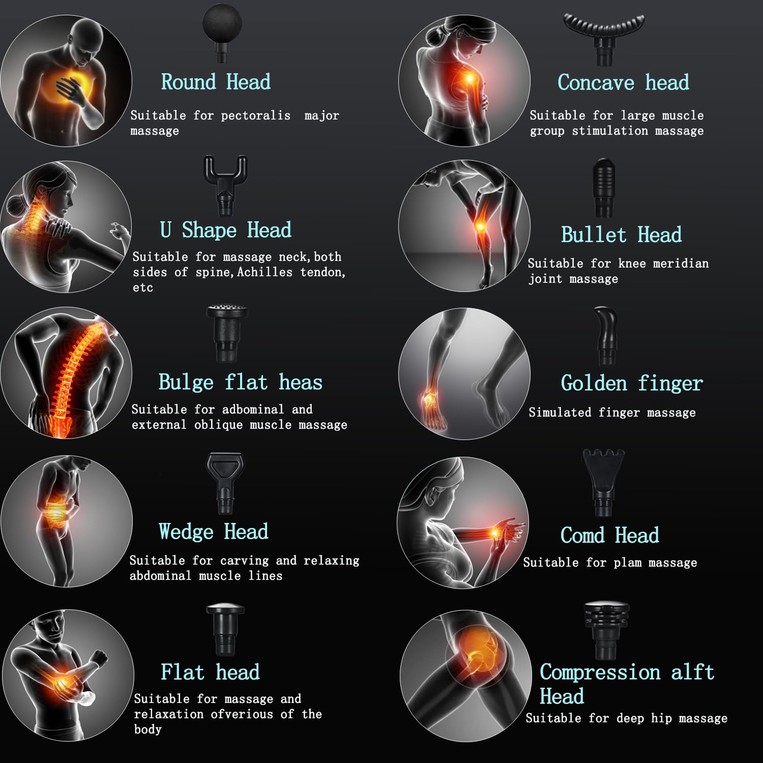 - [Applicable to a wide range of people] The massage gun can be a back massager/neck massage gun for sedentary office workers, or a deep muscle massage gun for athletes and bodybuilders!