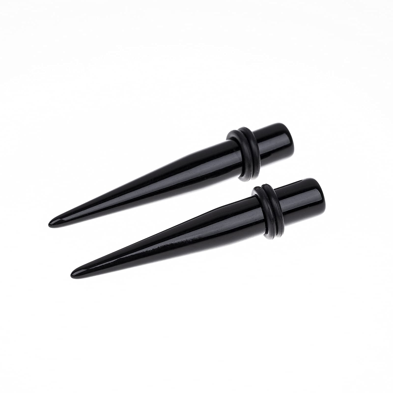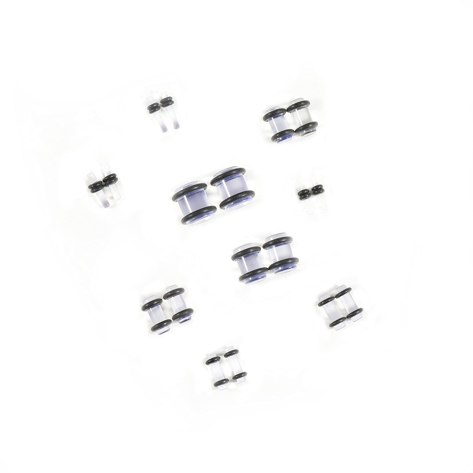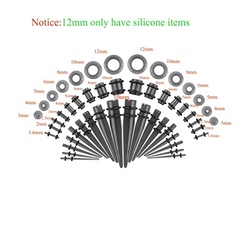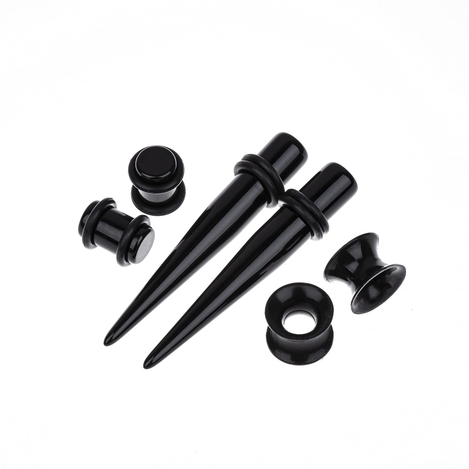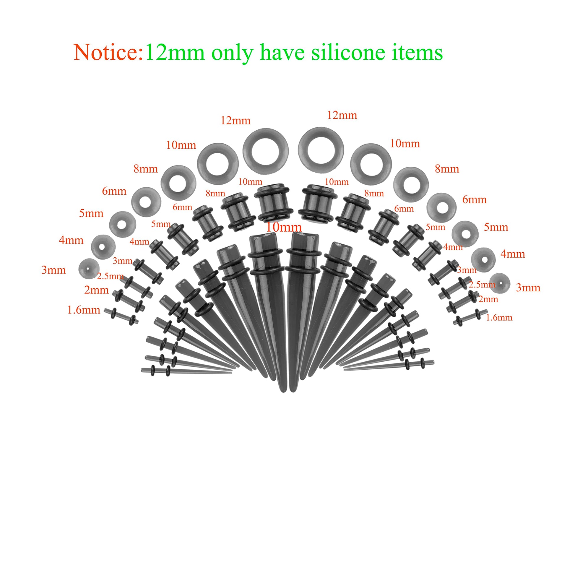 - 【SIZE AND COLORS】 - Acrylic plugs gauges and tapers for ears with double o-rings: 14G (1.6mm), 12G (2mm), 10G (2.4mm), 8G (3.2mm), 6G (4mm), 4G (5mm), 2G (6mm), 0G (8mm), 00G (10mm). Silicone gauges Tunnels: 8G, 6G, 4G, 2G, 0G, 00G, 12 mm. Black color gauges kit.