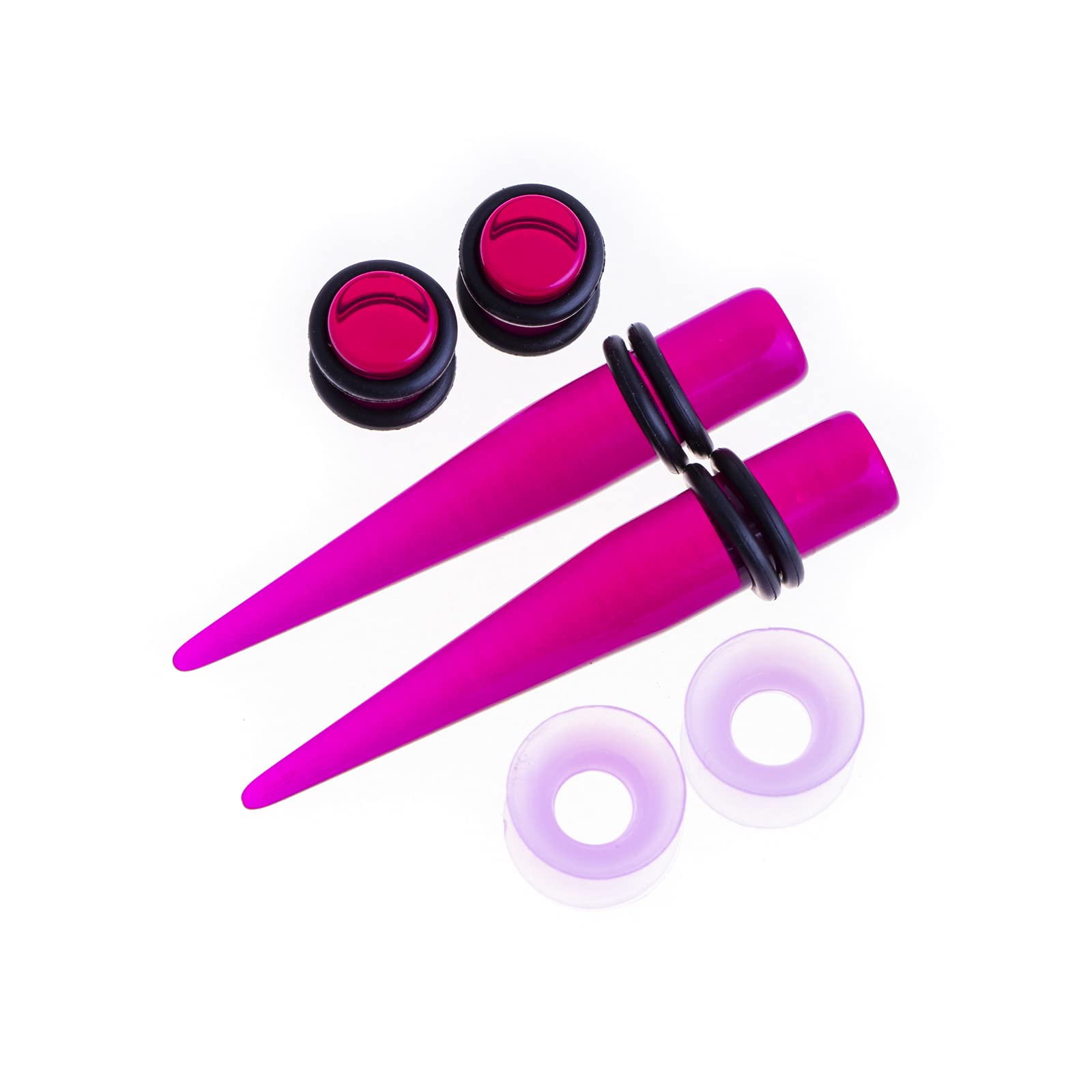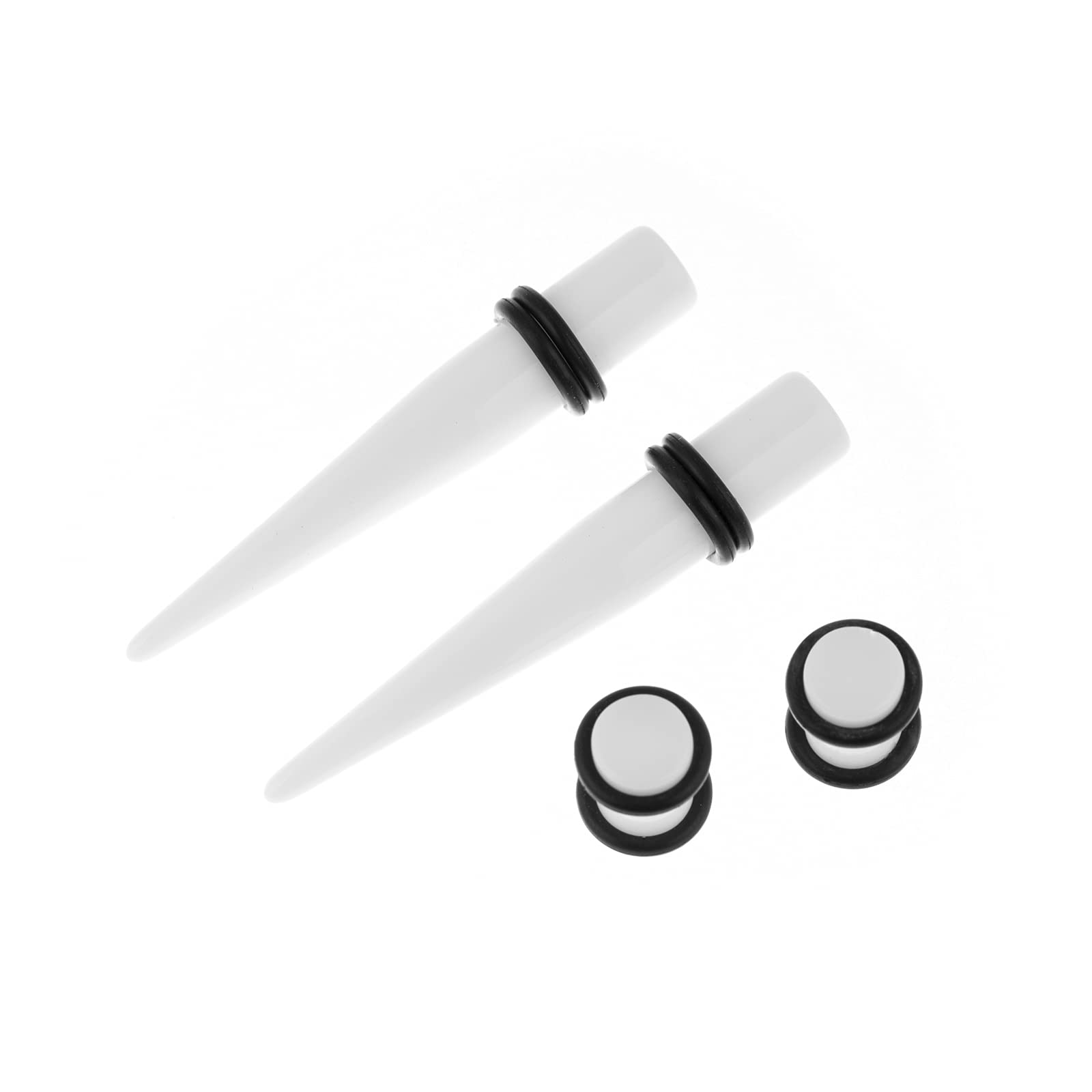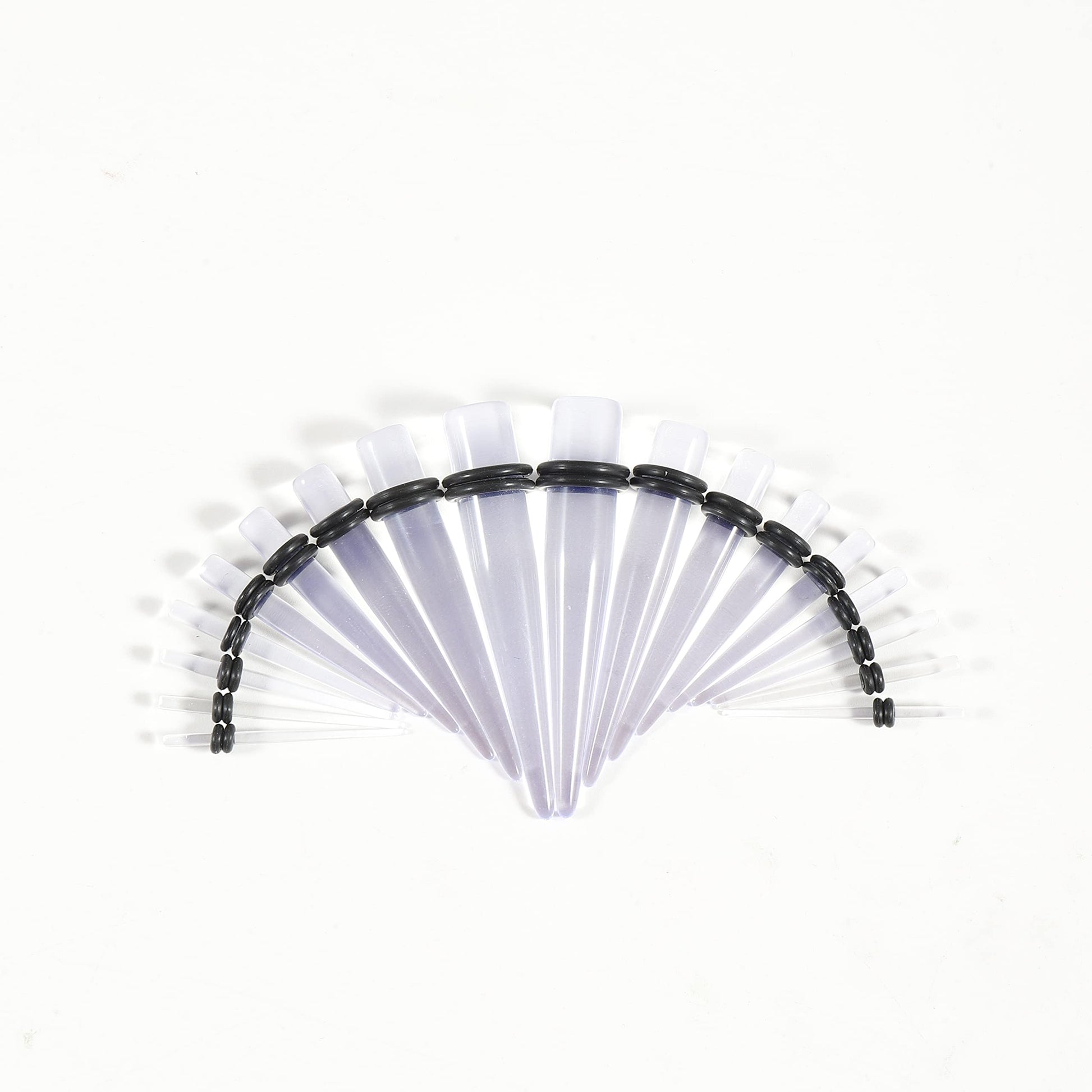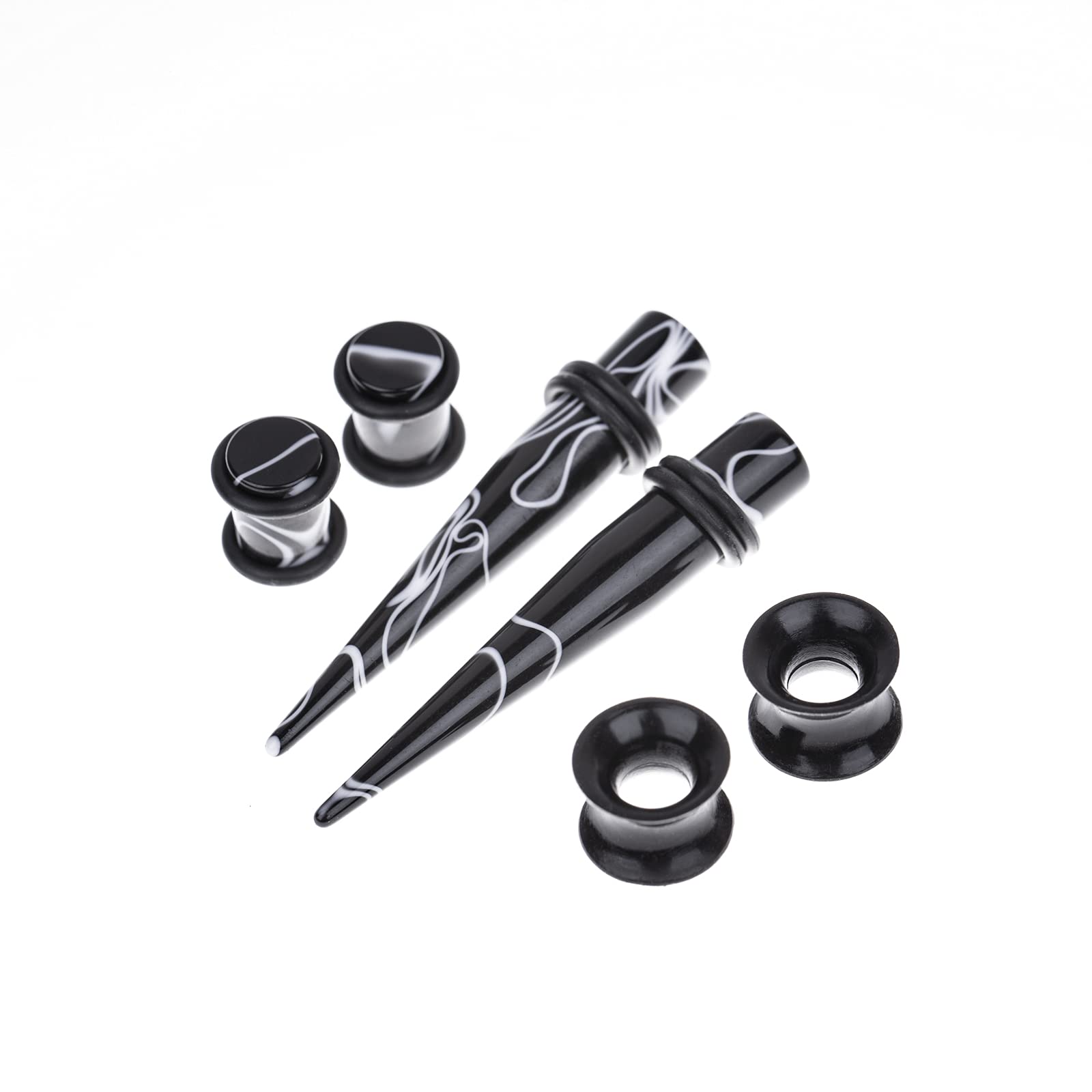 - 【SIZE AND COLORS】 - Acrylic plugs gauges and tapers for ears with double o-rings: 14G (1.6mm), 12G (2mm), 10G (2.4mm), 8G (3.2mm), 6G (4mm), 4G (5mm), 2G (6mm), 0G (8mm), 00G (10mm). Silicone gauges Tunnels: 8G, 6G, 4G, 2G, 0G, 00G, 12 mm. Black color gauges kit.