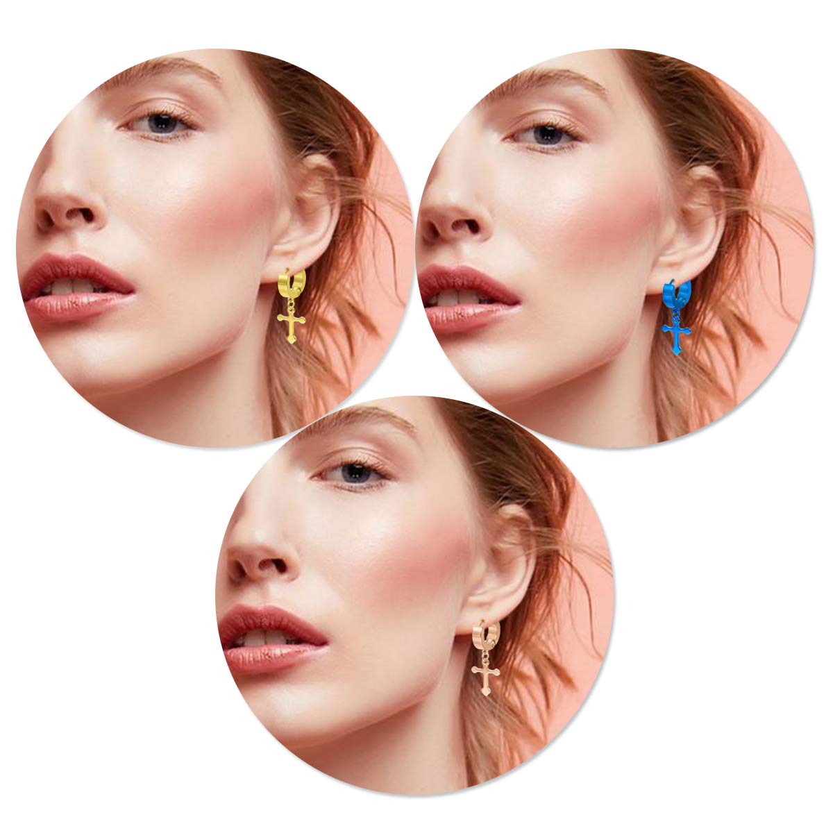 - 3 Pairs Unique Huggie Cross Earrings in different color, Stylish and Cool. Small hoops with cross pendants look exquisite and elegant. Gothic & Punk Style, trendy design looks attractive in every occasion