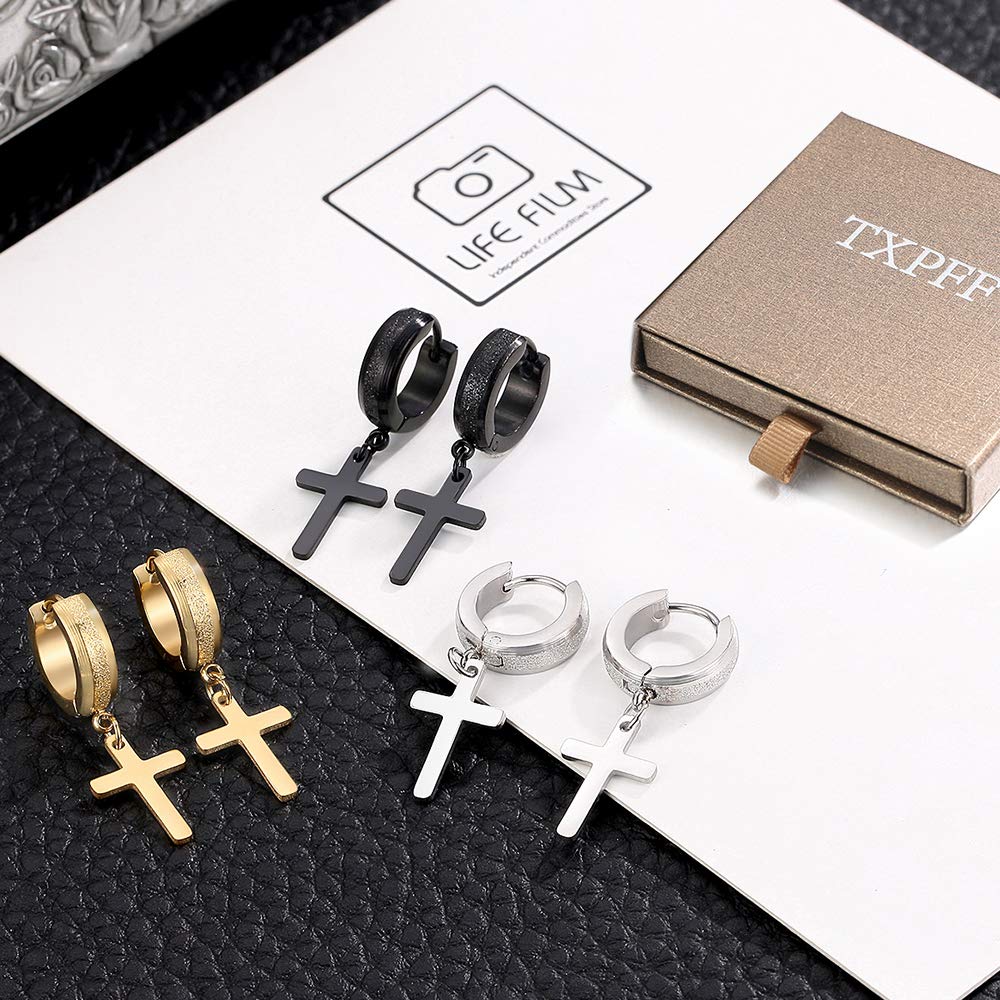 - TXPFF Cross Huggie Hoop Earrings 316L Stainless Steel