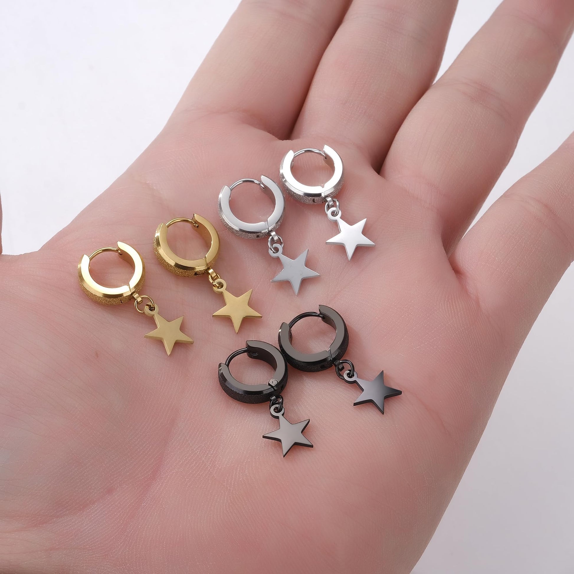 Men Women Stainless Steel Cross Earrings Set Dangle Hinged Earrings of Dangle Hinged Earrings Cross hoop Earrings