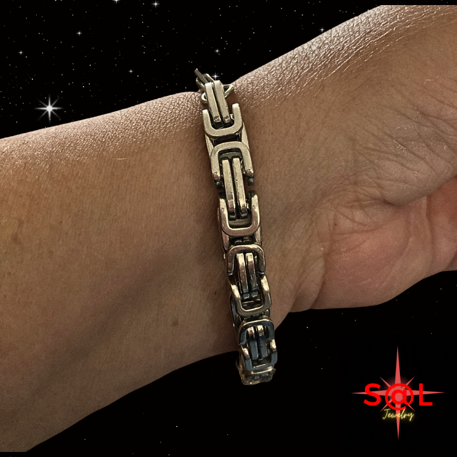 Newly released for our Pour Homme Collection, this handsome 8.5 inch loose fit mens Byzantine bracelet is constructed of bold links and fluid style characterizes the perfect bracelet for him. Set in stainless steel, this 8.5mm-wide Byzantine design transitions from the boardroom to the ball field with ease. Polished to a brilliant shine, this stunner secures with a lobster claw clasp for a secure fit. Hypoallergenic; lead and nickel free. Complimentary gift with purchase!